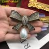 Qingdao - Broche elegante francés retro de la época medieval de la antigüedad, accesorios occidentales de la época medieval de lujo, conjunto de broche y pendientes con perlas y diamantes.