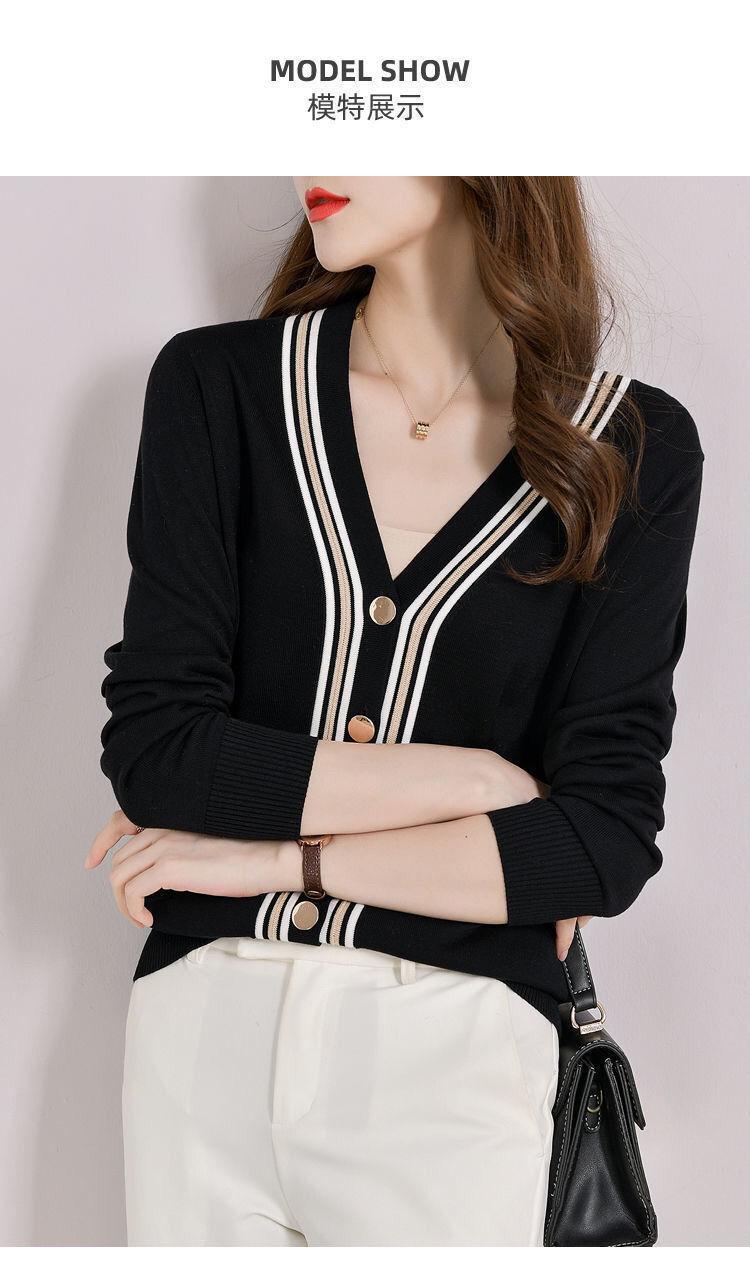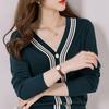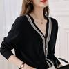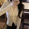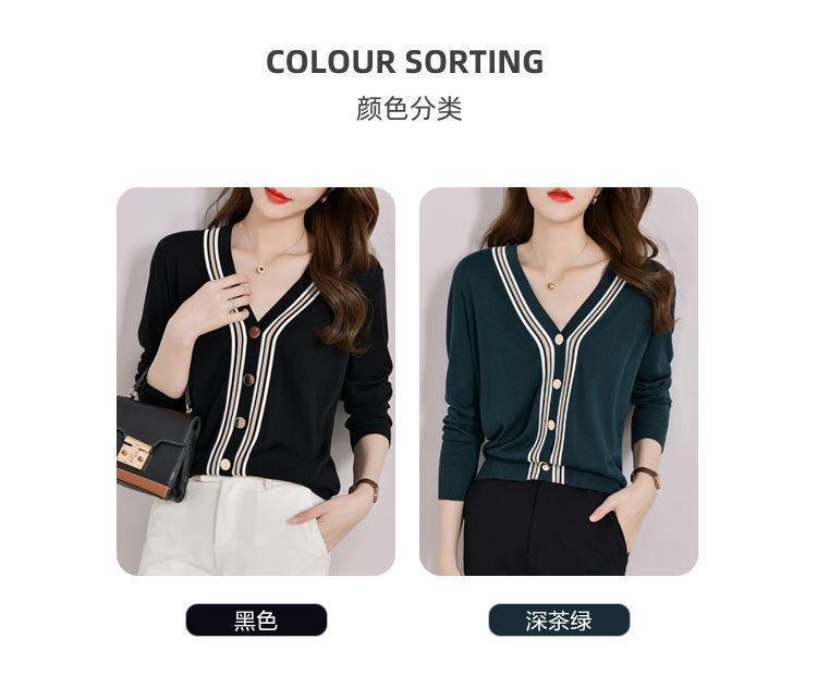 Cárdigan de Punto para Mujer Delgado Primavera 2025 Nuevo Suelto Ajustado Moda Cuello en V Manga Larga Temperamento Top de Mujer Trendy