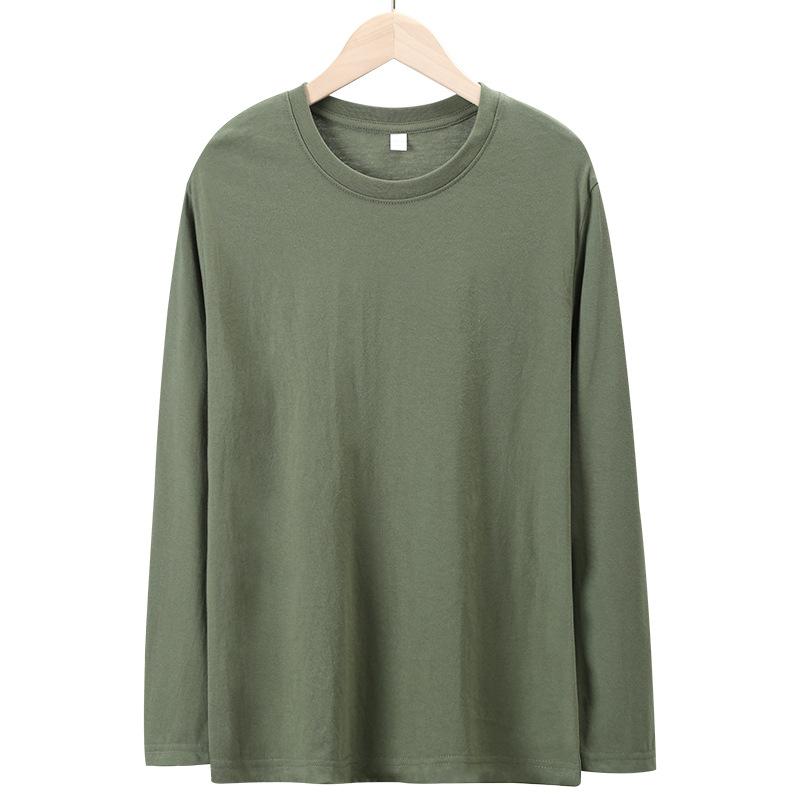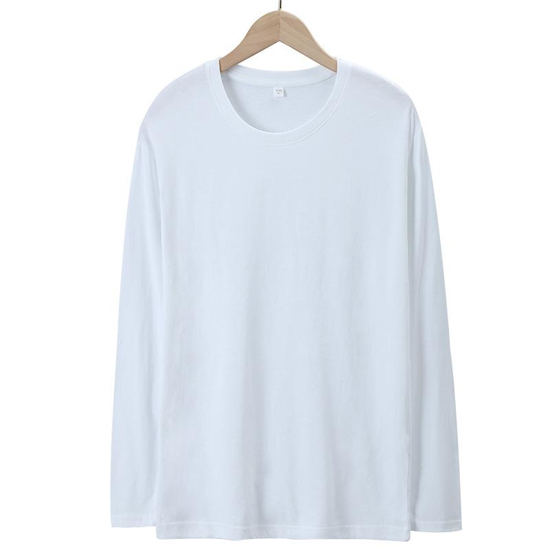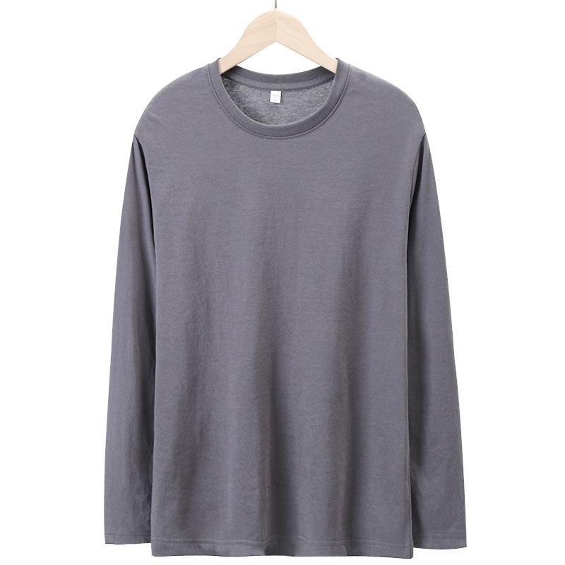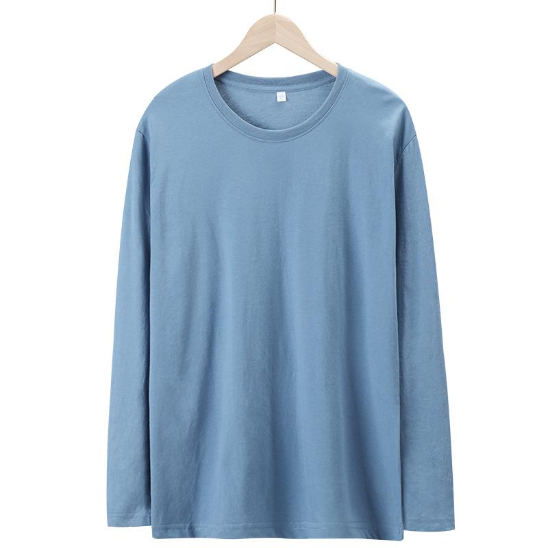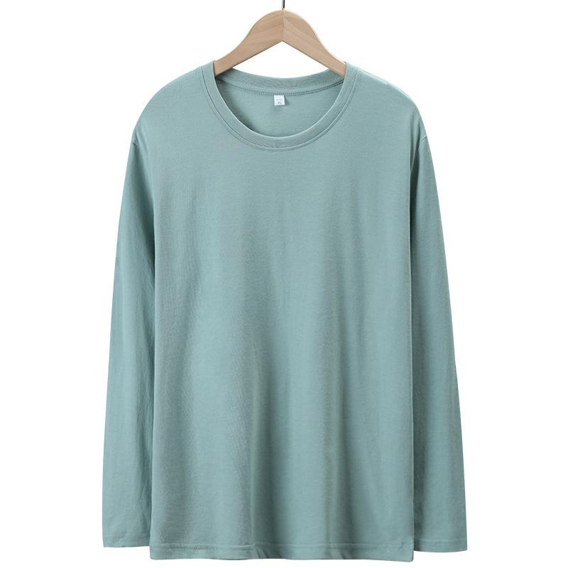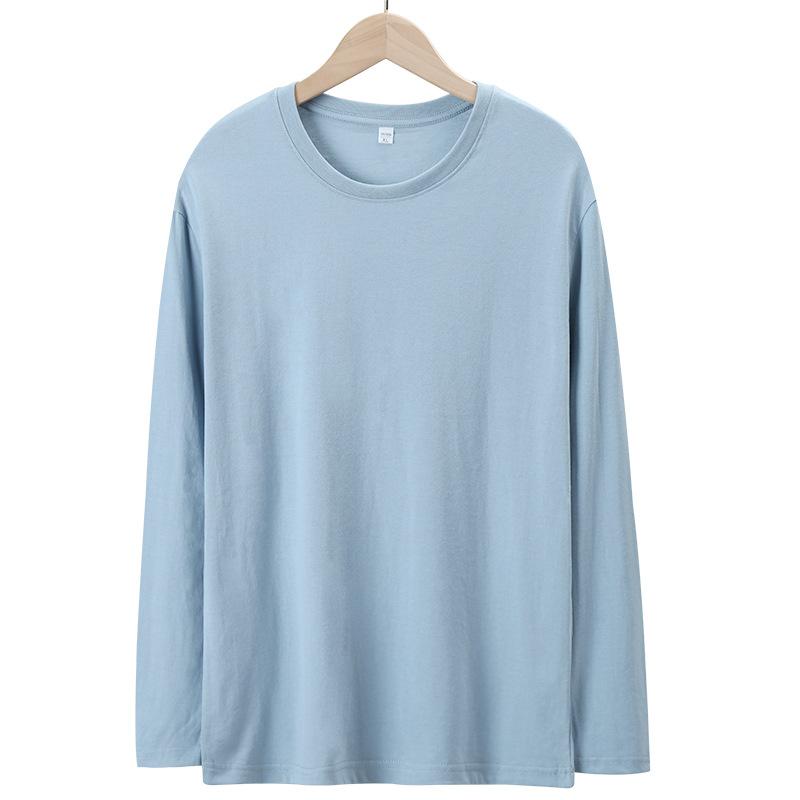 En stock, camiseta deportiva de manga larga de algodón peinado de color sólido con cuello redondo, holgada, para hombre y mujer, con la misma parte inferior, generación CVC.