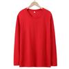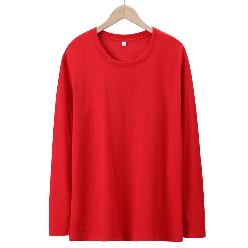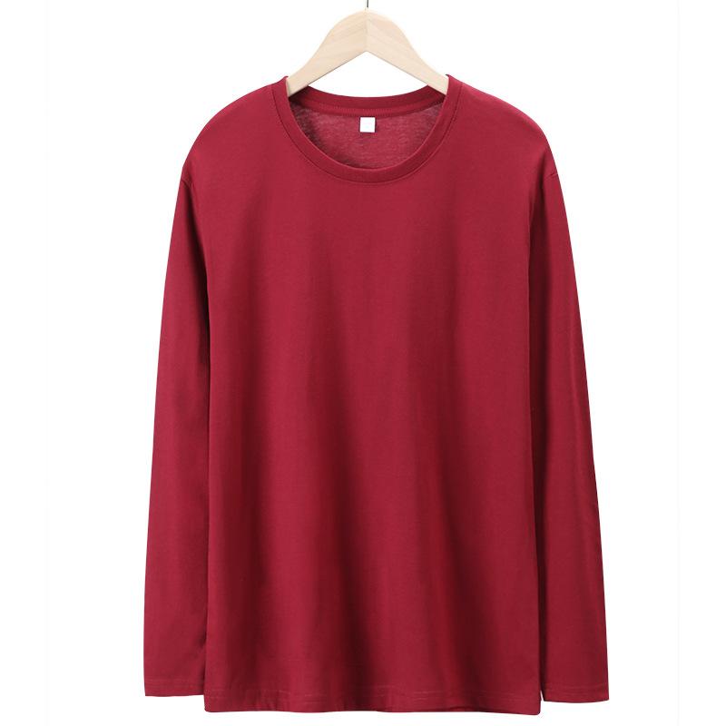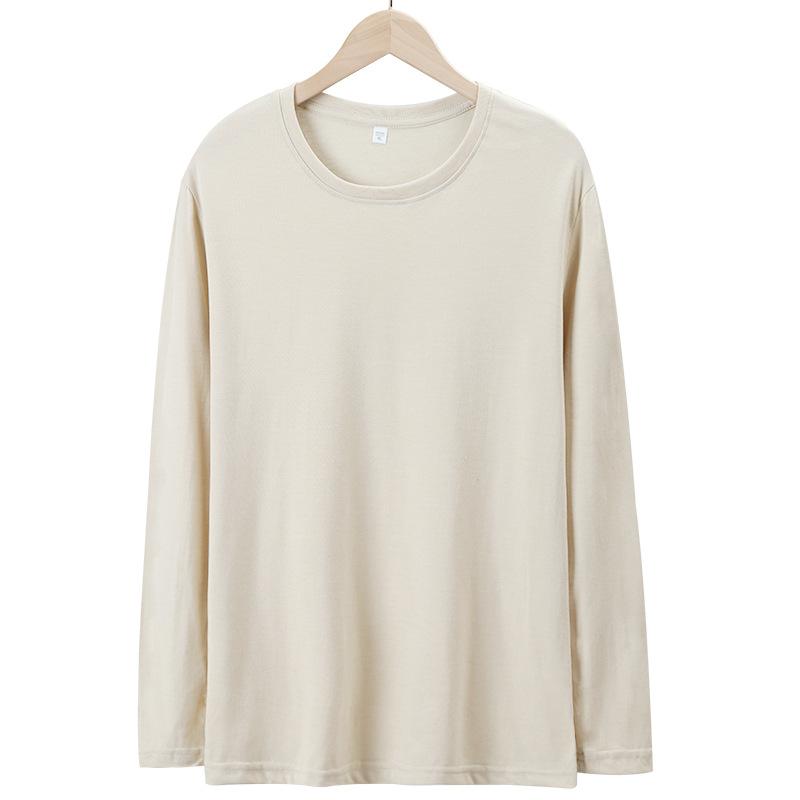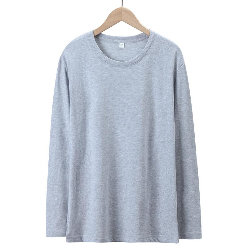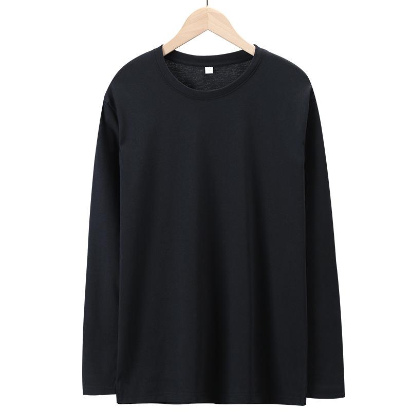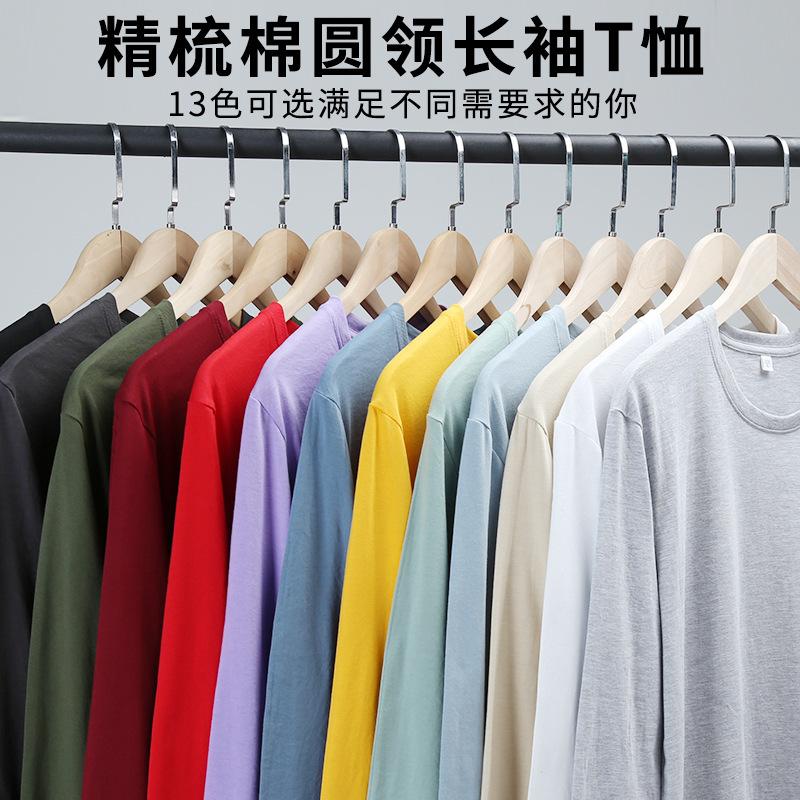 En stock, camiseta deportiva de manga larga de algodón peinado de color sólido con cuello redondo, holgada, para hombre y mujer, con la misma parte inferior, generación CVC.