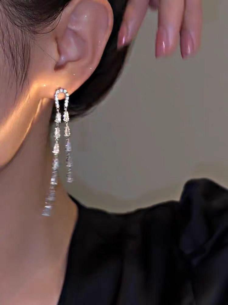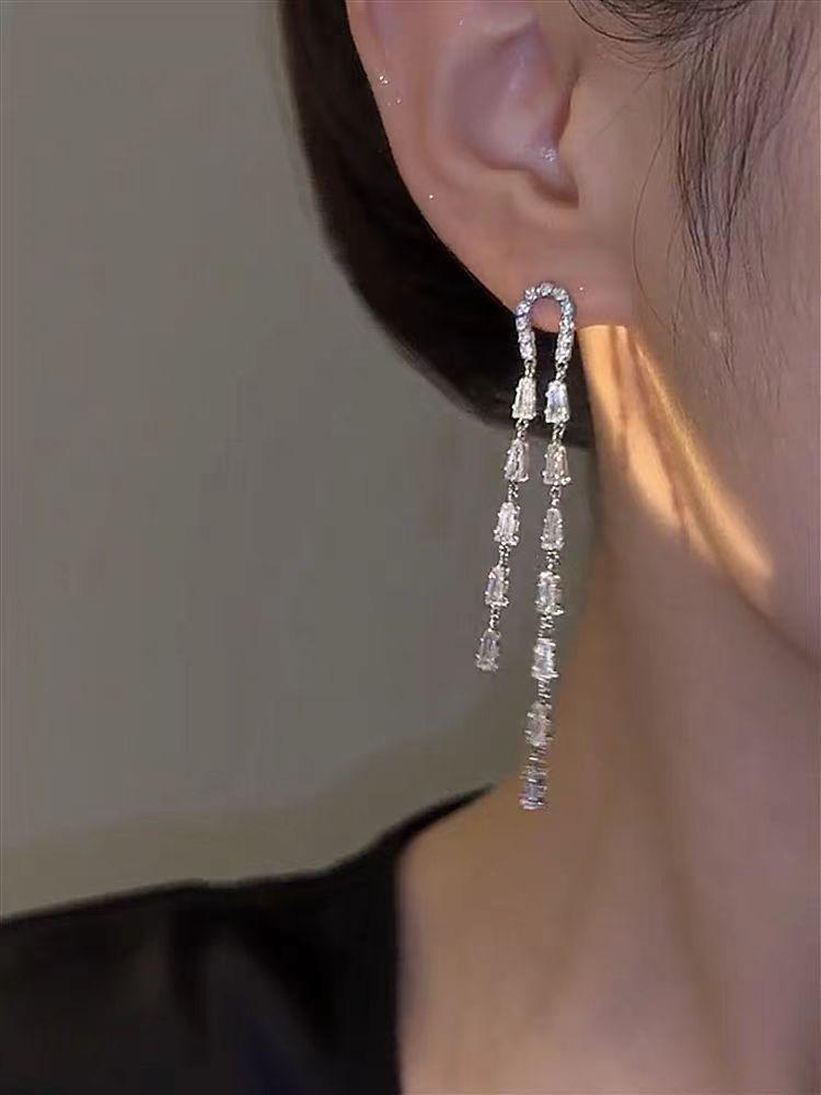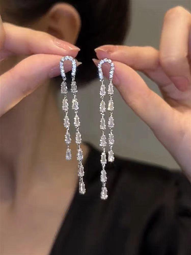 Pendientes de borla de circonita de lujo, elegantes, exquisitos y ligeros, con cara redonda y adelgazante, de alta calidad, versátiles y de verano para mujer.