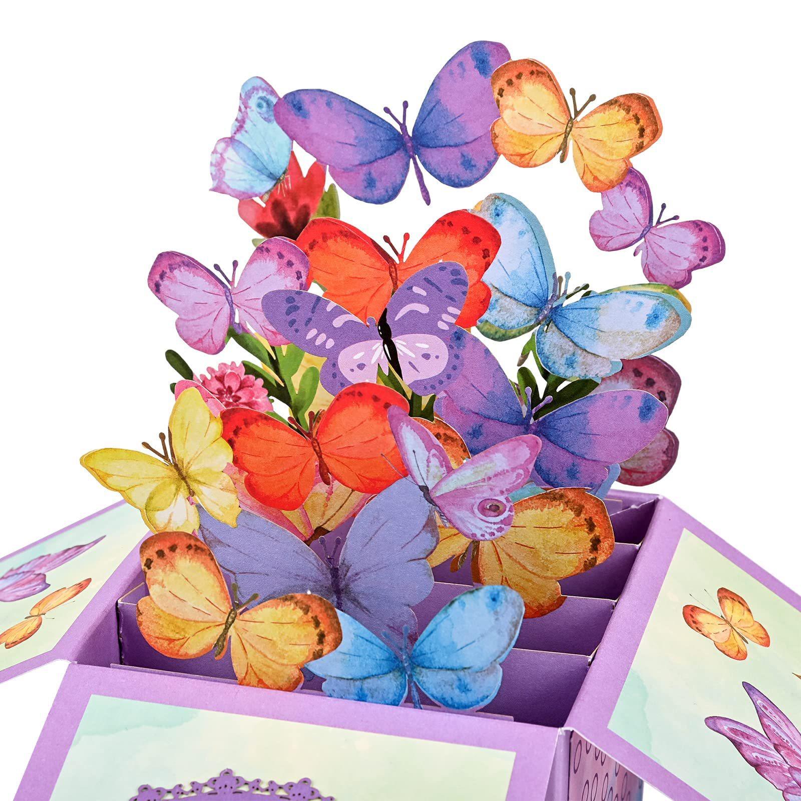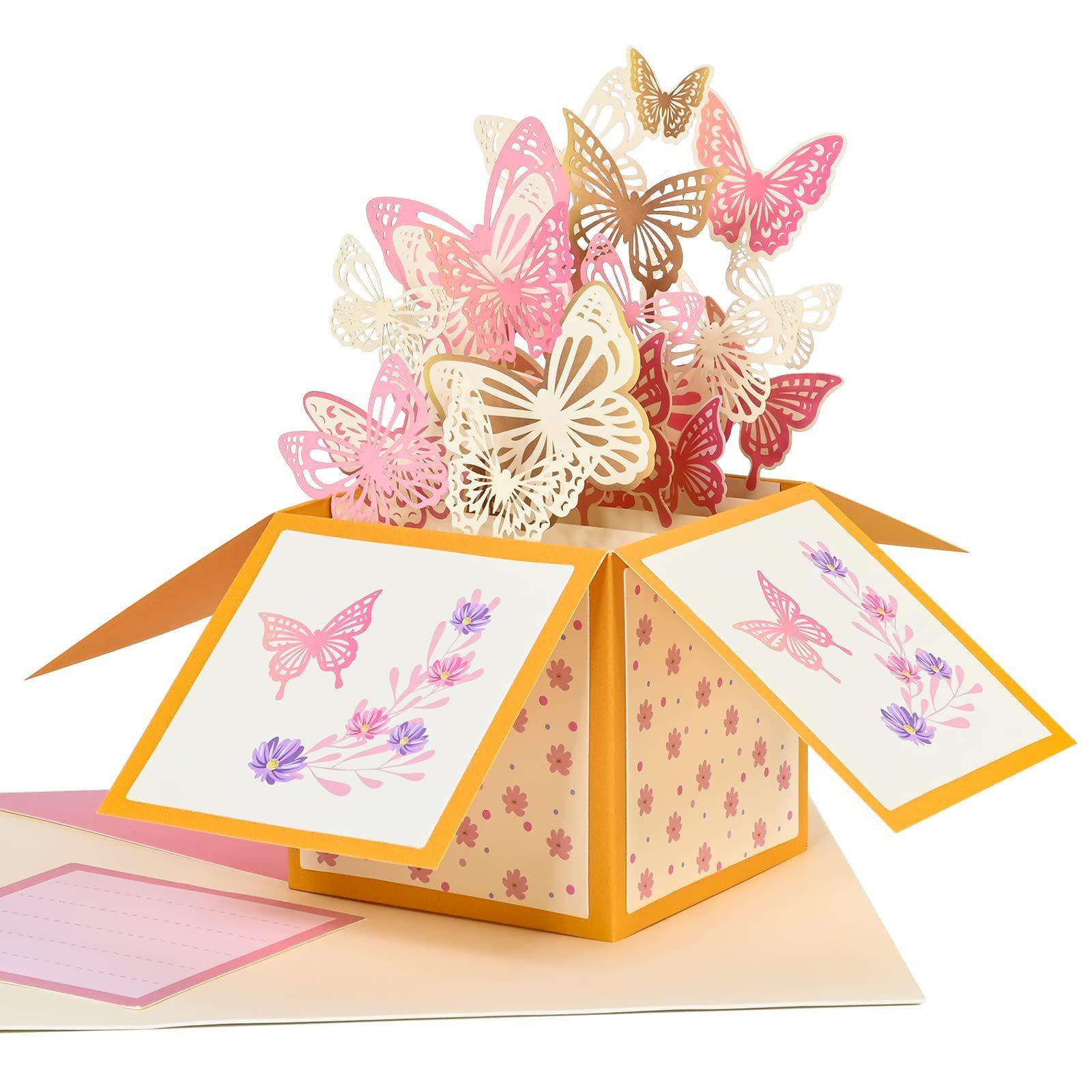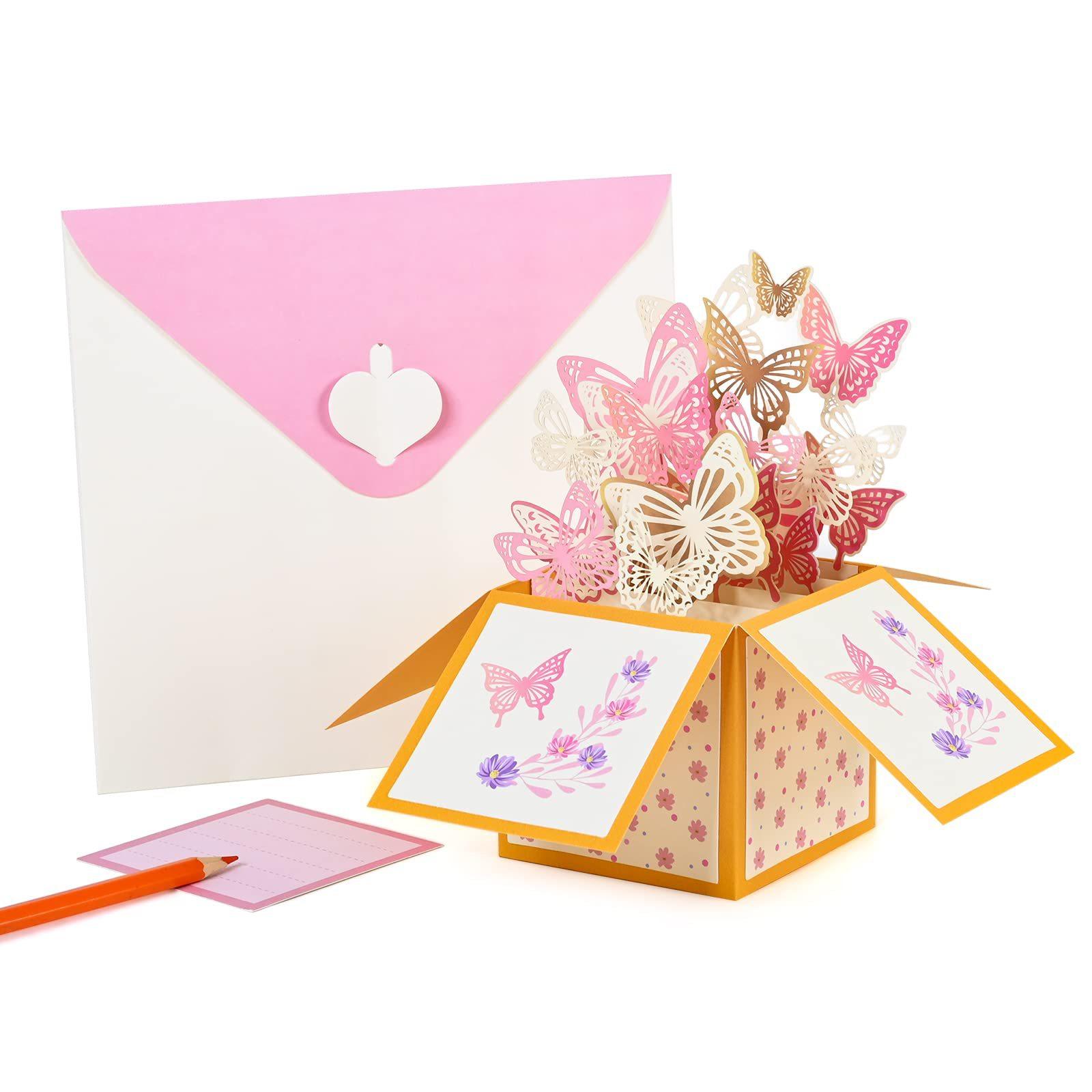 Tarjeta de felicitación de cumpleaños 3D con mariposa rosa para mamá, regalo para el Día de la Madre, regalo para el Día de San Valentín, regalo para el aniversario de bodas.