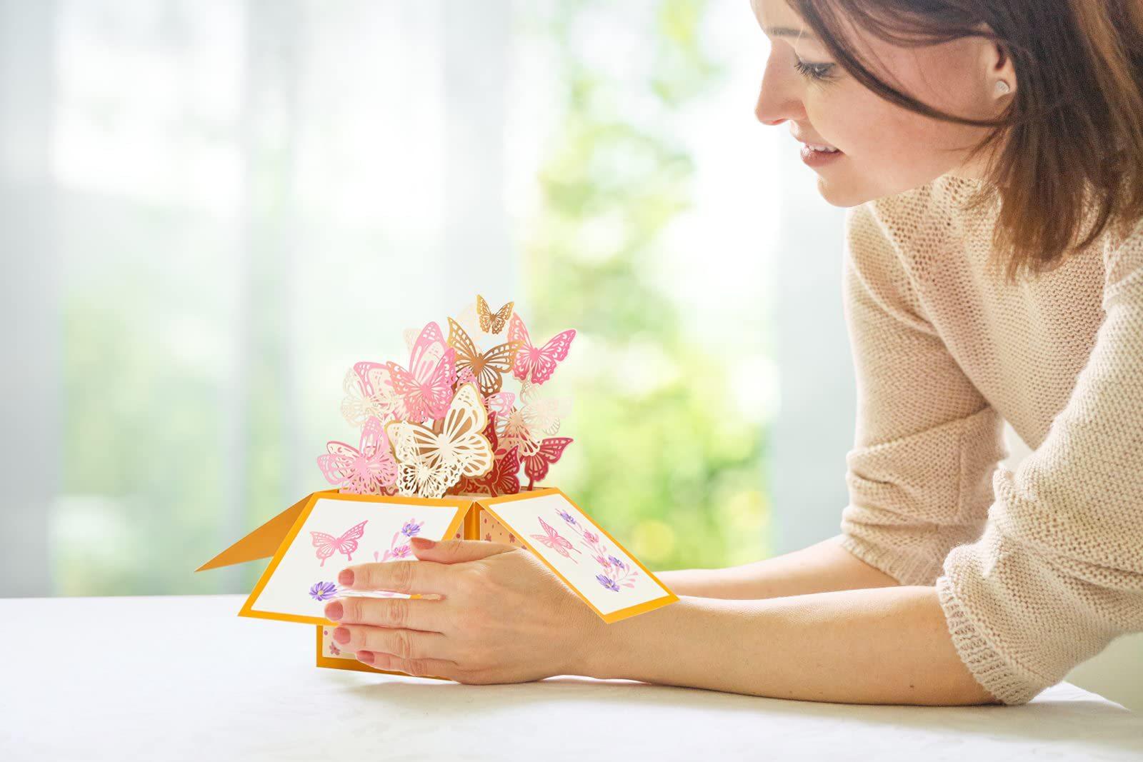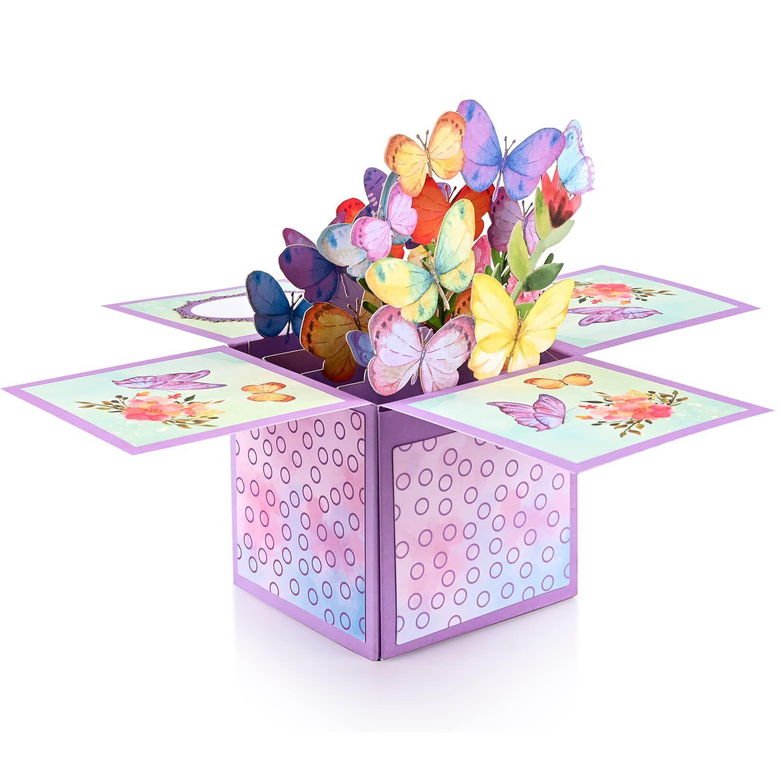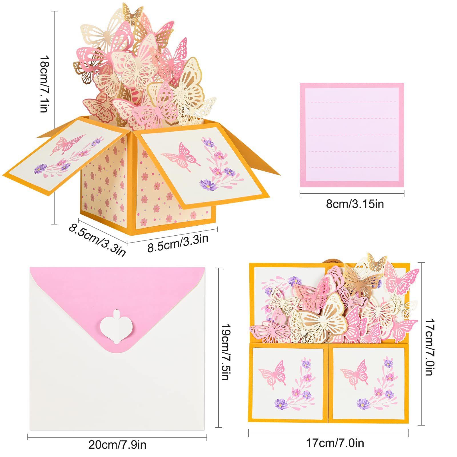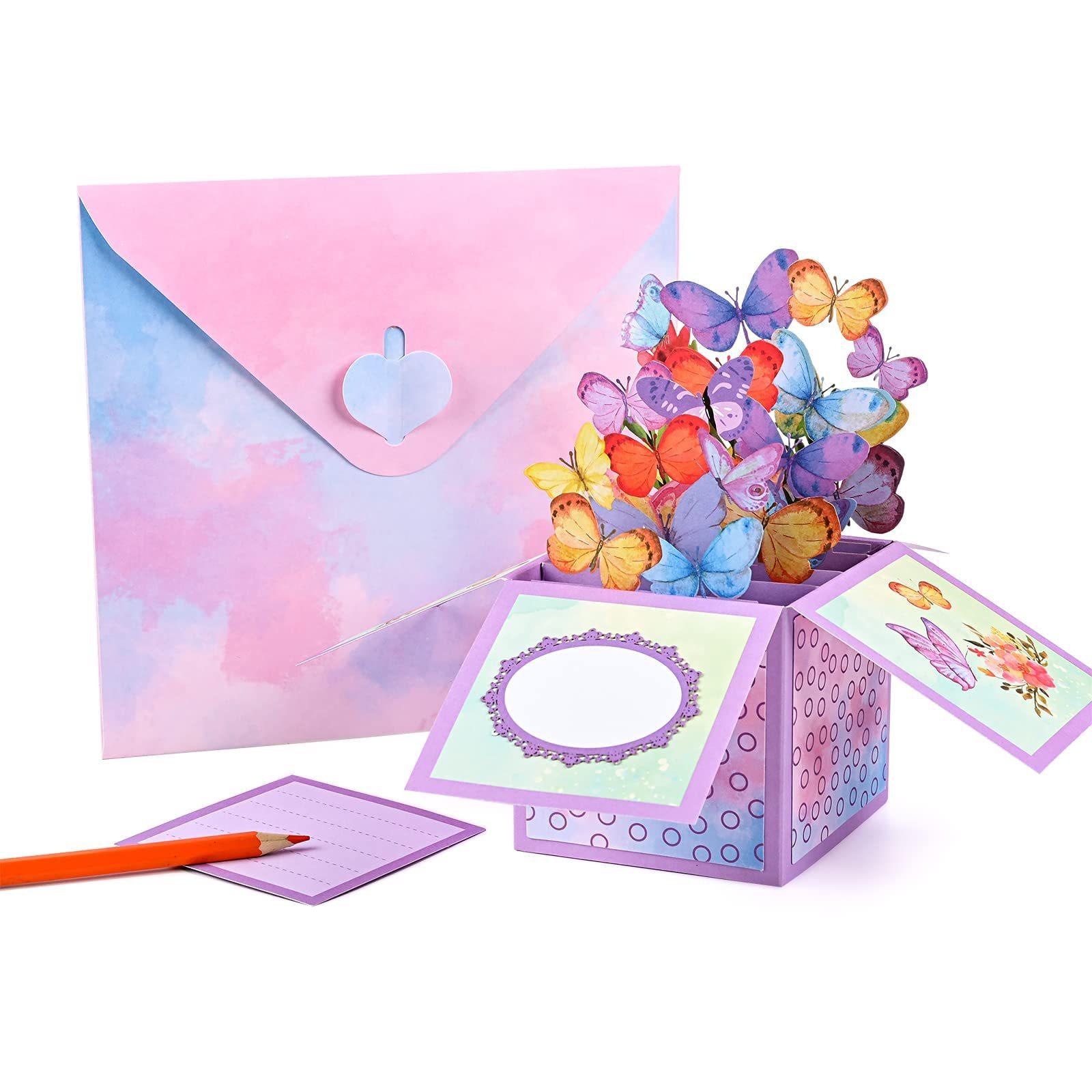 Tarjeta de felicitación de cumpleaños 3D con mariposa rosa para mamá, regalo para el Día de la Madre, regalo para el Día de San Valentín, regalo para el aniversario de bodas.