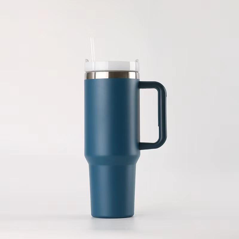 Vaso termo de paja con asa transfronteriza de gran capacidad para exteriores, vaso para hielo para coche, simple y portátil, segunda generación, 30 oz, vaso para coche