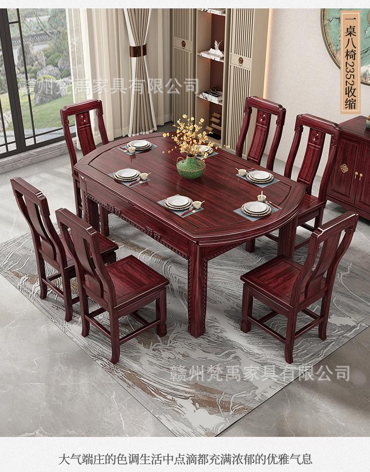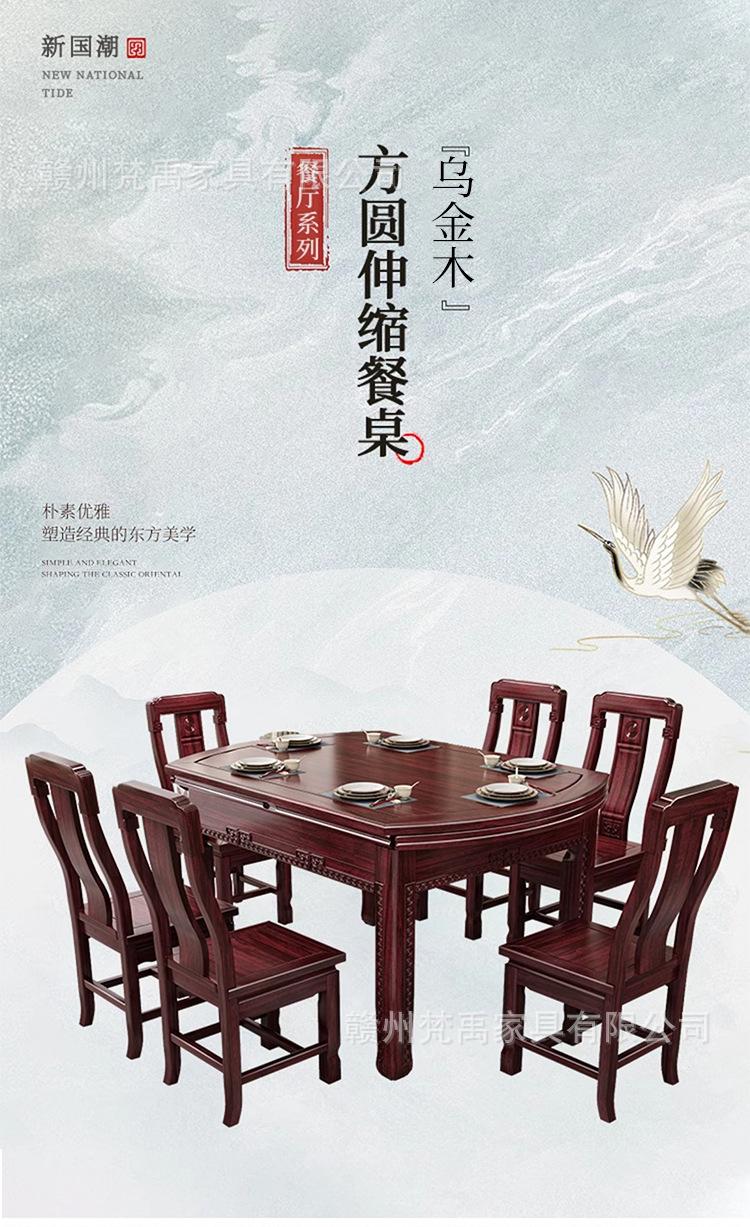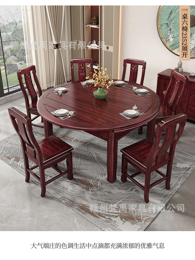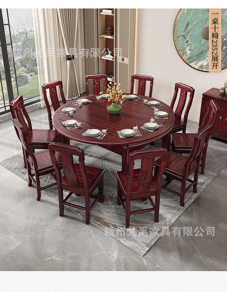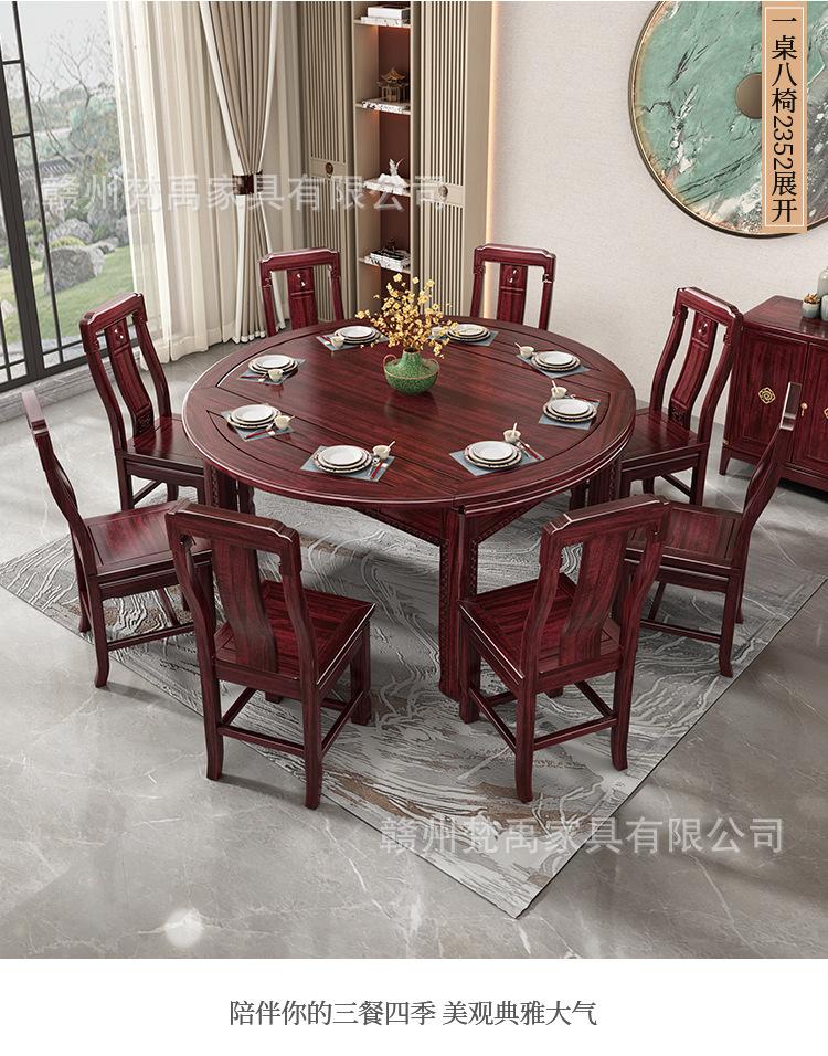 Juego de Mesa y Sillas de Comedor Antiguo de Estilo Chino Nuevo de Madera de Ébano, Mesa Redonda Extensible de Madera Maciza para Comedor en Casa, Muebles de Restaurante