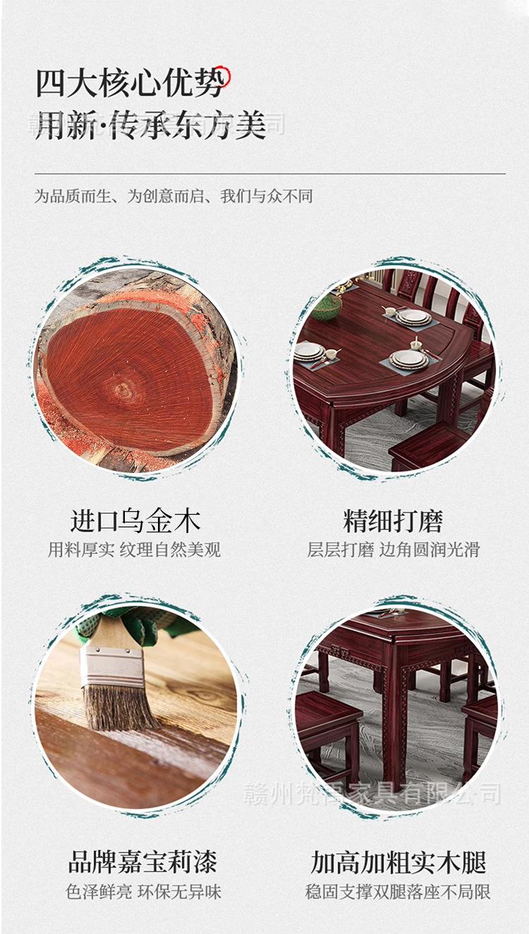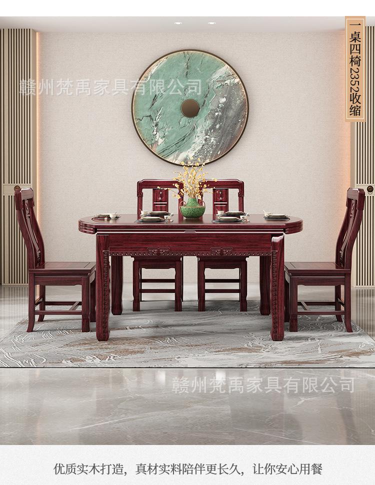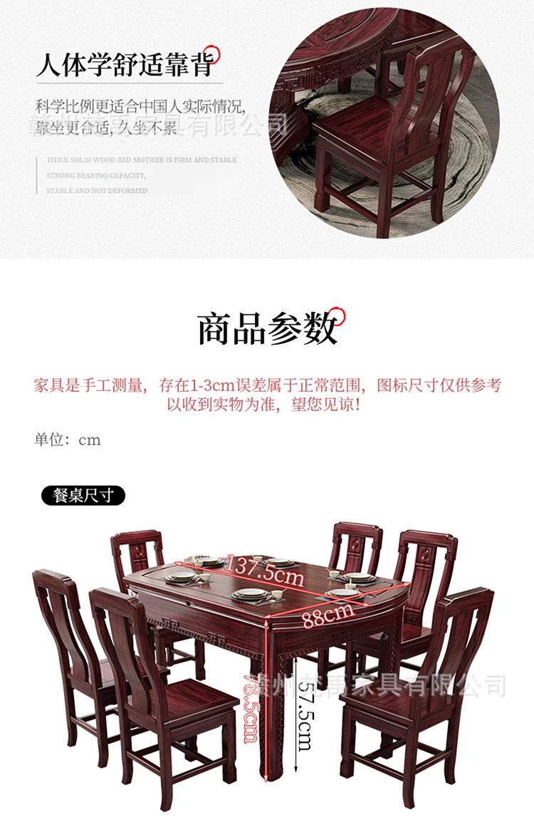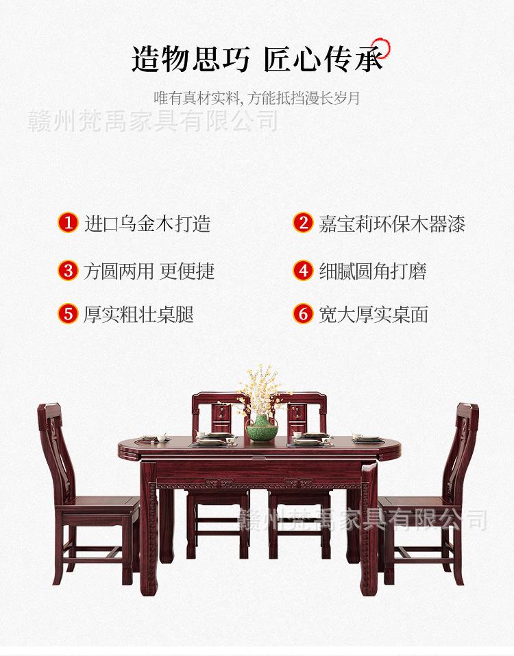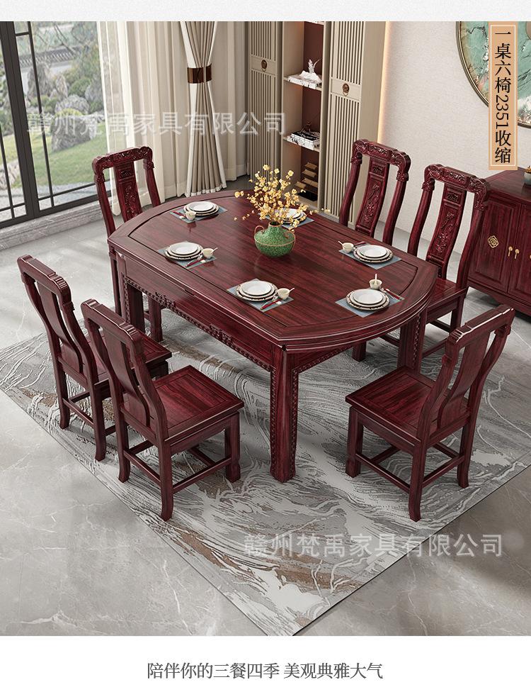 Juego de Mesa y Sillas de Comedor Antiguo de Estilo Chino Nuevo de Madera de Ébano, Mesa Redonda Extensible de Madera Maciza para Comedor en Casa, Muebles de Restaurante