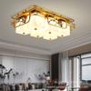 Lámpara de Sala de Estar Lámpara de Techo Moderna Simple Estilo Nuevo Chino Sala de Estar Todo Cobre Mármol Comedor Dormitorio Lámpara Protección Ocular Minimalista