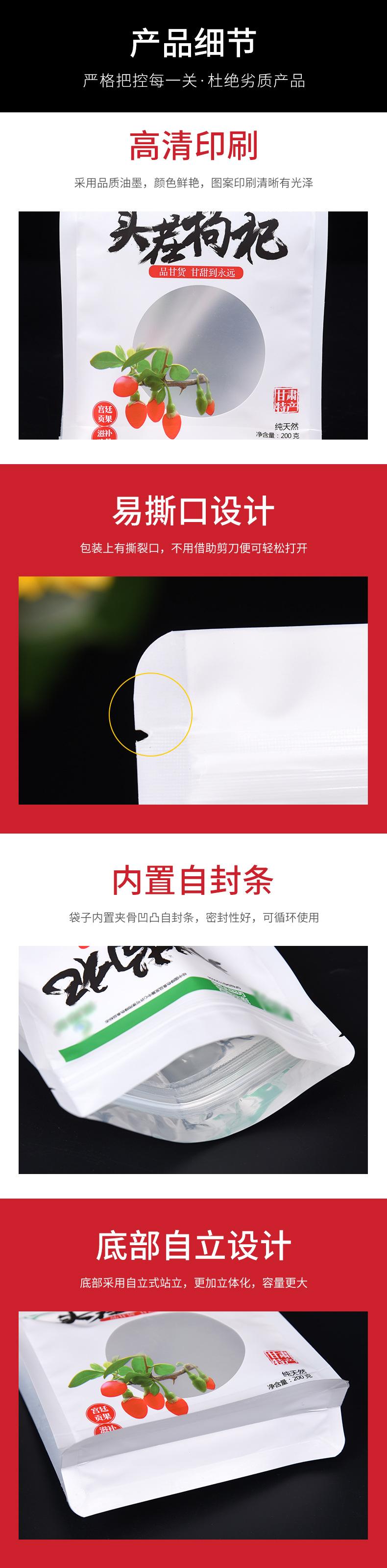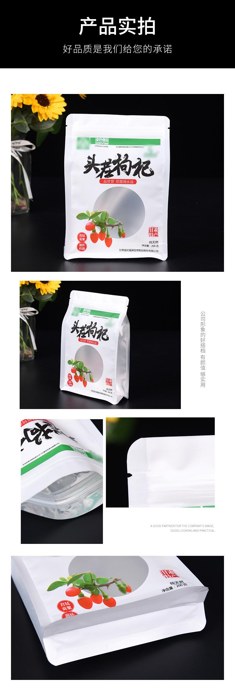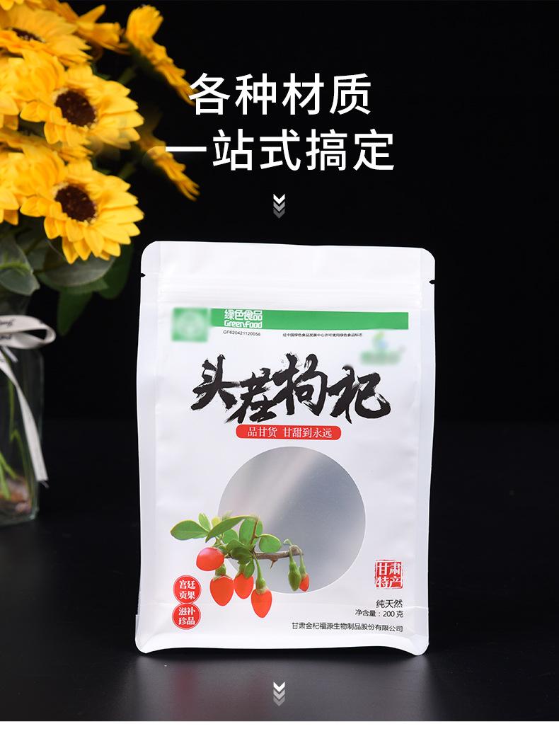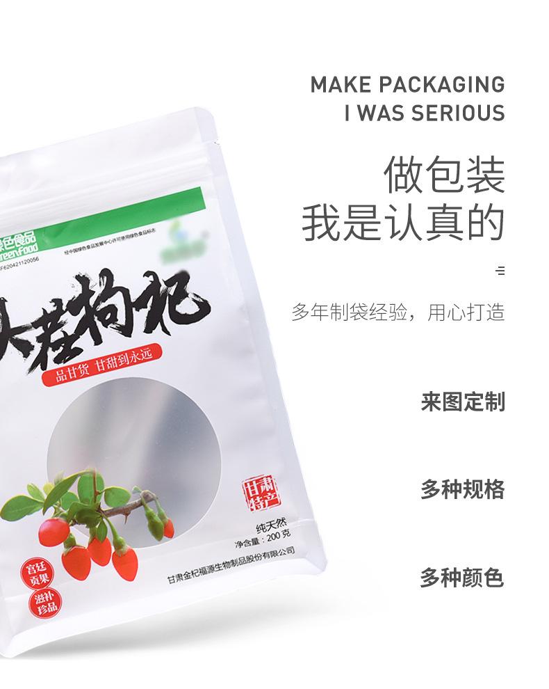 Bolsas de Embalaje de Alimentos Personalizadas con Abertura de Ventana, Bolsas de Plástico Autoportantes Autosellables para Sellado de Bayas de Goji, Bolsas de Papel de Aluminio Hechas a Medida con Sellado de Ocho Lados
