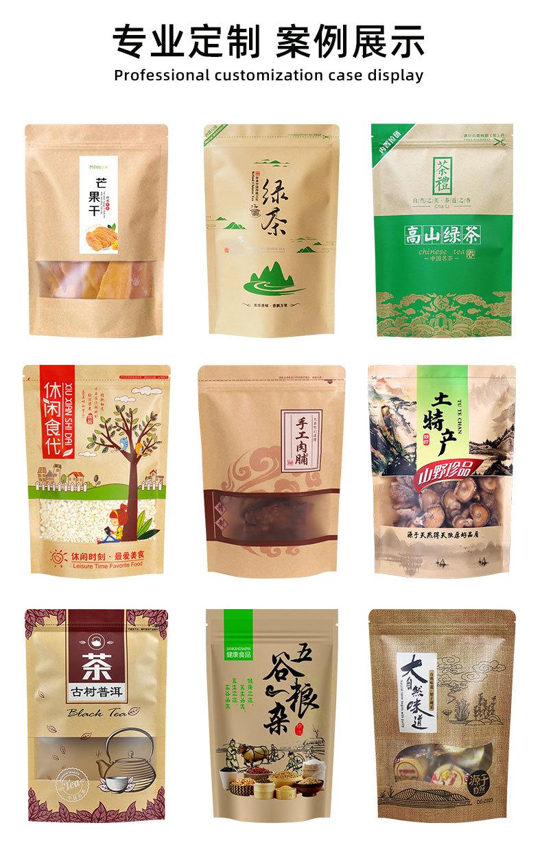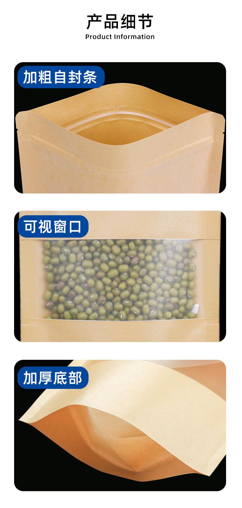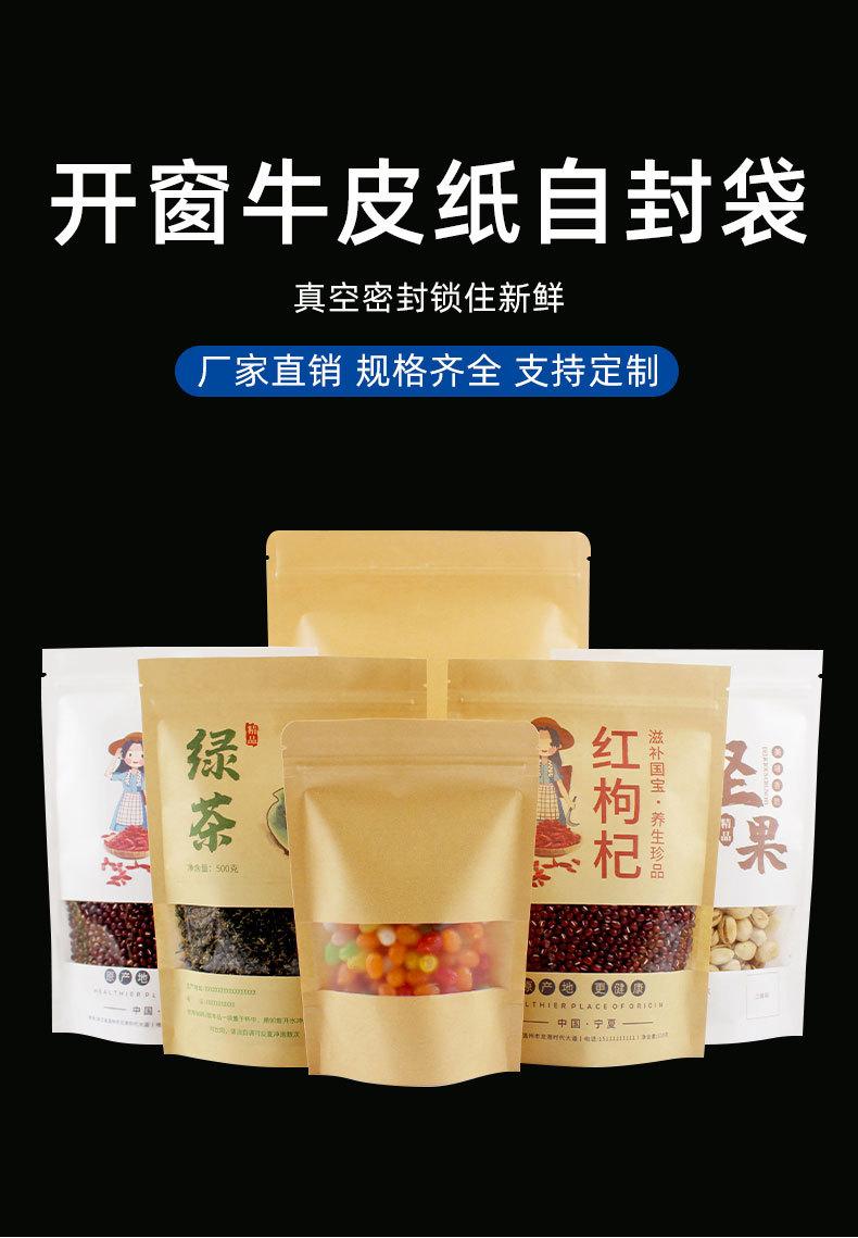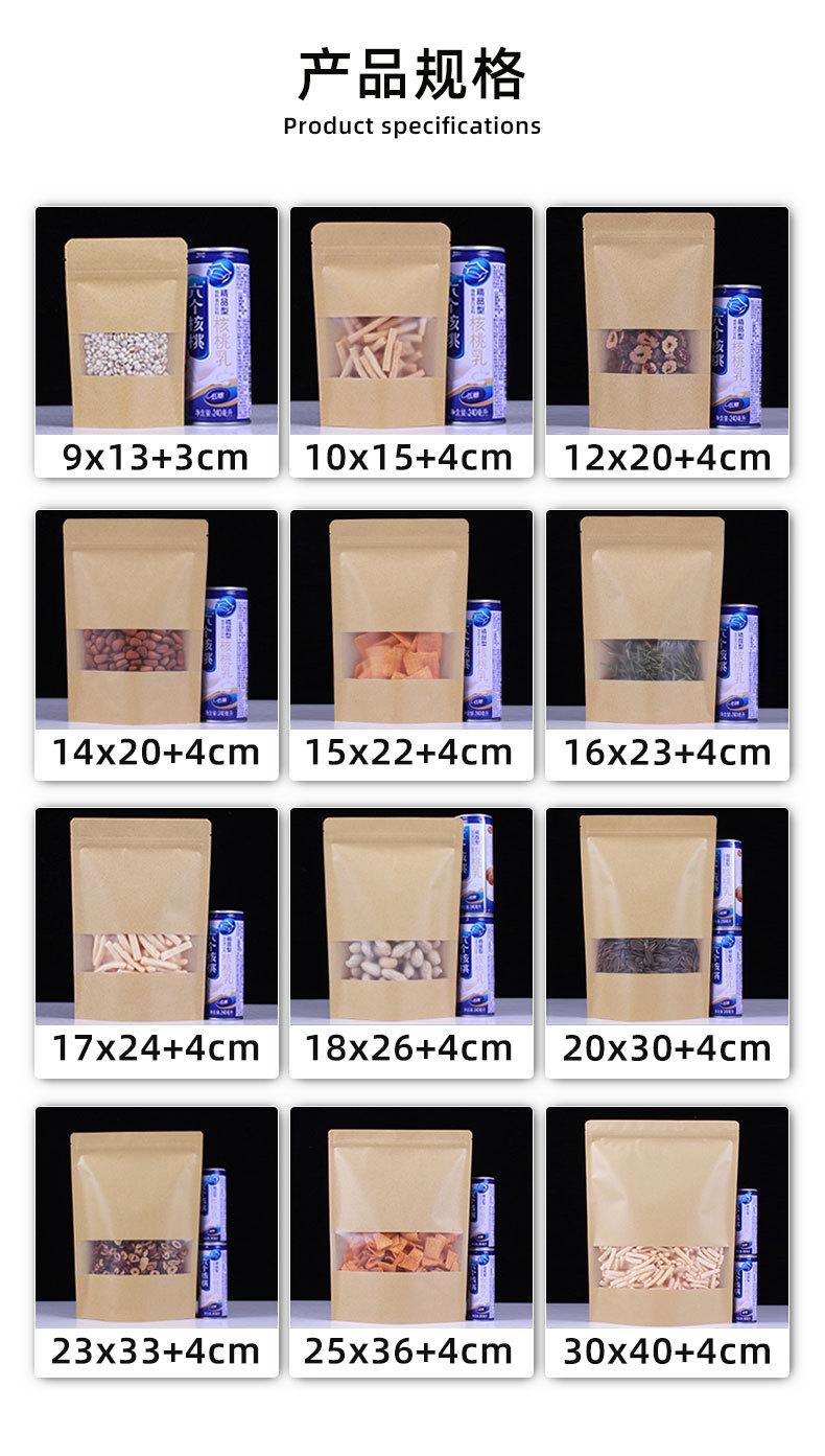 Bolsa de embalaje de papel kraft con ventana, bolsa de embalaje independiente para refrigerios, bolsa de embalaje para alimentos, bolsa de té de nueces, bolsa de embalaje sellada