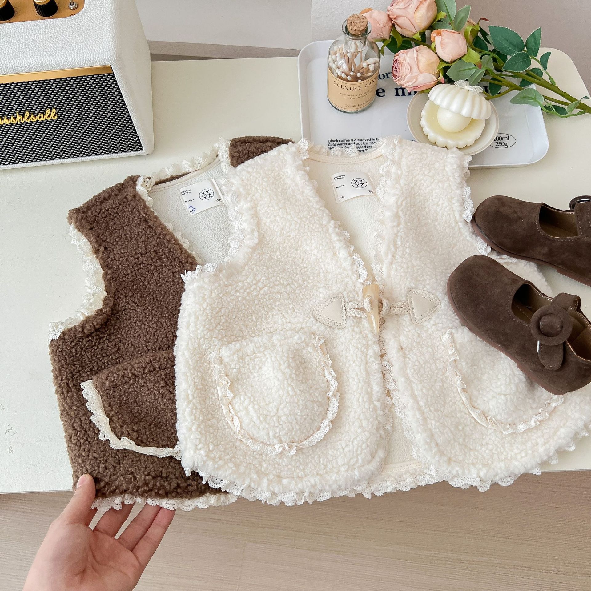Chaleco cálido Tongxingyuan de estilo pastoral retro nórdico para bebé, otoño e invierno, para niña, estilo rojo en línea, ropa exterior