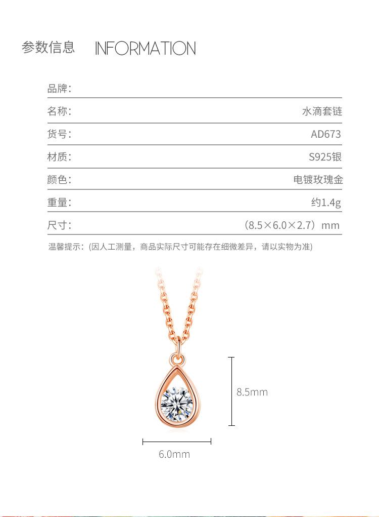 Collar geométrico de gota de agua de rueda de la fortuna para mujer, simple, versátil, de plata esterlina, oro rosa, joyería de diseño de nicho que no se desvanece
