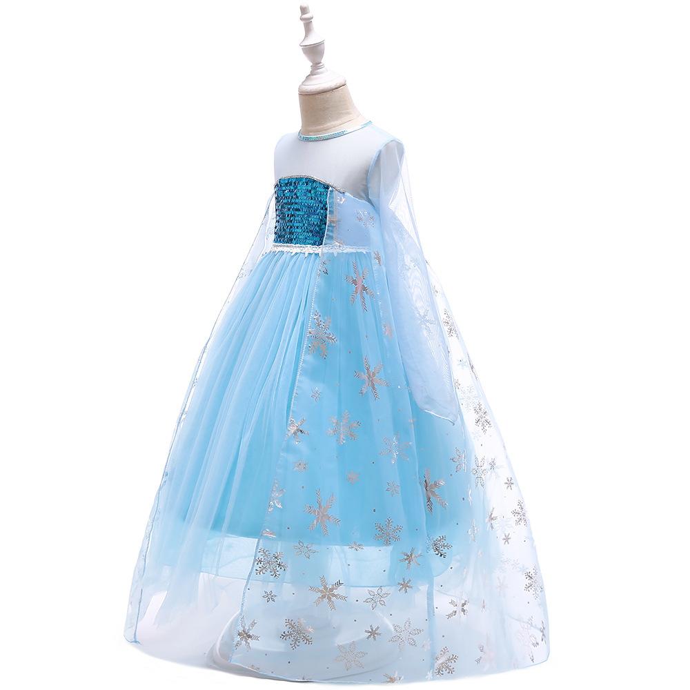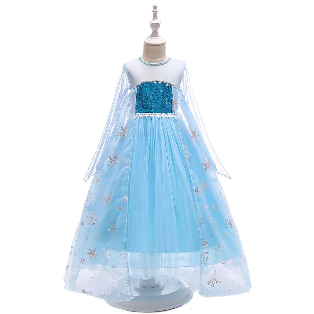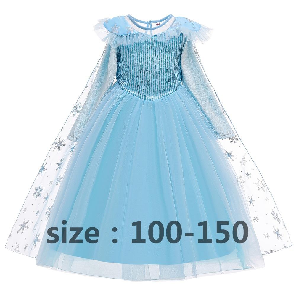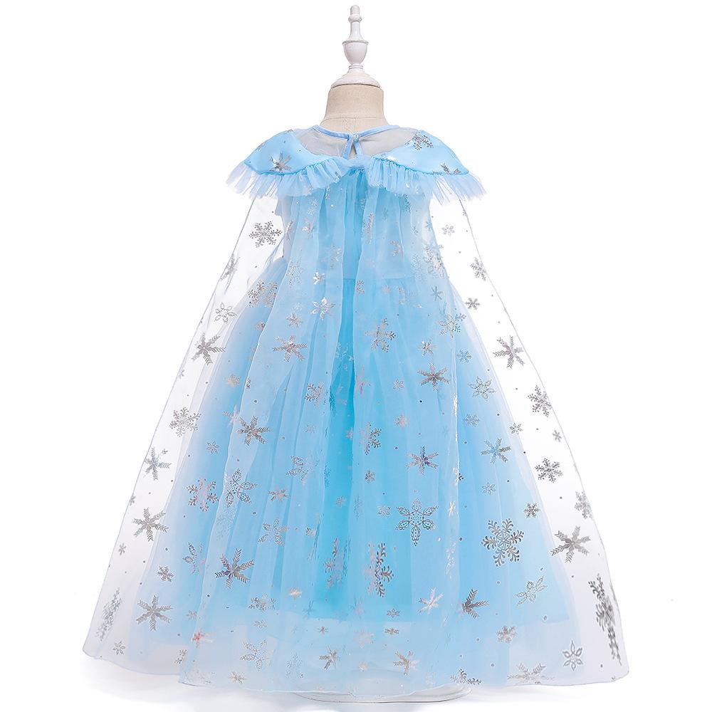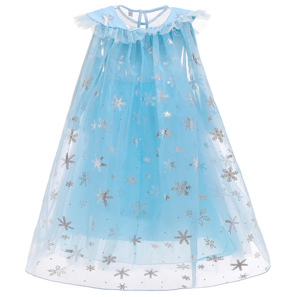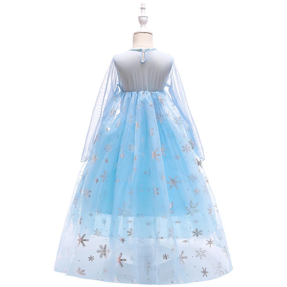 Vestido Nuevo para Niñas Frozen Estampado de Dibujos Animados Vestido Niñas Vestido de Princesa de Malla Capa Larga Disfraz para Niños