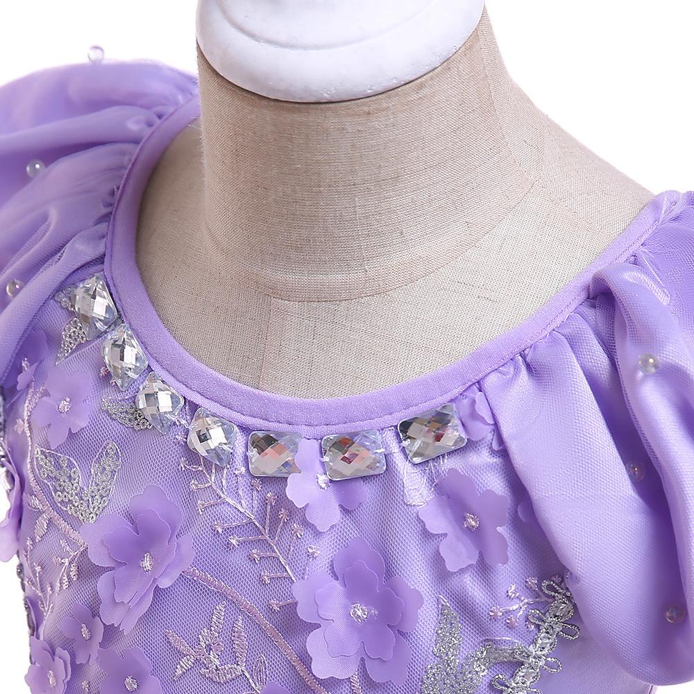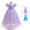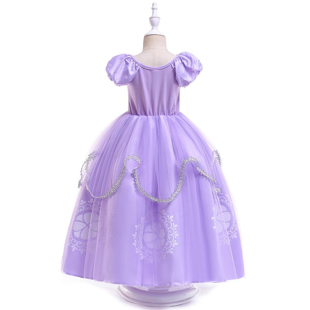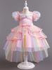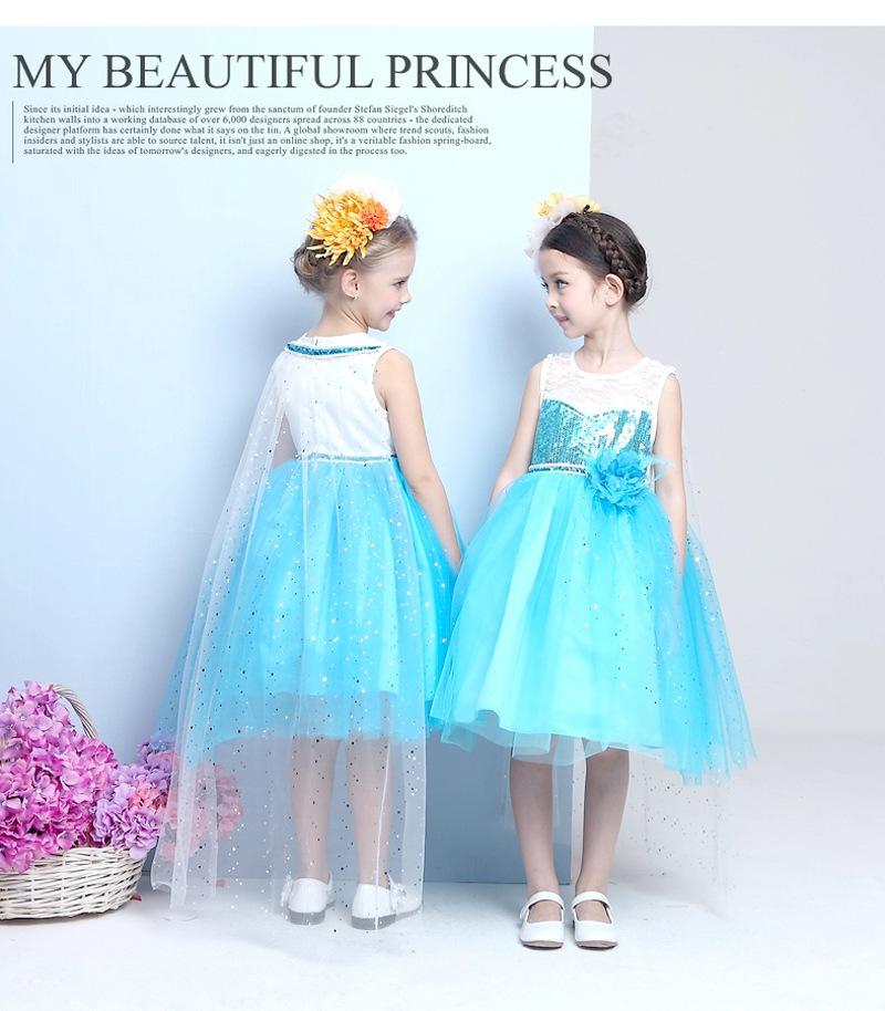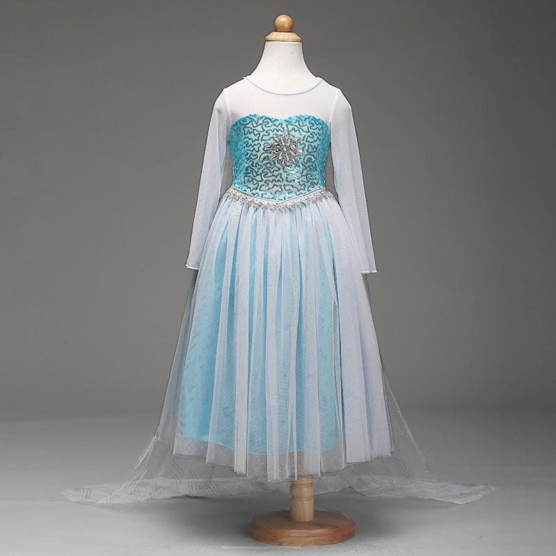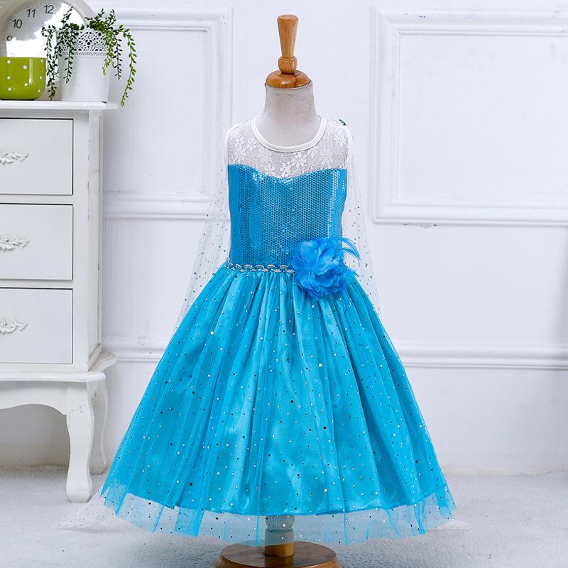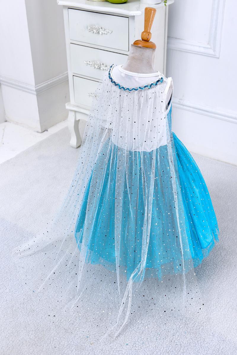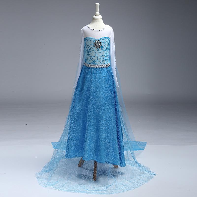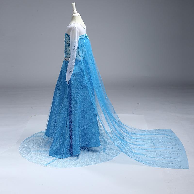 Vestido Nuevo para Niñas Frozen Estampado de Dibujos Animados Vestido Niñas Vestido de Princesa de Malla Capa Larga Disfraz para Niños
