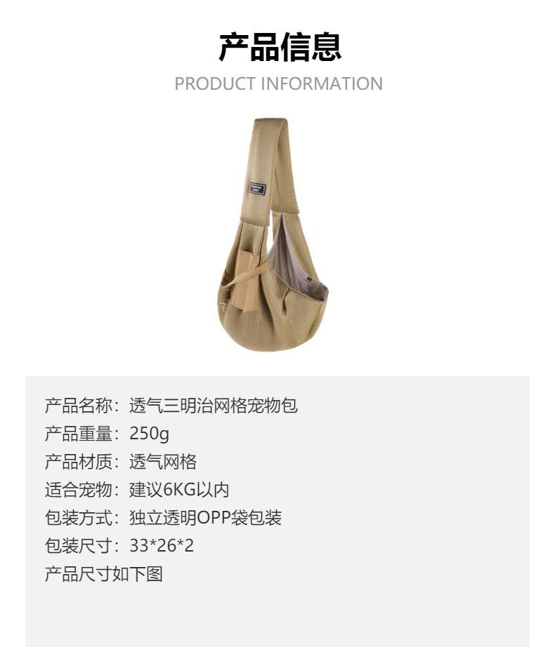 Bolsa de malla para mascotas más vendida transfronteriza para viajes en verano, bandolera transpirable, de un hombro, suministros portátiles para perros