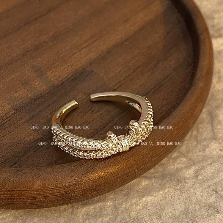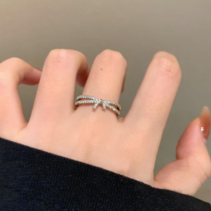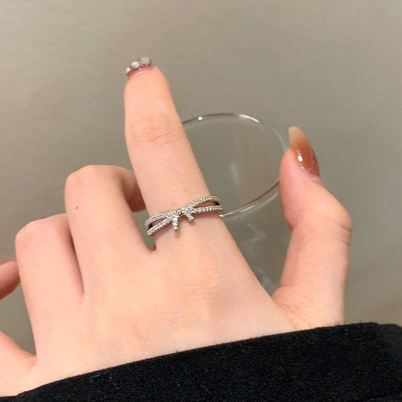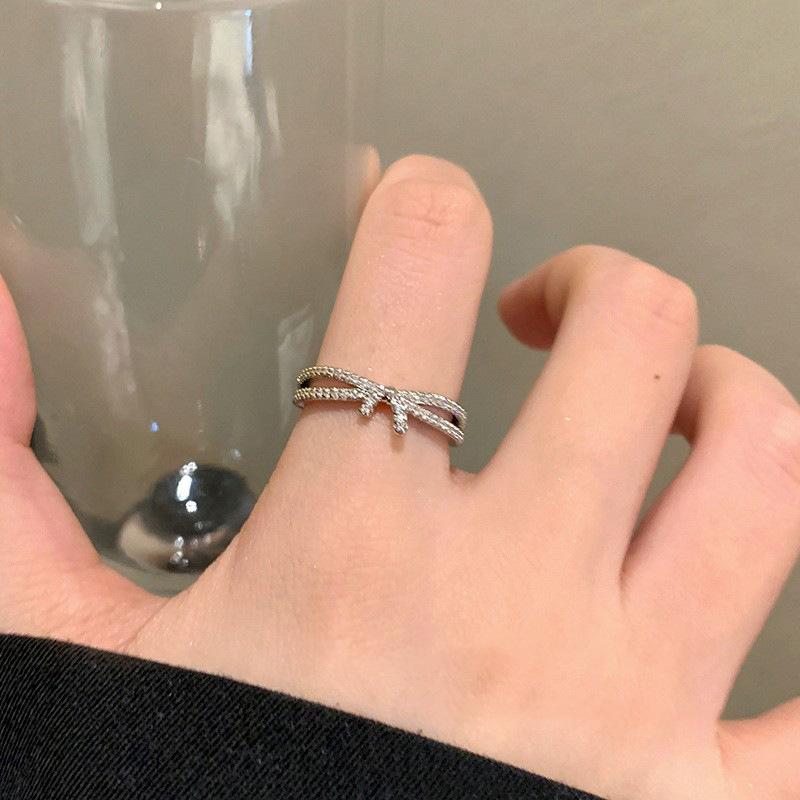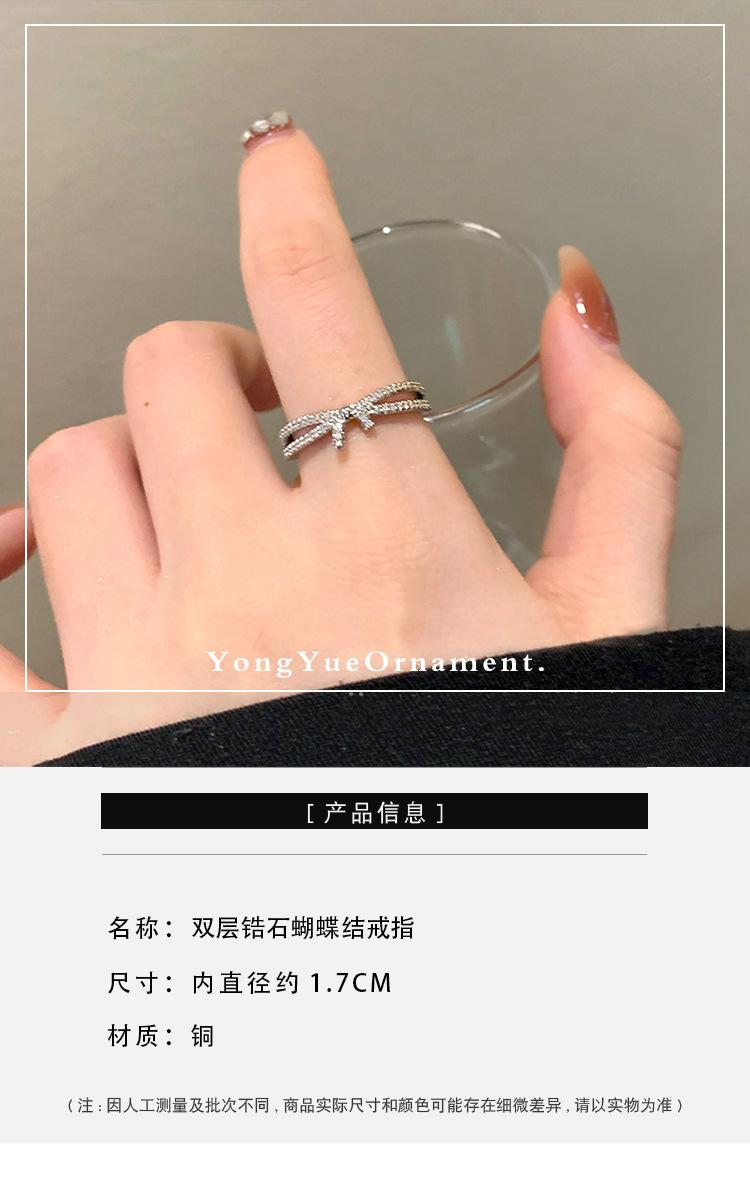 Double-layer zircon bow ring, Double Bow Opening Ring