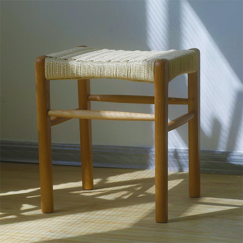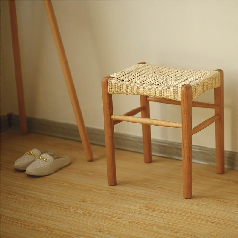 Banco de Ratán de Madera Maciza para Hogar, Pequeño, Sala de Estar, Cuerda, Taburete Pequeño, Habitación, Maquillaje, Estilo Japonés, Celebridad de Internet, Taburete Bajo