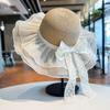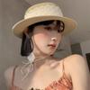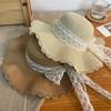 Sombrero de Paja de Encaje Tejido Dulce Estilo K para Verano Protección Solar y Protección UV Sombrero de Playa Pequeño y Fresco