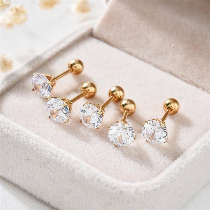 Nombre del producto: Pendientes de circonita de 4 garras de acero de titanio