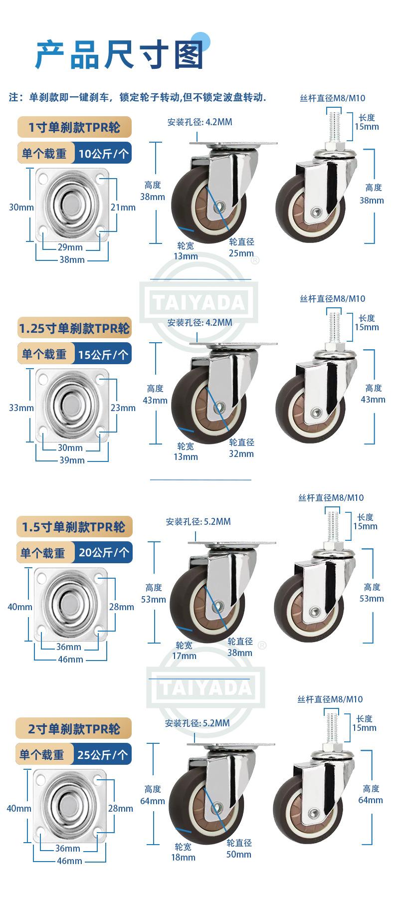Ruedas para muebles de 1 a 2 pulgadas, directas de fábrica, TPR, silenciosas, universales, con freno y antidesgaste.