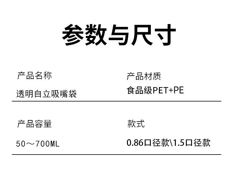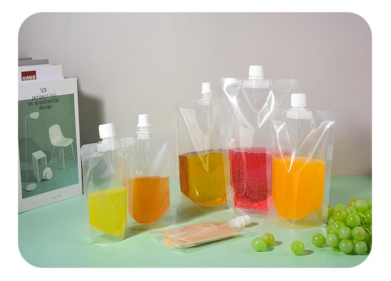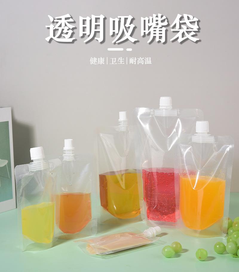 Bolsa de succión transparente desechable de grado alimenticio, bolsa para bebidas, bolsa de plástico independiente, bolsa para jugo, leche de soja y yogur.