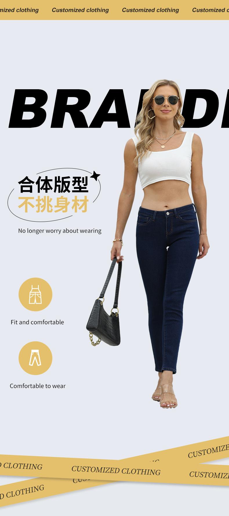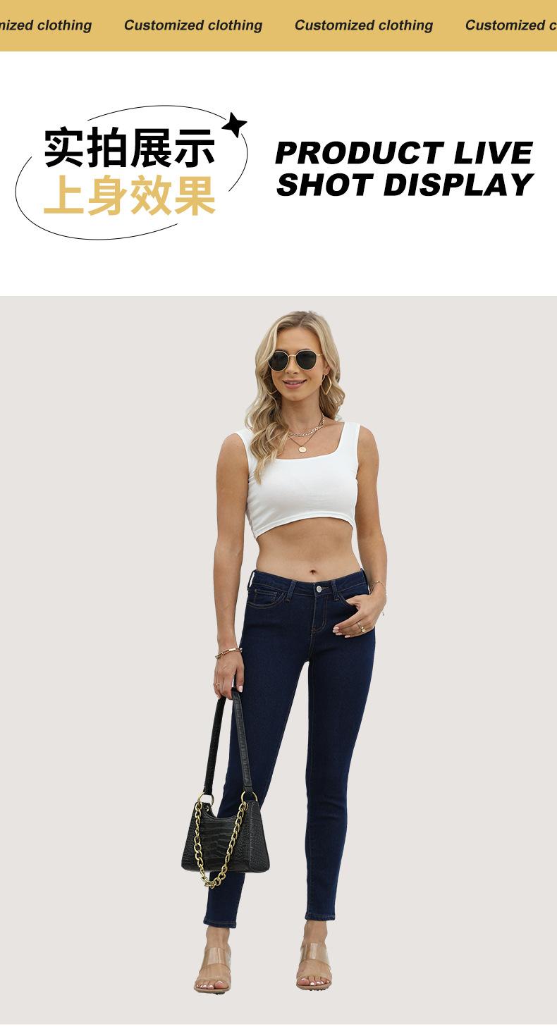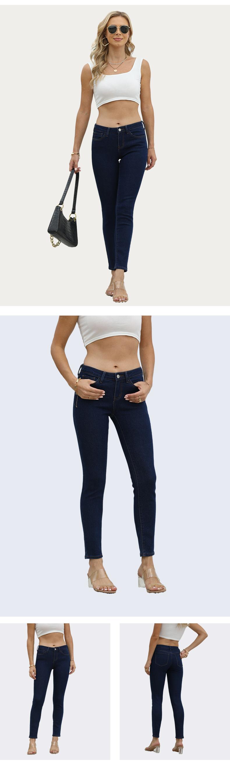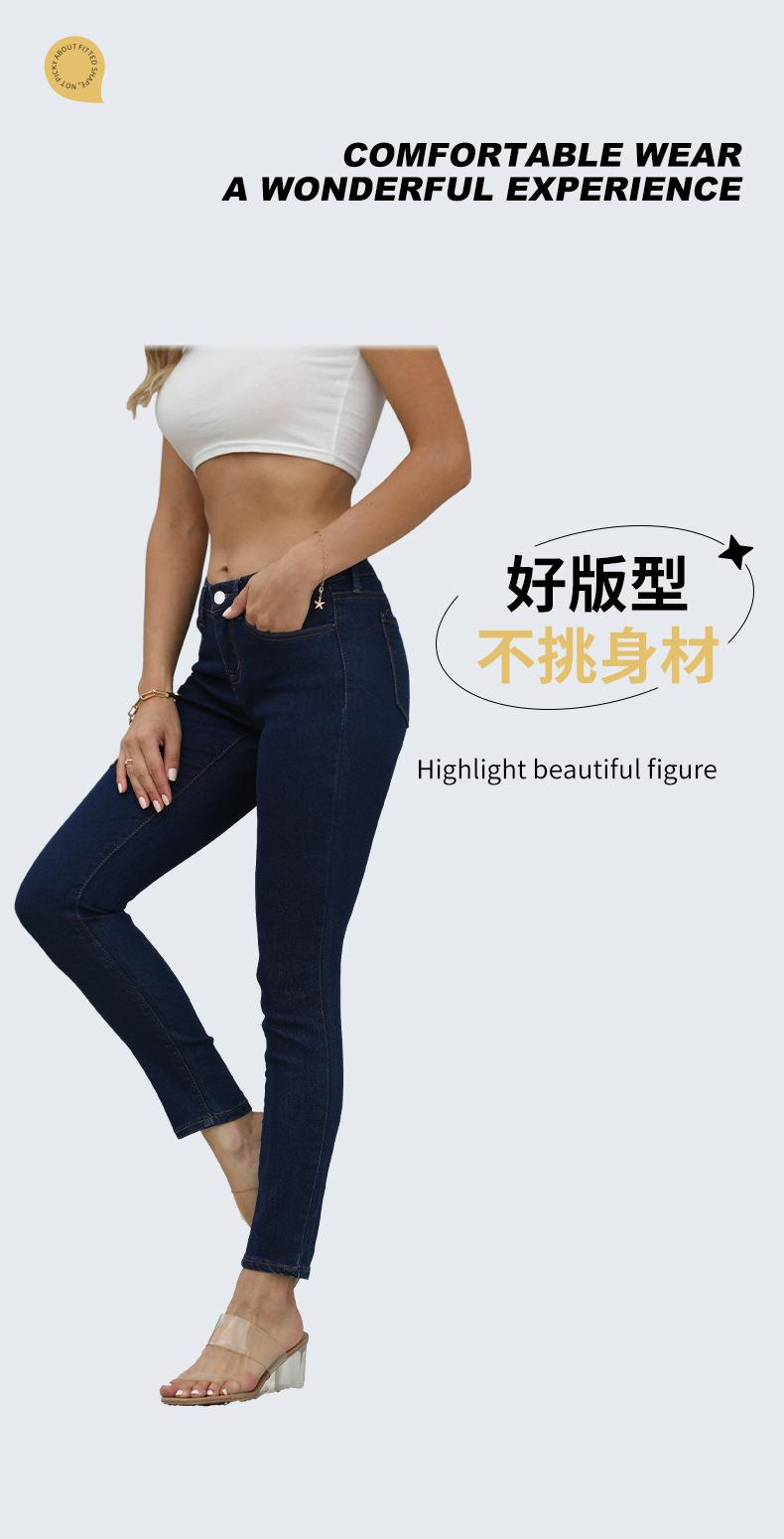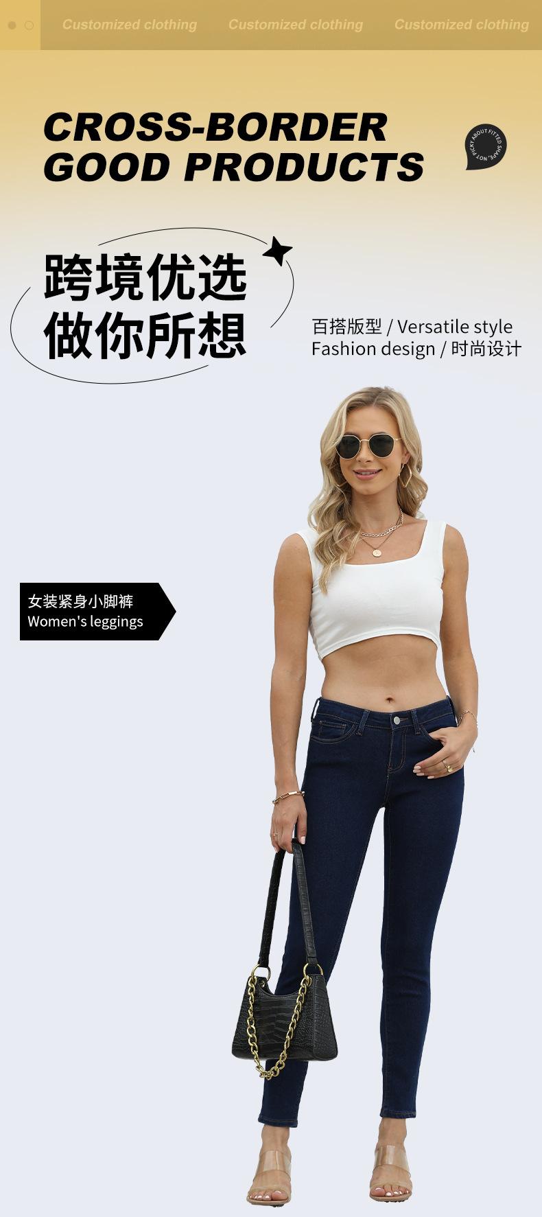 En stock, pantalones vaqueros ajustados de color liso para mujer de Europa y América. Venta al por mayor en Amazon, pantalones vaqueros ajustados de cintura alta para mujer de Europa y América.