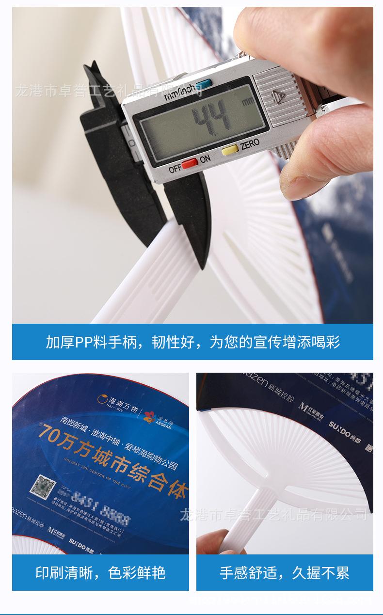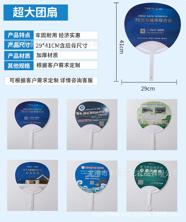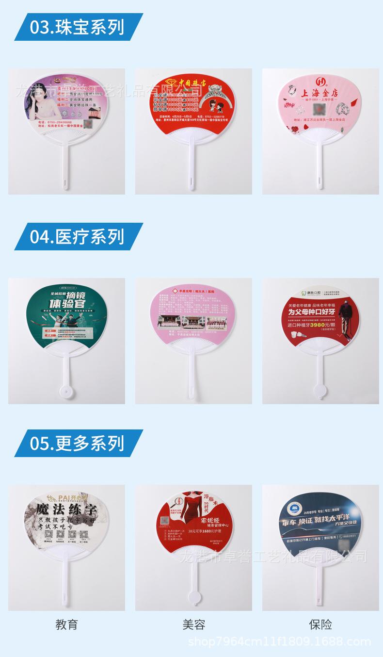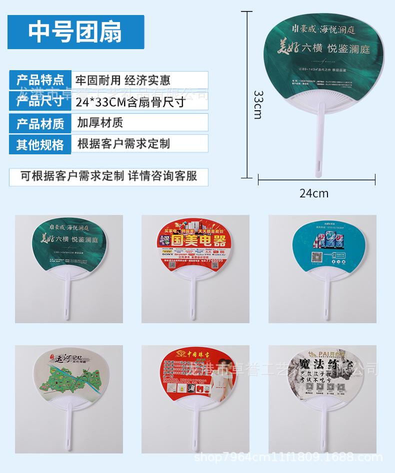 Suministro directo de fábrica abanico redondo de plástico publicidad reclutamiento abanico de plástico pp plástico joyería bienes raíces abanico promocional impresión de logotipo