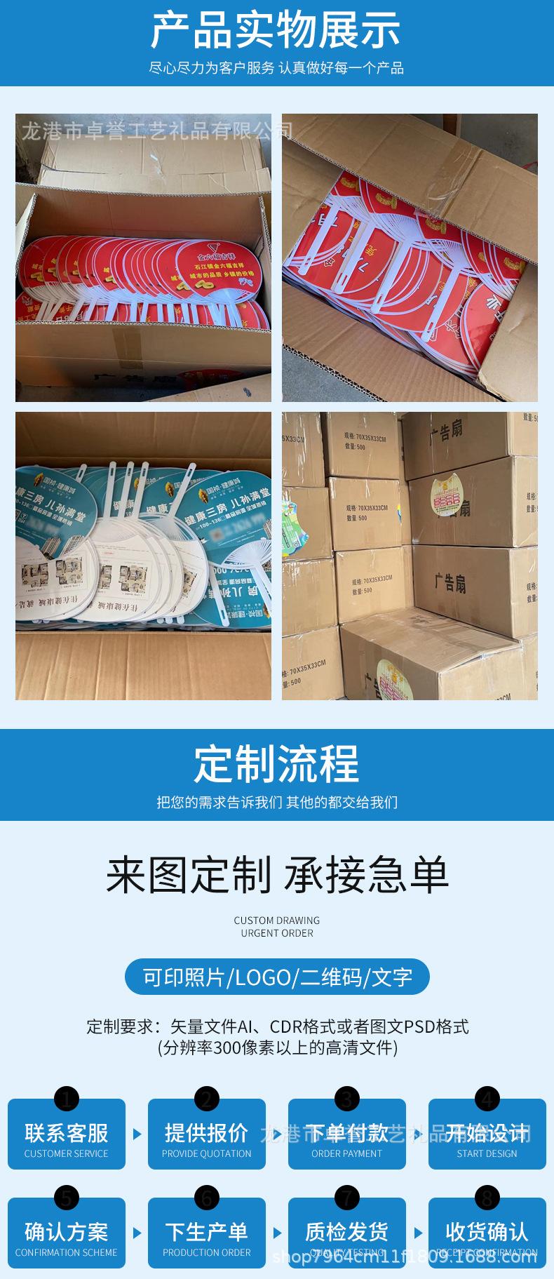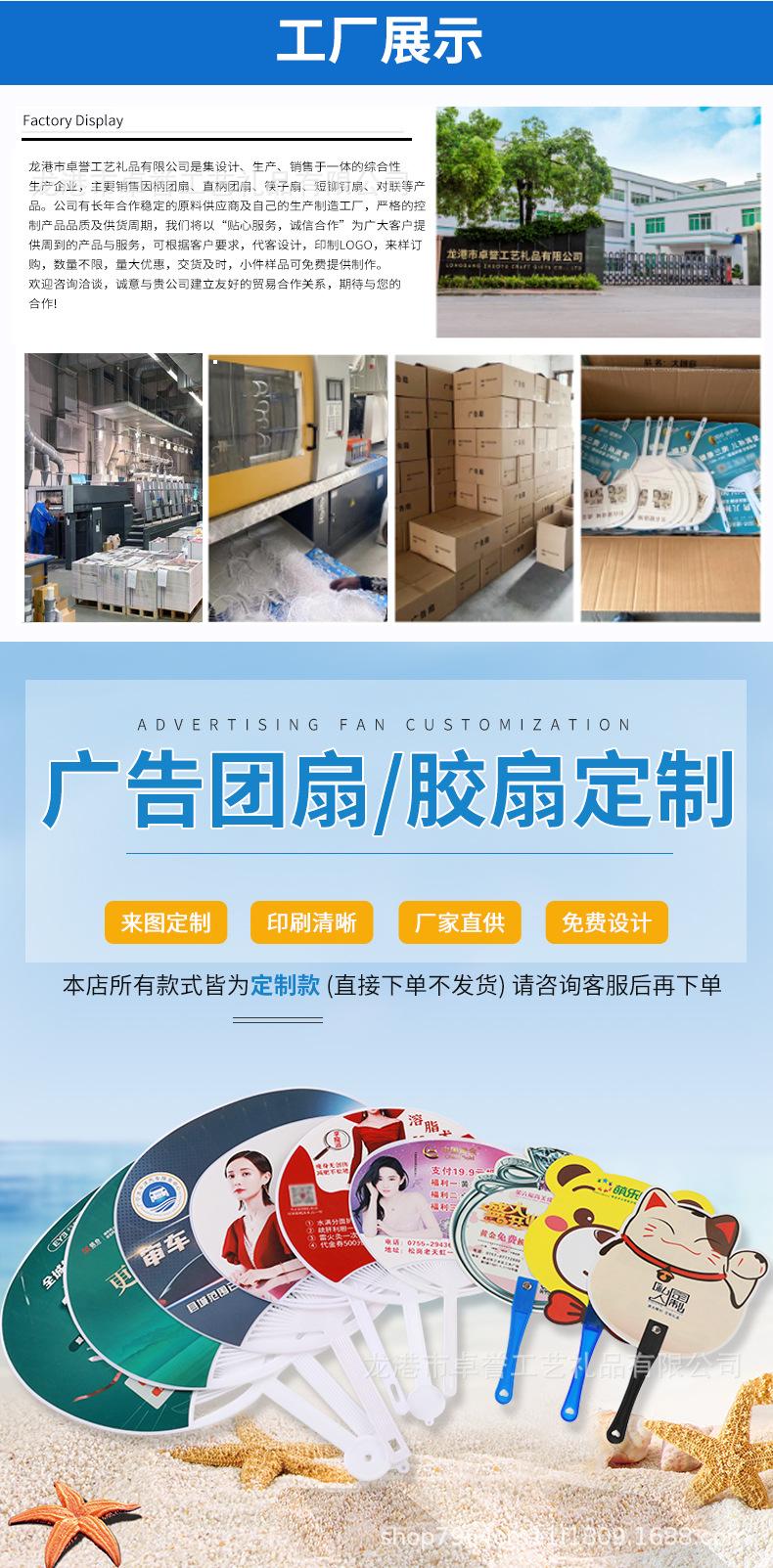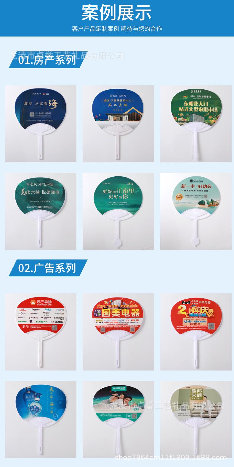 Suministro directo de fábrica abanico redondo de plástico publicidad reclutamiento abanico de plástico pp plástico joyería bienes raíces abanico promocional impresión de logotipo