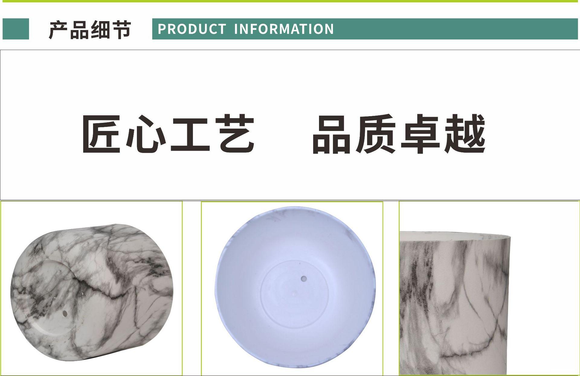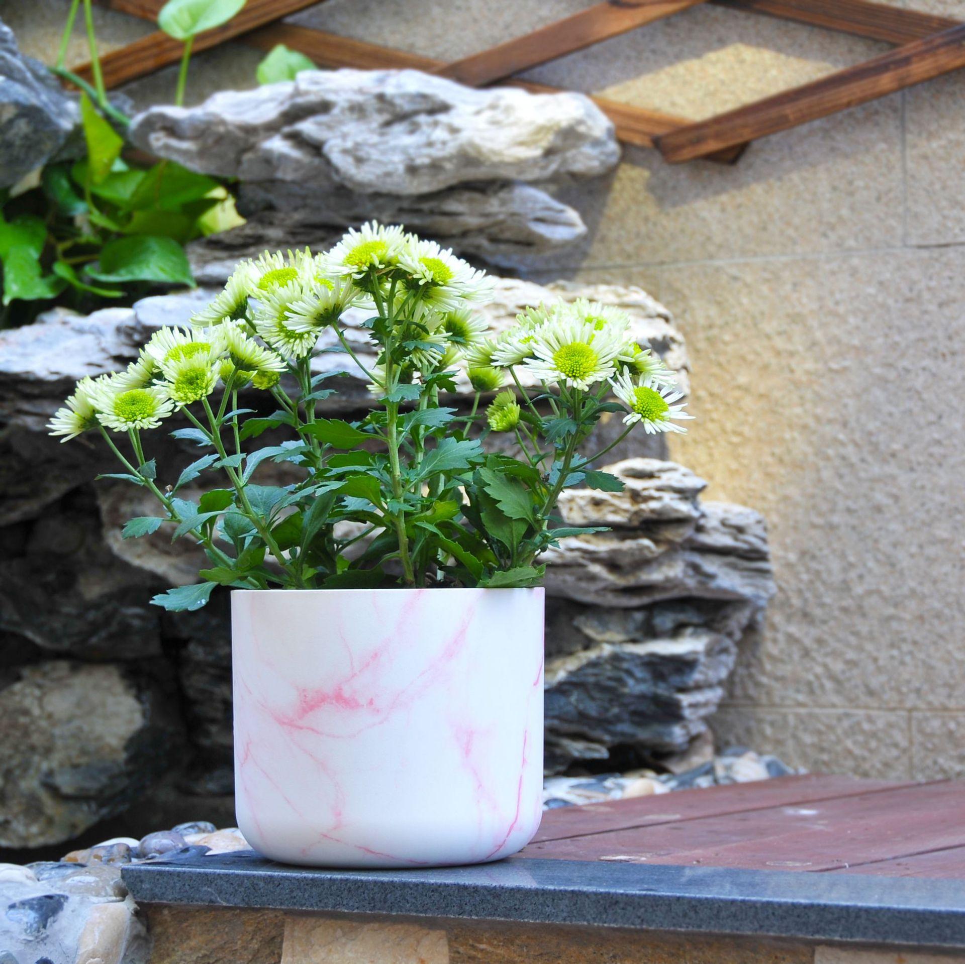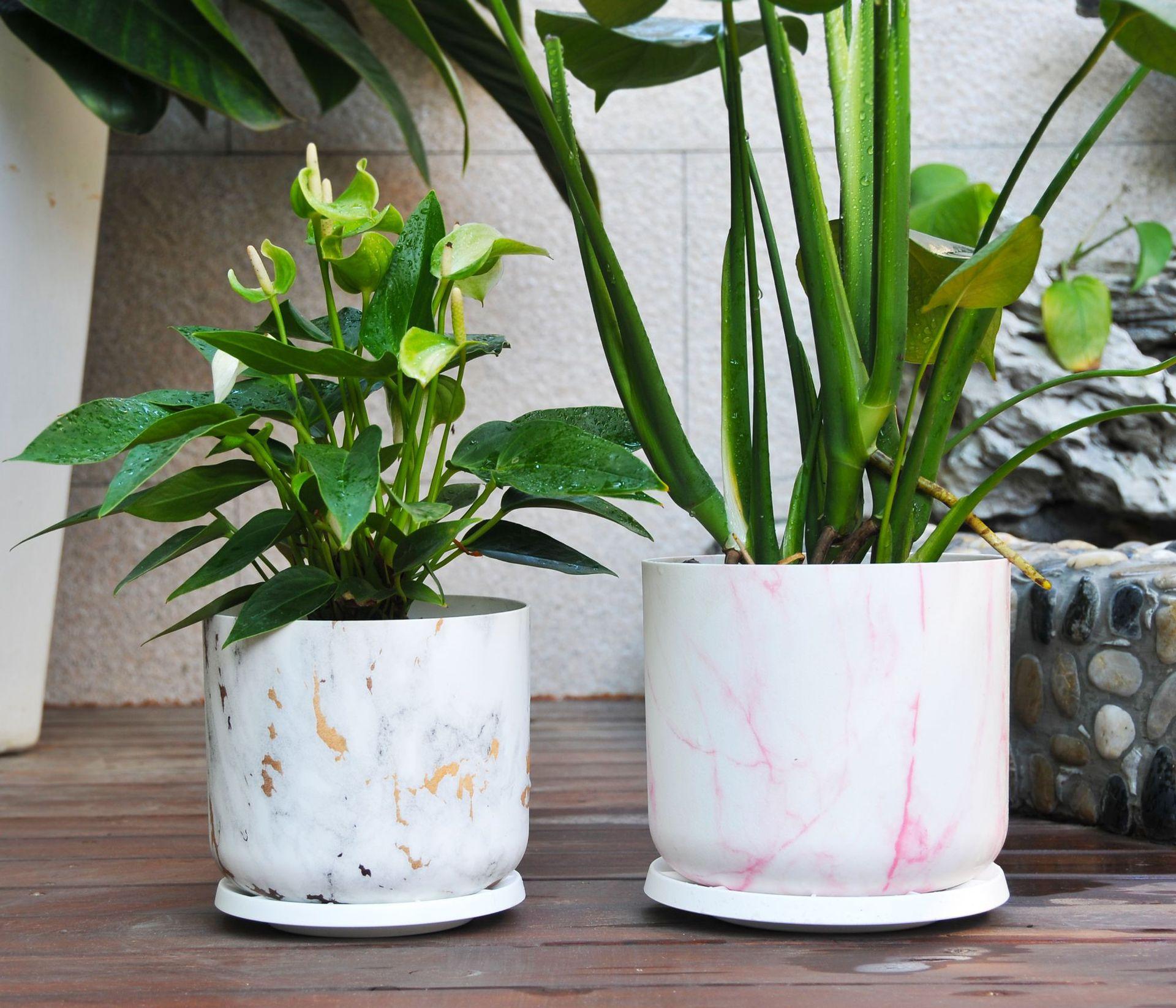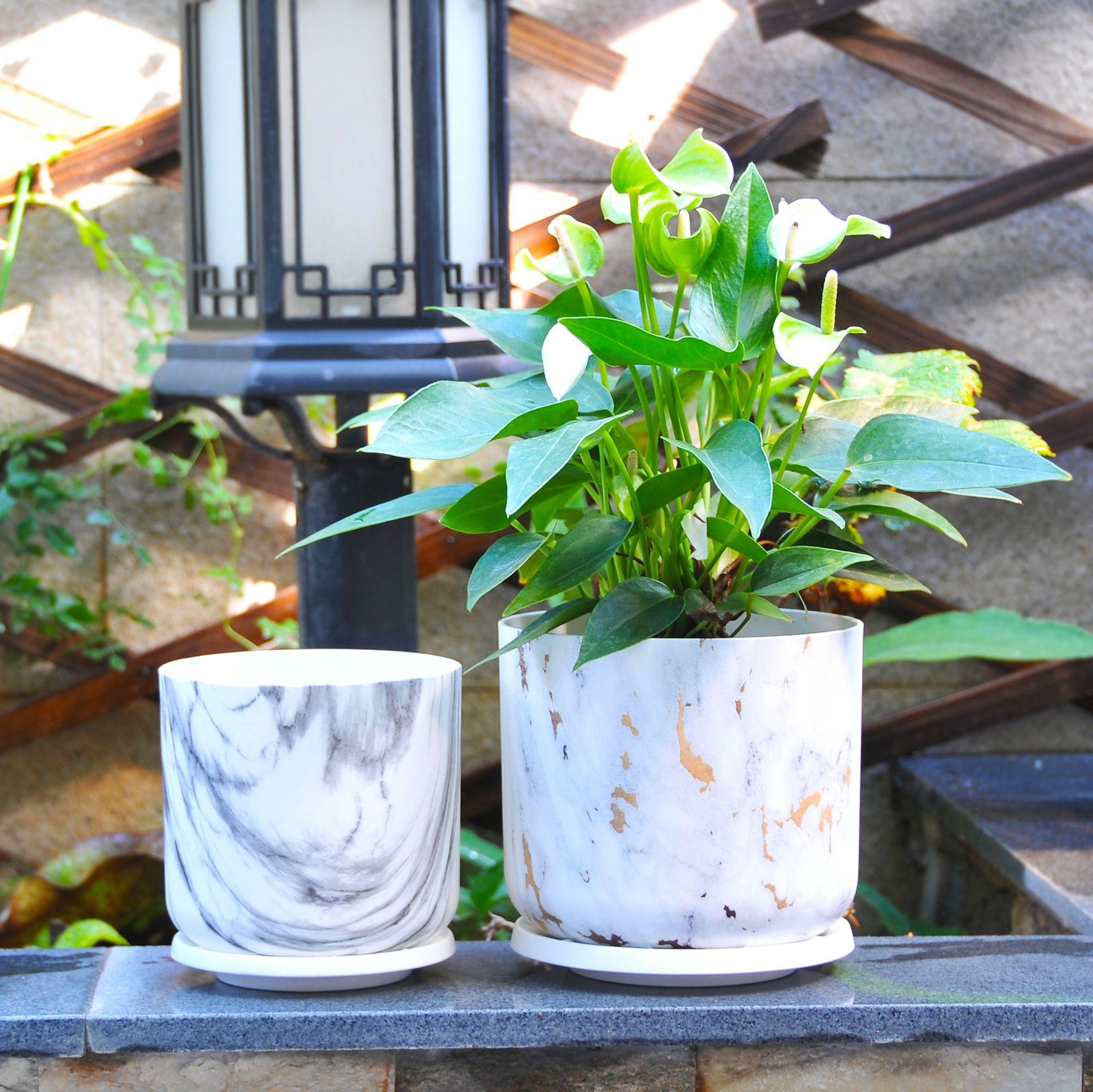 Maceta de plástico ABS universal, duradera, de corte redondo, con diseño de mármol, para árbol de la riqueza, de corte recto y abierto.