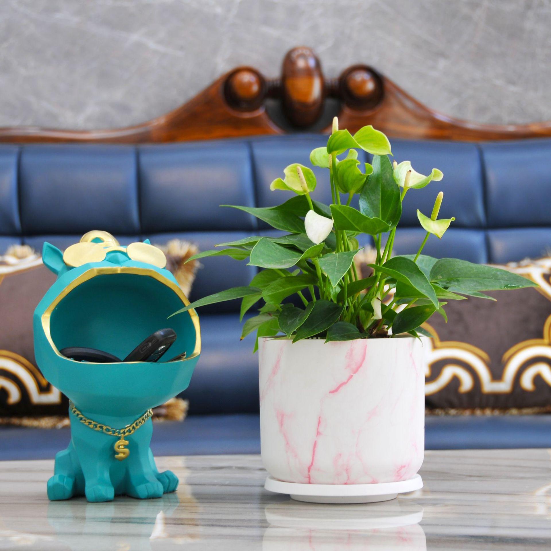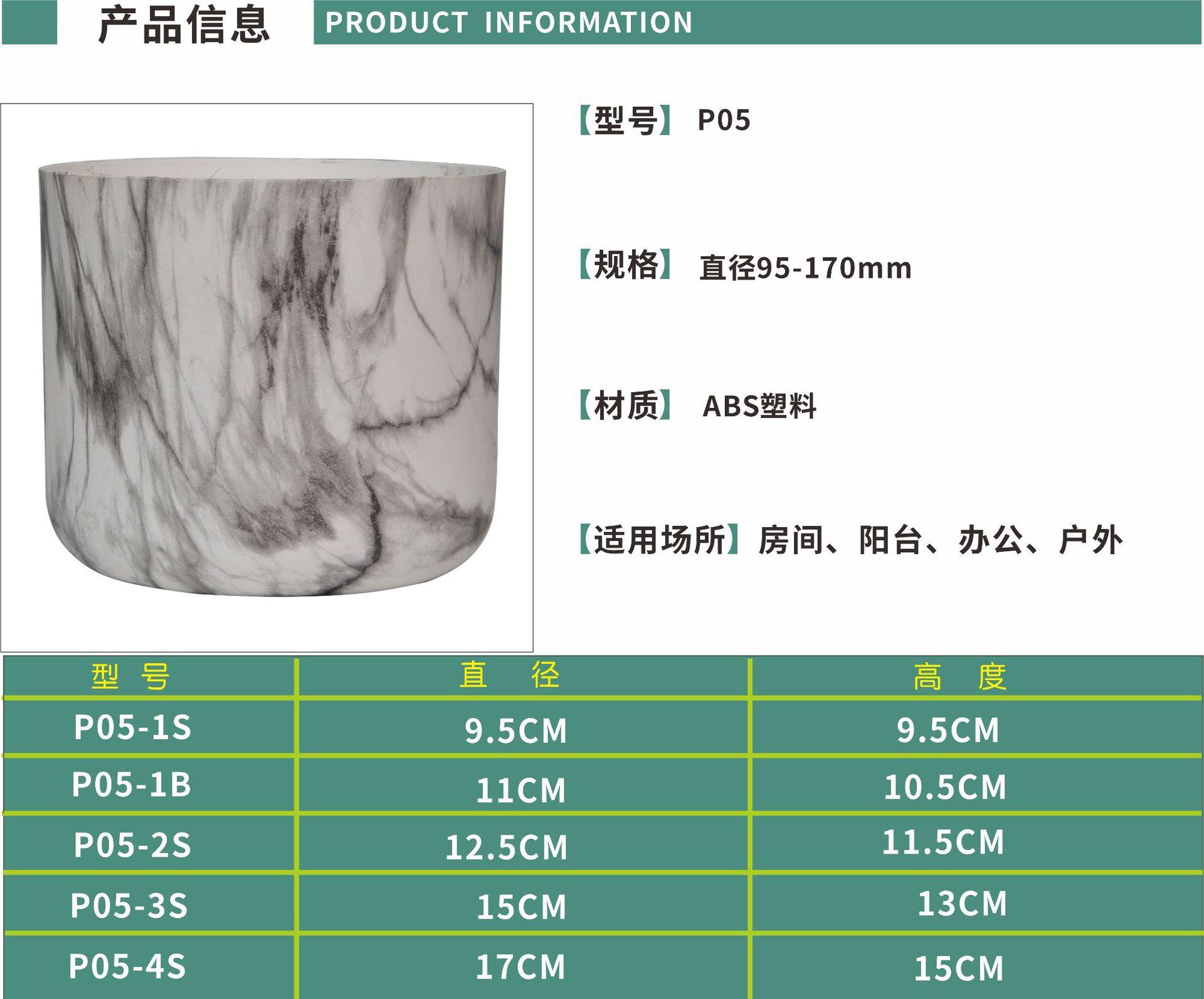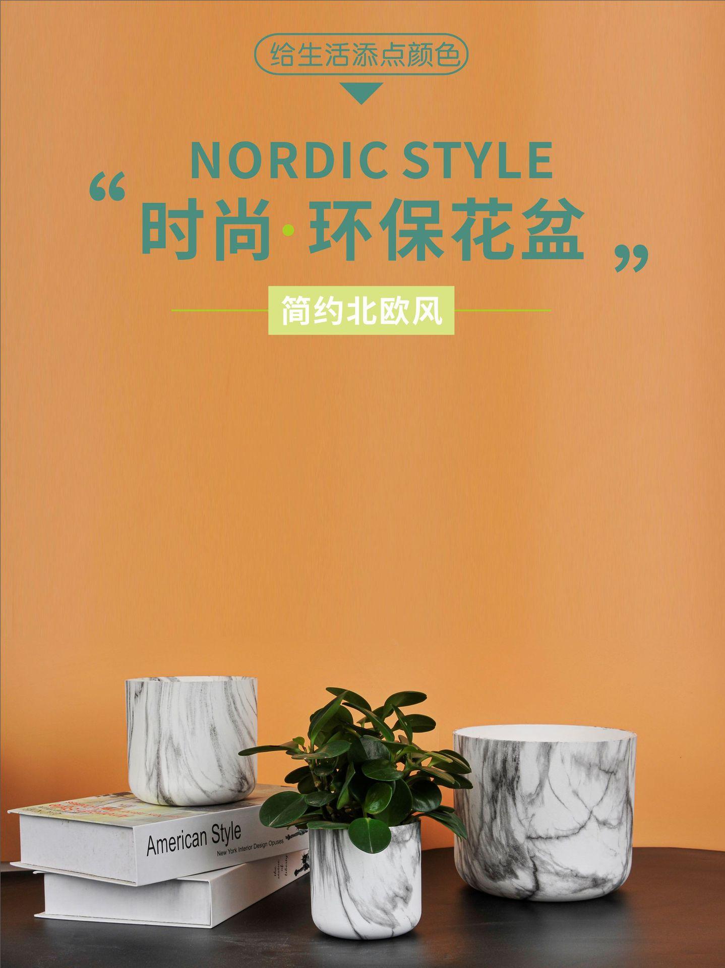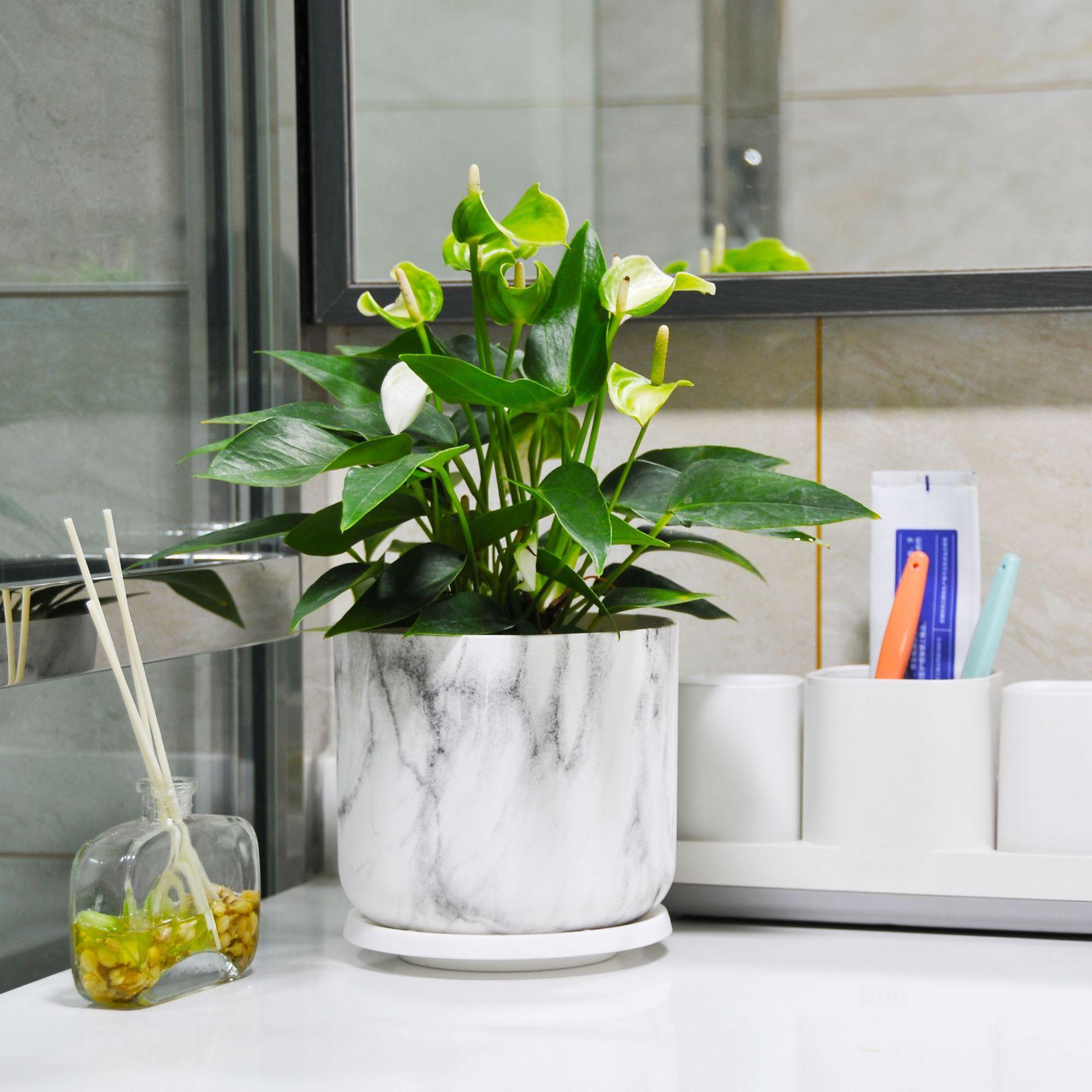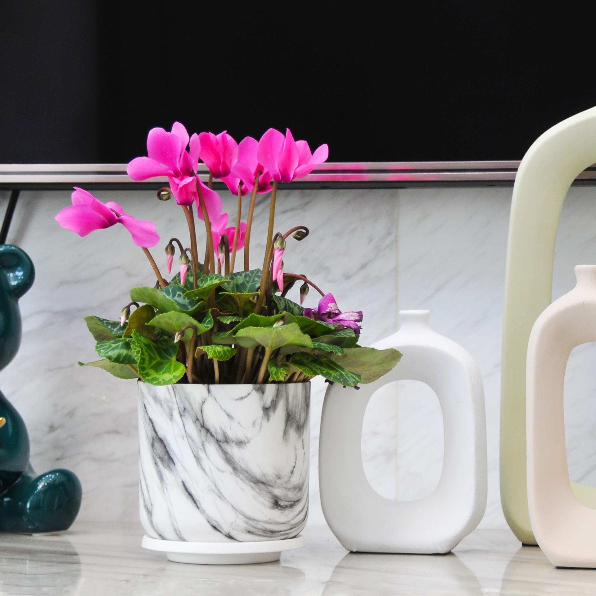 Maceta de plástico ABS universal, duradera, de corte redondo, con diseño de mármol, para árbol de la riqueza, de corte recto y abierto.