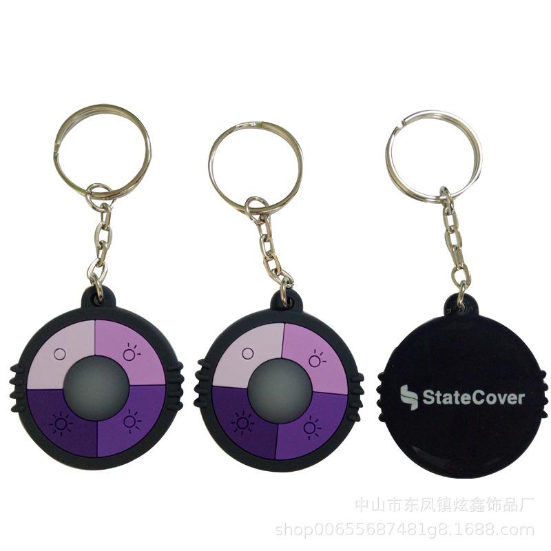![]() Llavero colgante de pegamento suave fotosensible que cambia de color de PVC personalizado de fábrica con logotipo impreso en color en la parte posterior del llavero UV