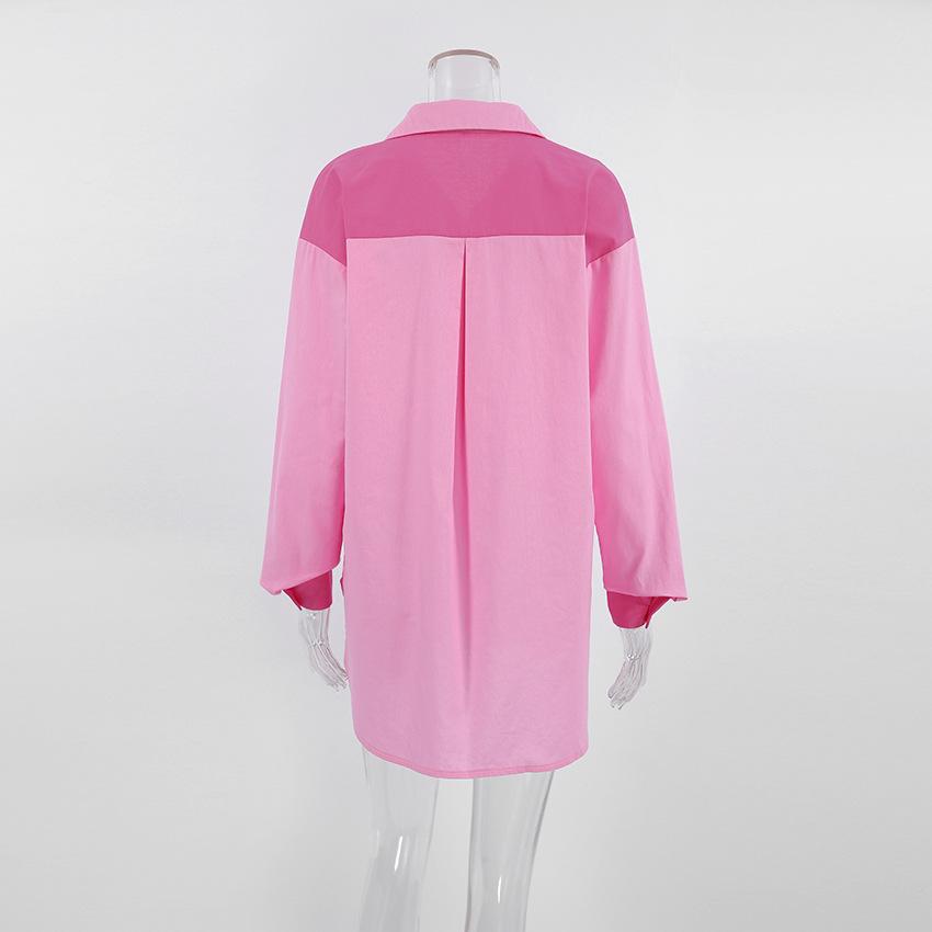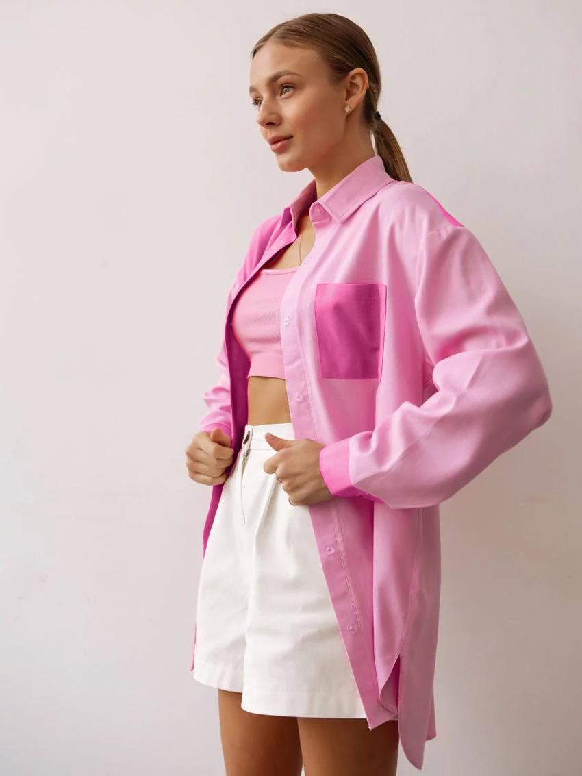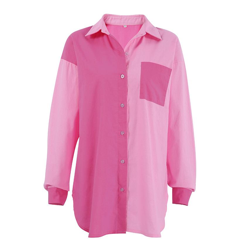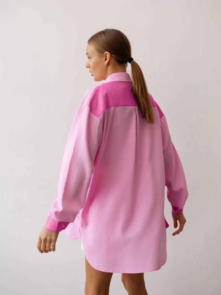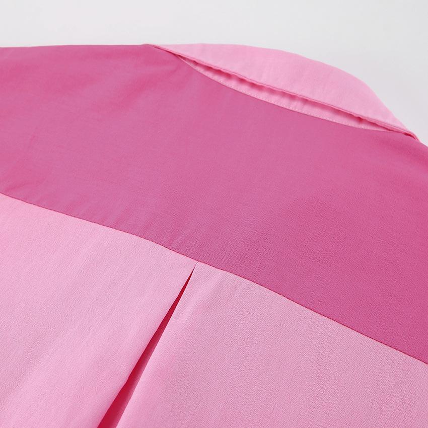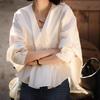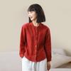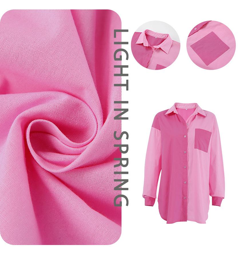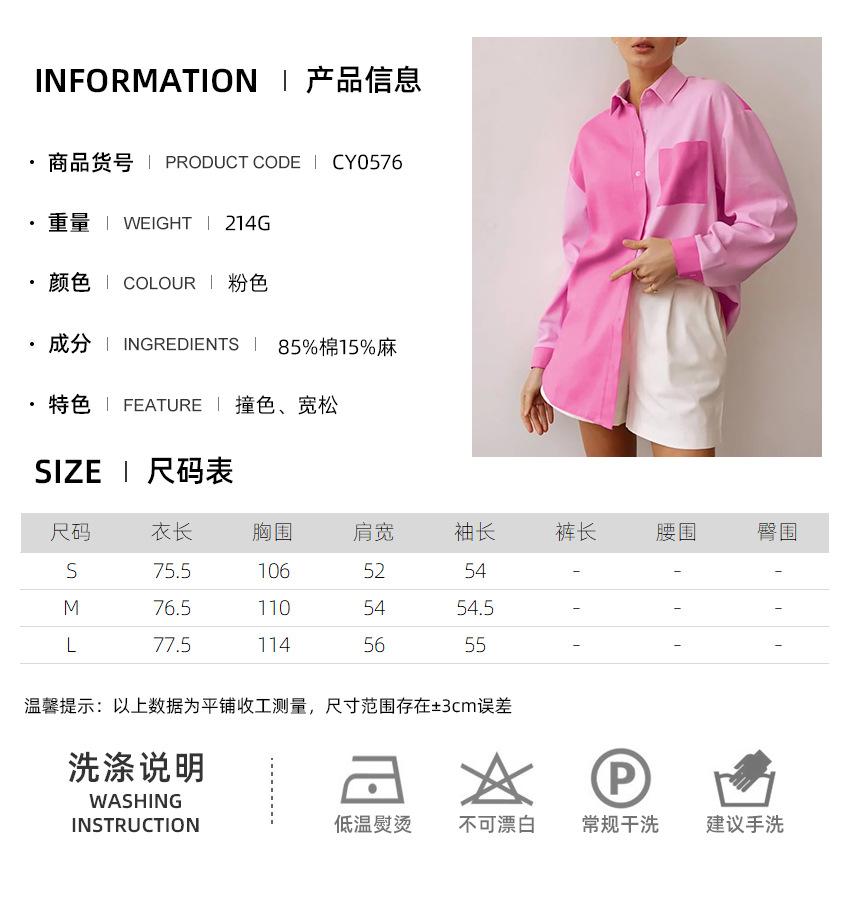 Camisa de lino y algodón de manga larga de otoño para mujer, diseño con costuras nítidas, color contrastante, estilo informal y elegante, Europa y América, 2023