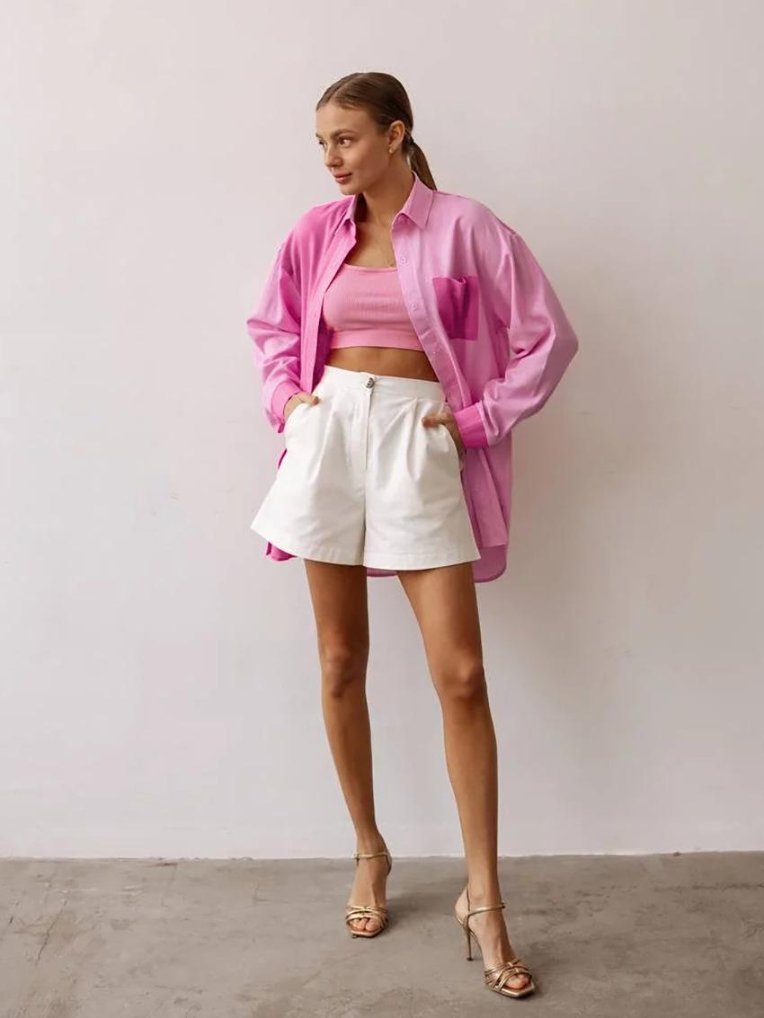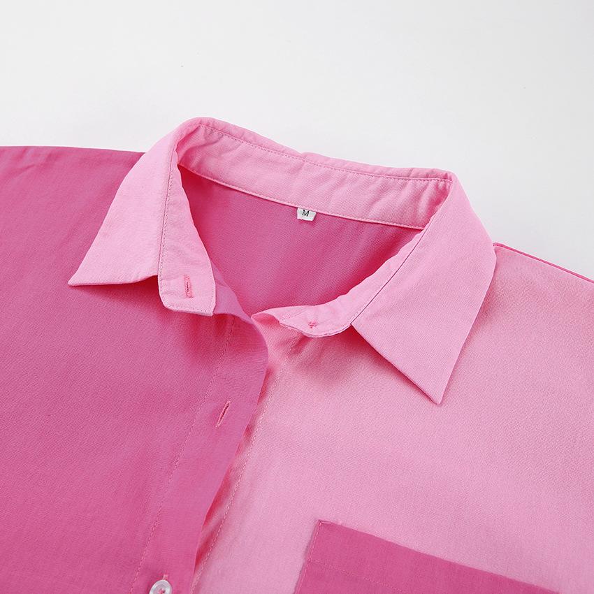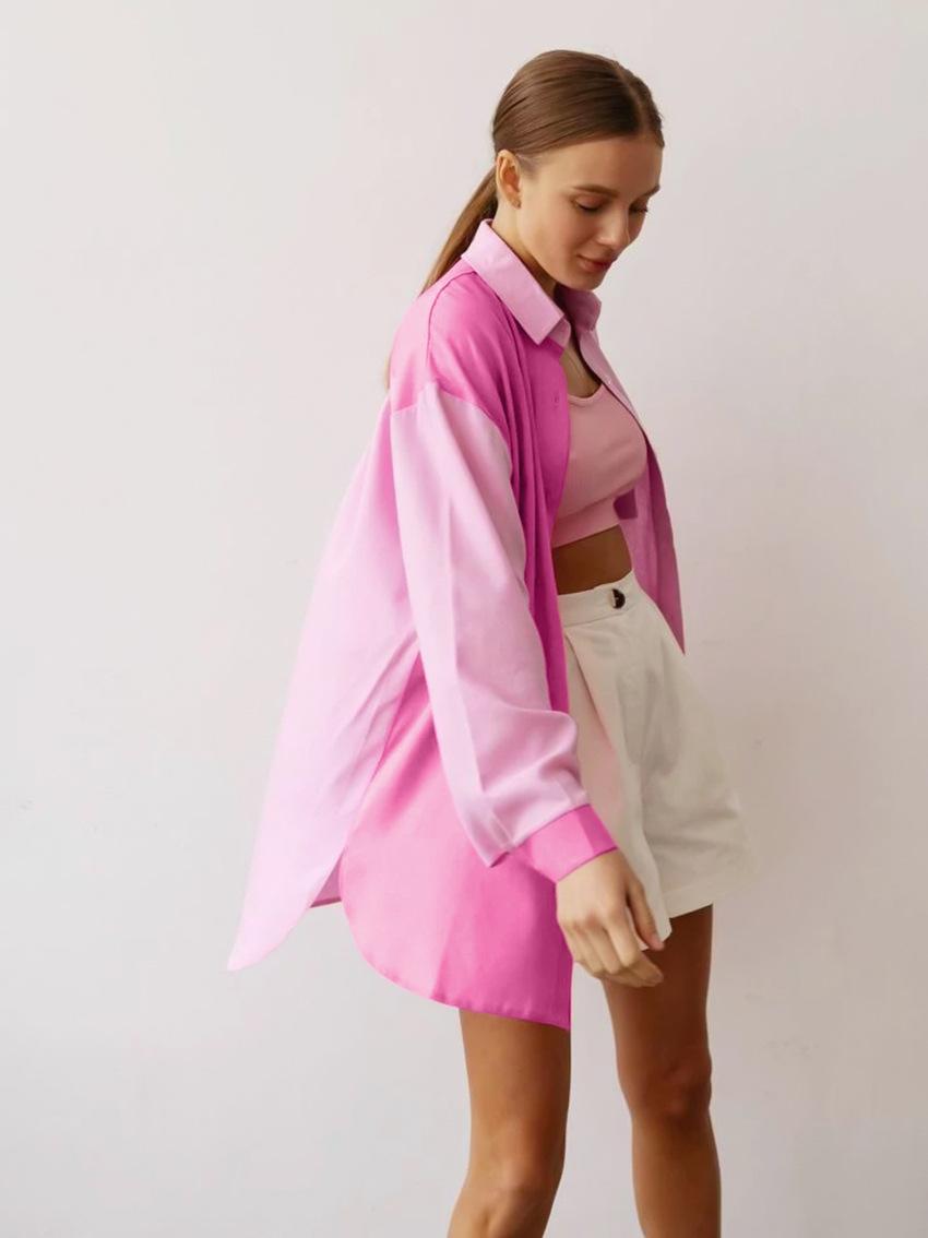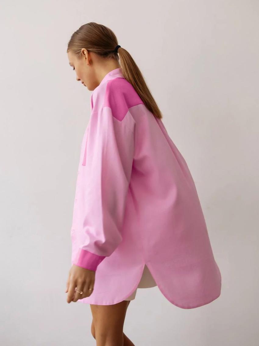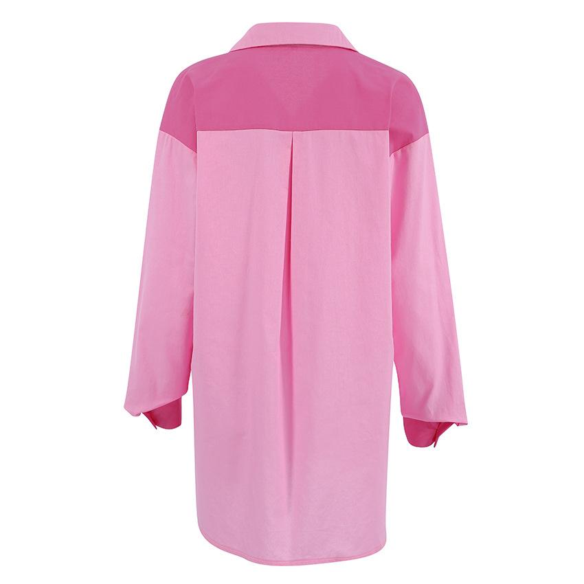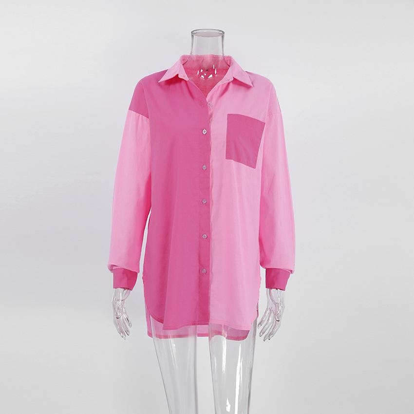 Camisa de lino y algodón de manga larga de otoño para mujer, diseño con costuras nítidas, color contrastante, estilo informal y elegante, Europa y América, 2023