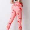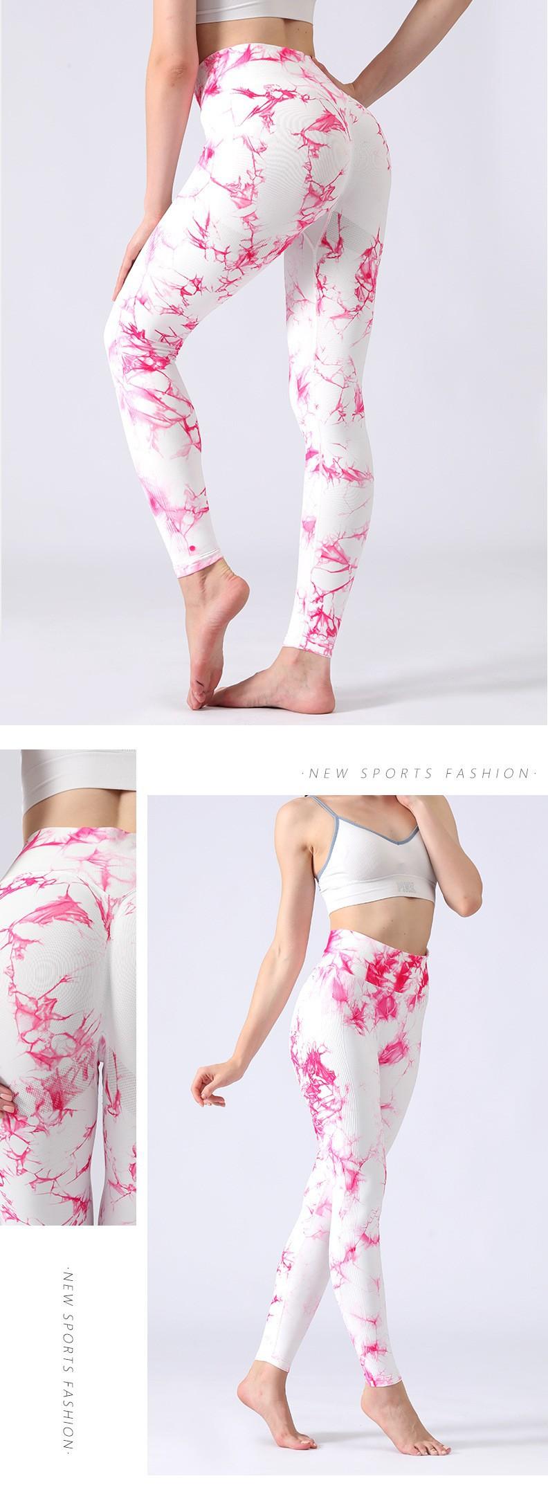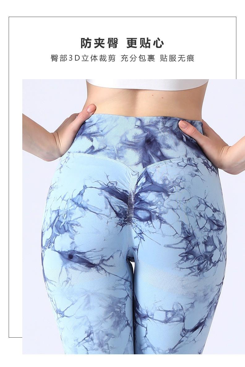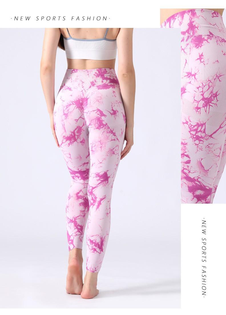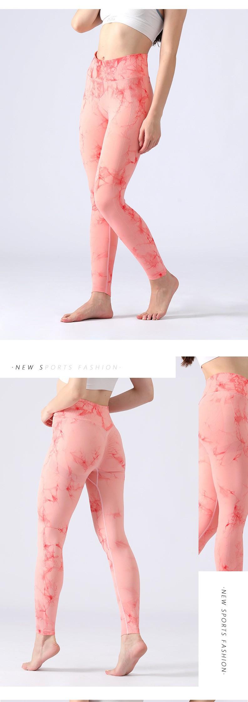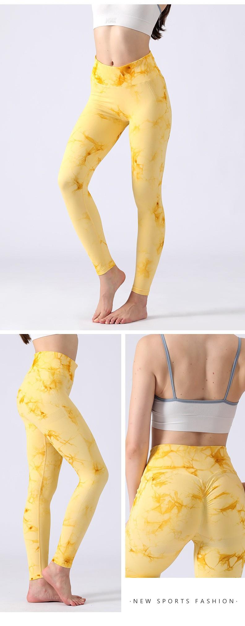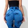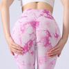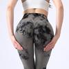 Pantalones de yoga europeos y americanos transfronterizos teñidos anudados de cintura alta levantamiento de cadera sin costuras para correr Mallas deportivas de fitness Peach Hip para mujer