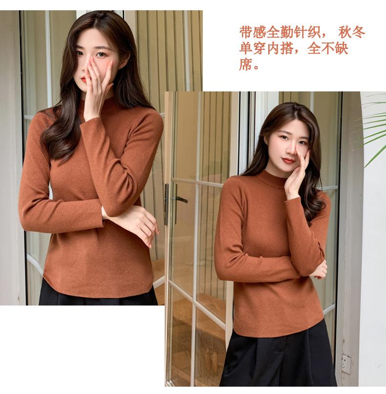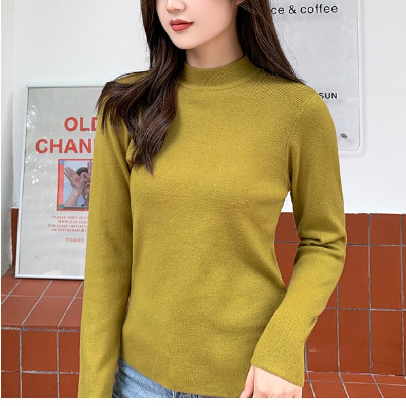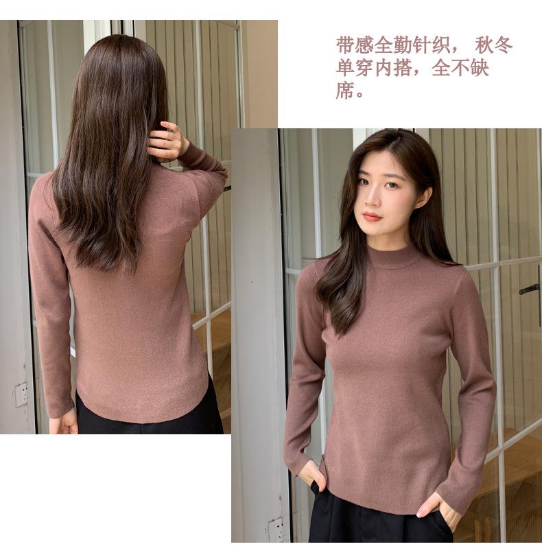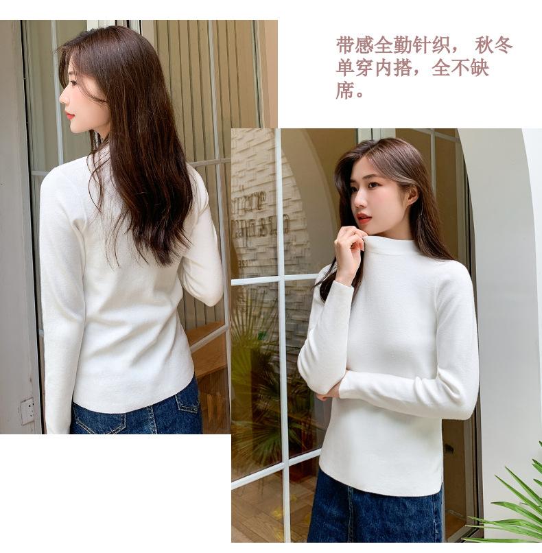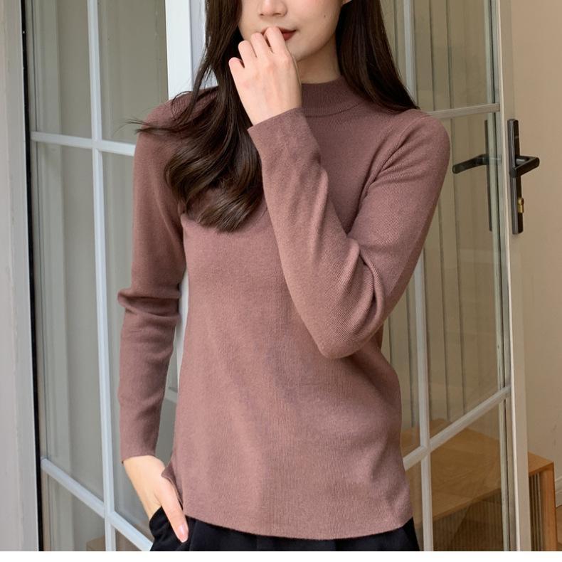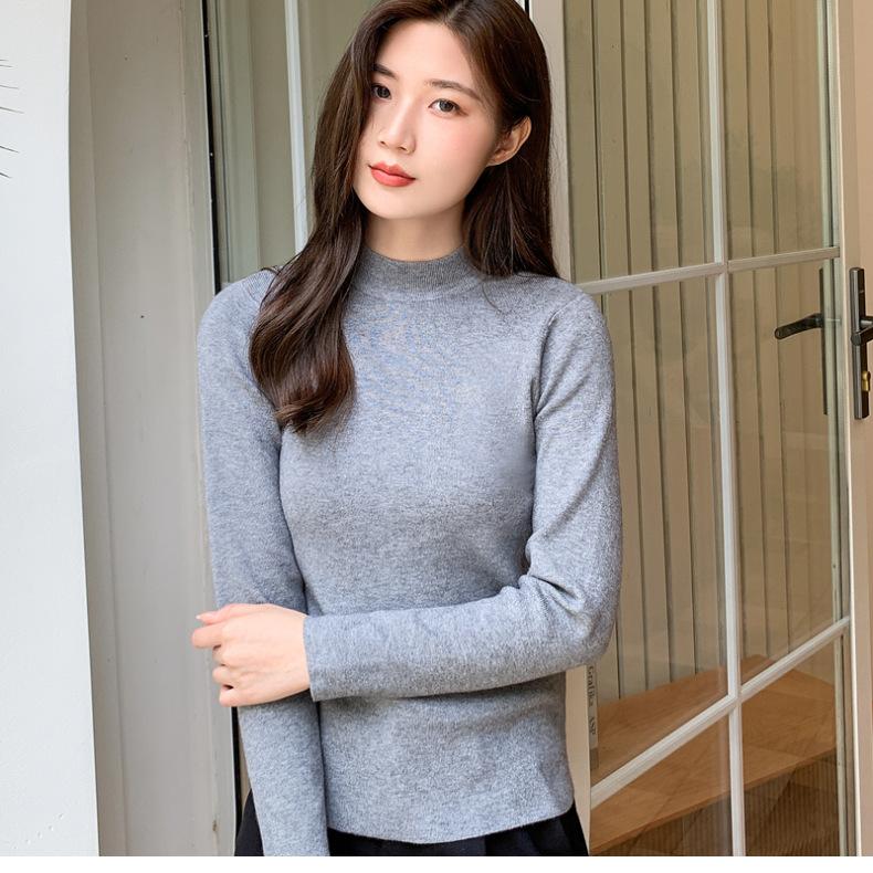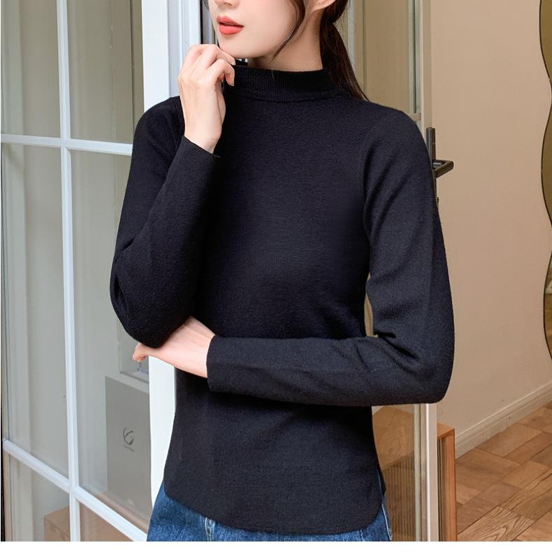 Suéter nuevo de manga larga 2025 Estilo coreano Adelgazante para mujer Suéter ajustado de cuello alto Camiseta interior para mujer