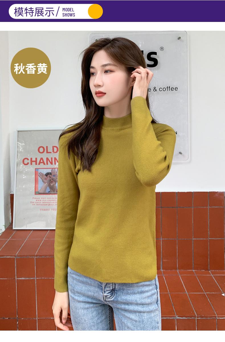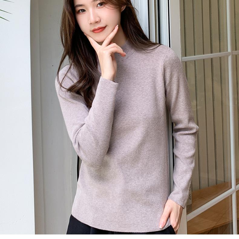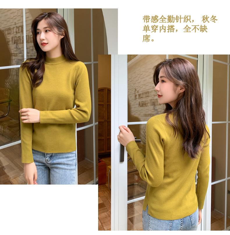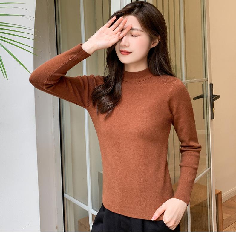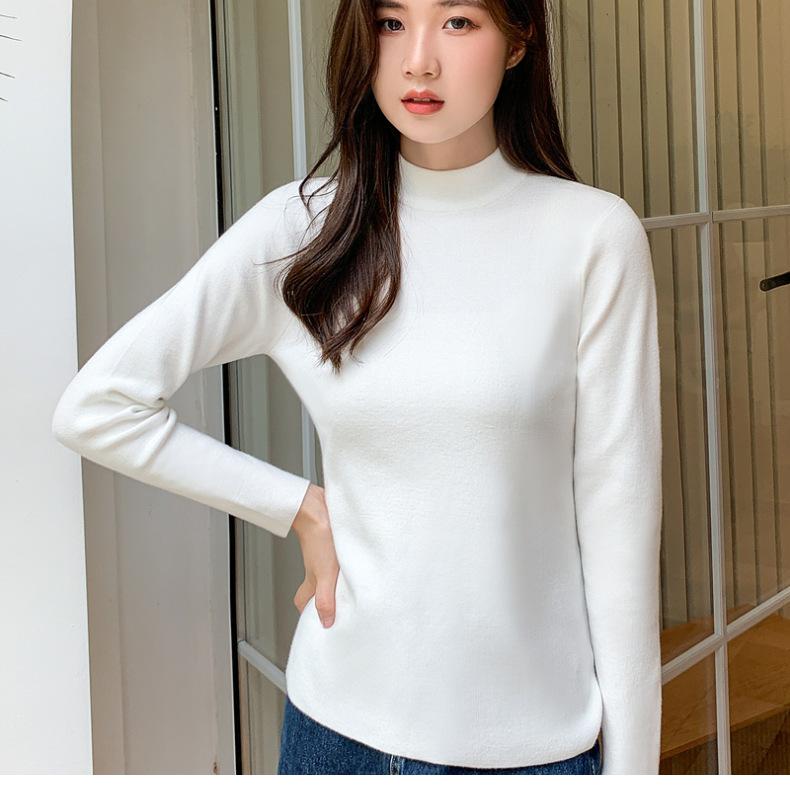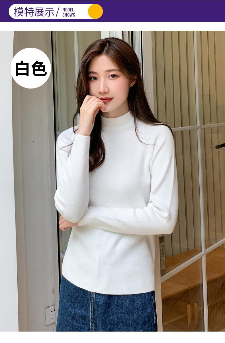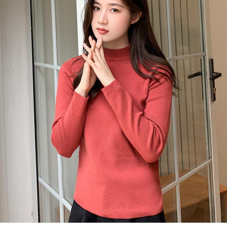 Suéter nuevo de manga larga 2025 Estilo coreano Adelgazante para mujer Suéter ajustado de cuello alto Camiseta interior para mujer