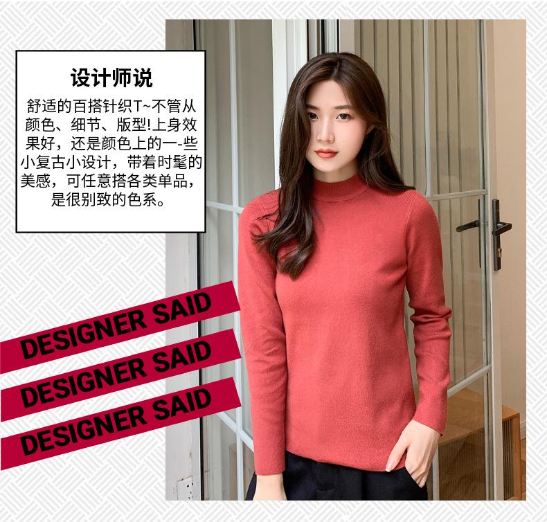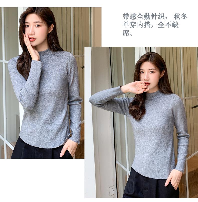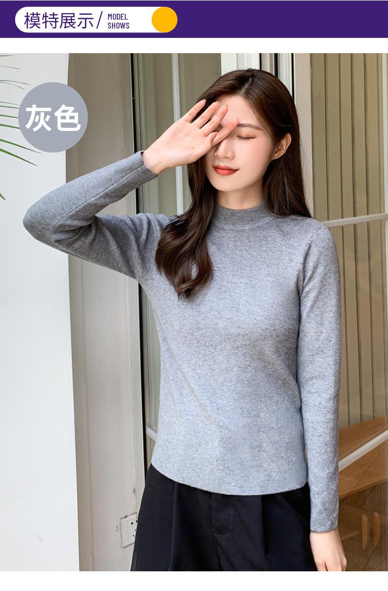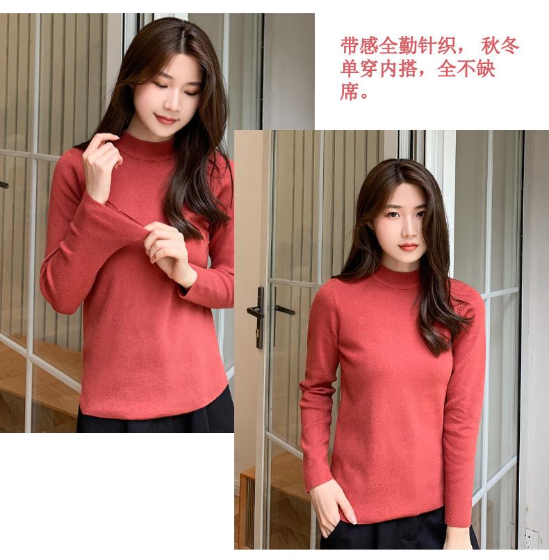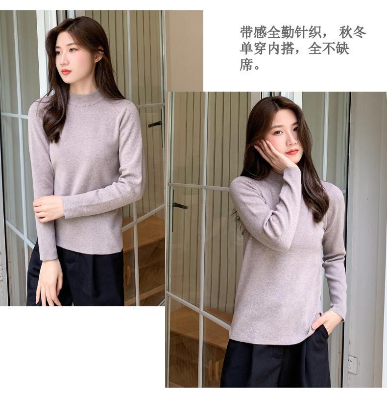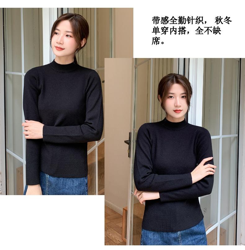 Suéter nuevo de manga larga 2025 Estilo coreano Adelgazante para mujer Suéter ajustado de cuello alto Camiseta interior para mujer