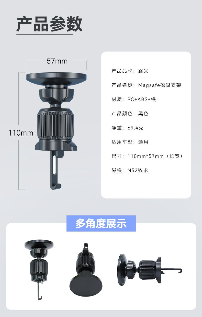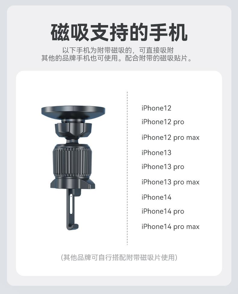 Wing air outlet clip + mirror magnetic suction head, Glass bead frame + mirror magnetic suction head, Double c...