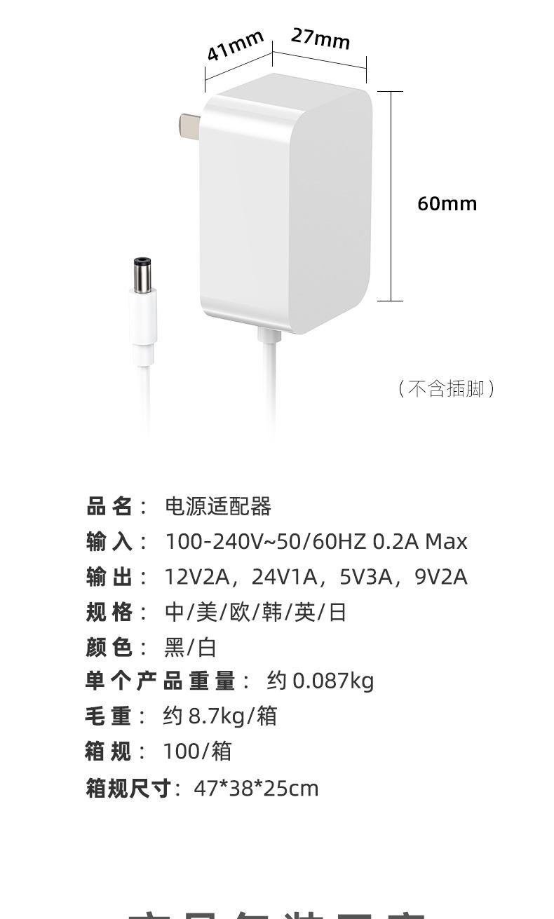 Adaptador de Corriente 12V2A Estándar Chino Certificado 3C Lámpara de Escritorio 24W Masajeador 18W Pequeños Electrodomésticos 12V1.5A Adaptador