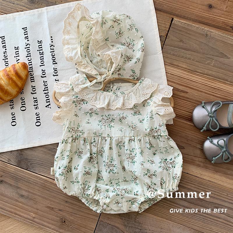 Enviar sombrero bebé floral bolsa pedo ropa 0-2 verano ropa Corea del Sur ropa infantil bebé cuello de encaje ha ropa AL021