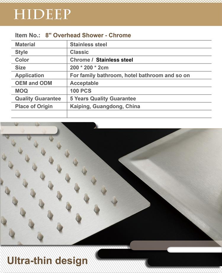 Ducha de acero inoxidable cepillado de 8 pulgadas cuadradas, rociador superior ultrafino, directo de fábrica HIHSPJ017-2