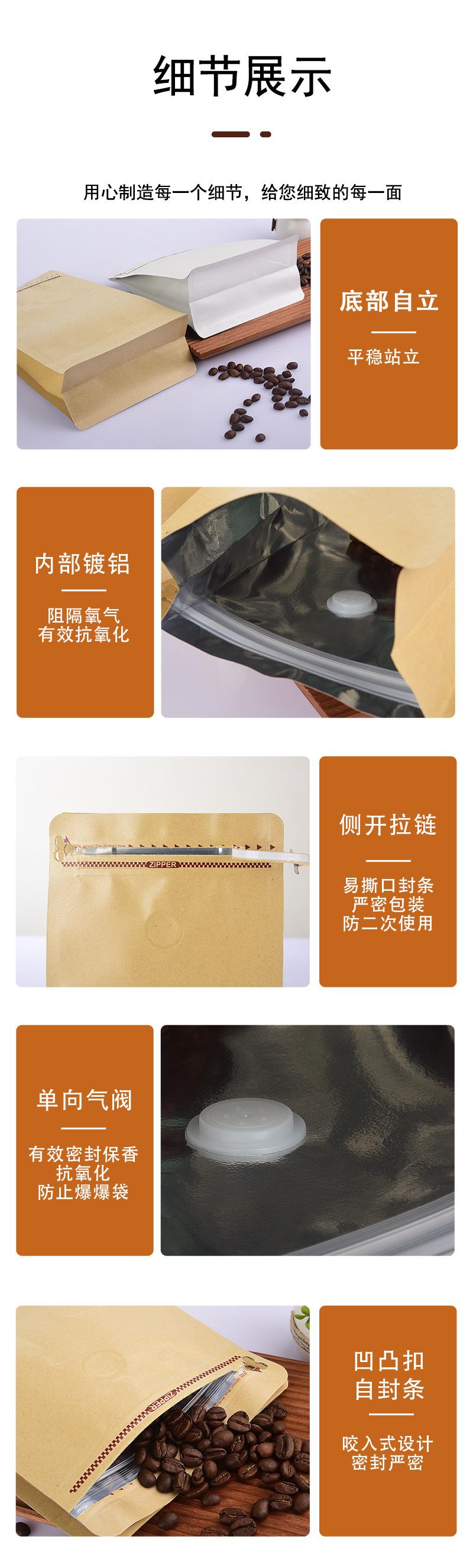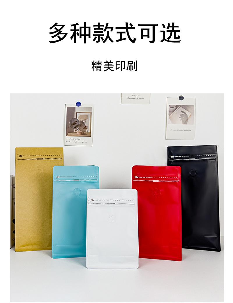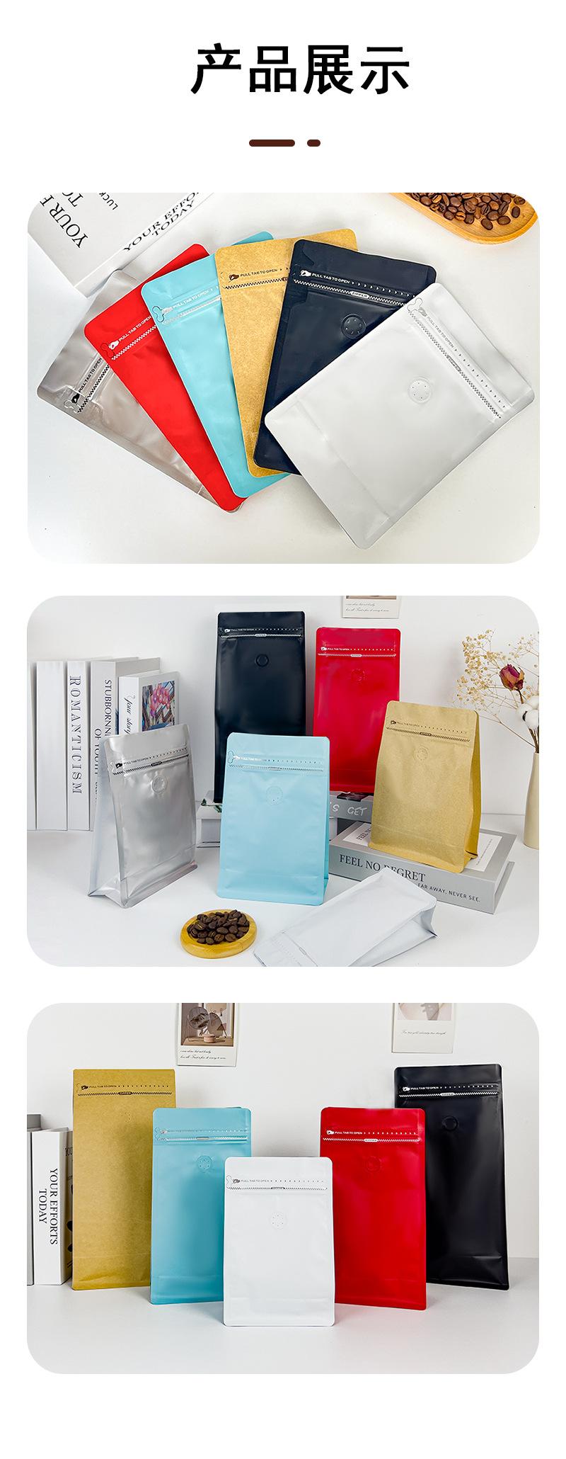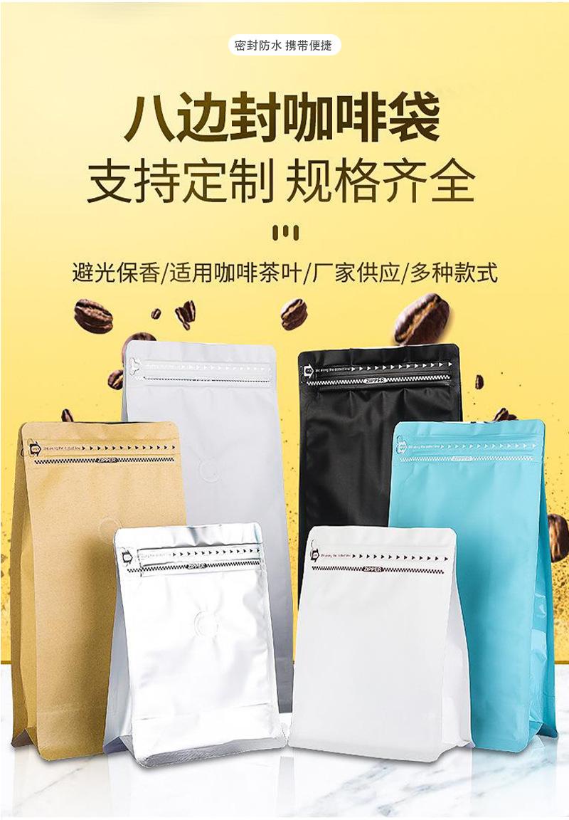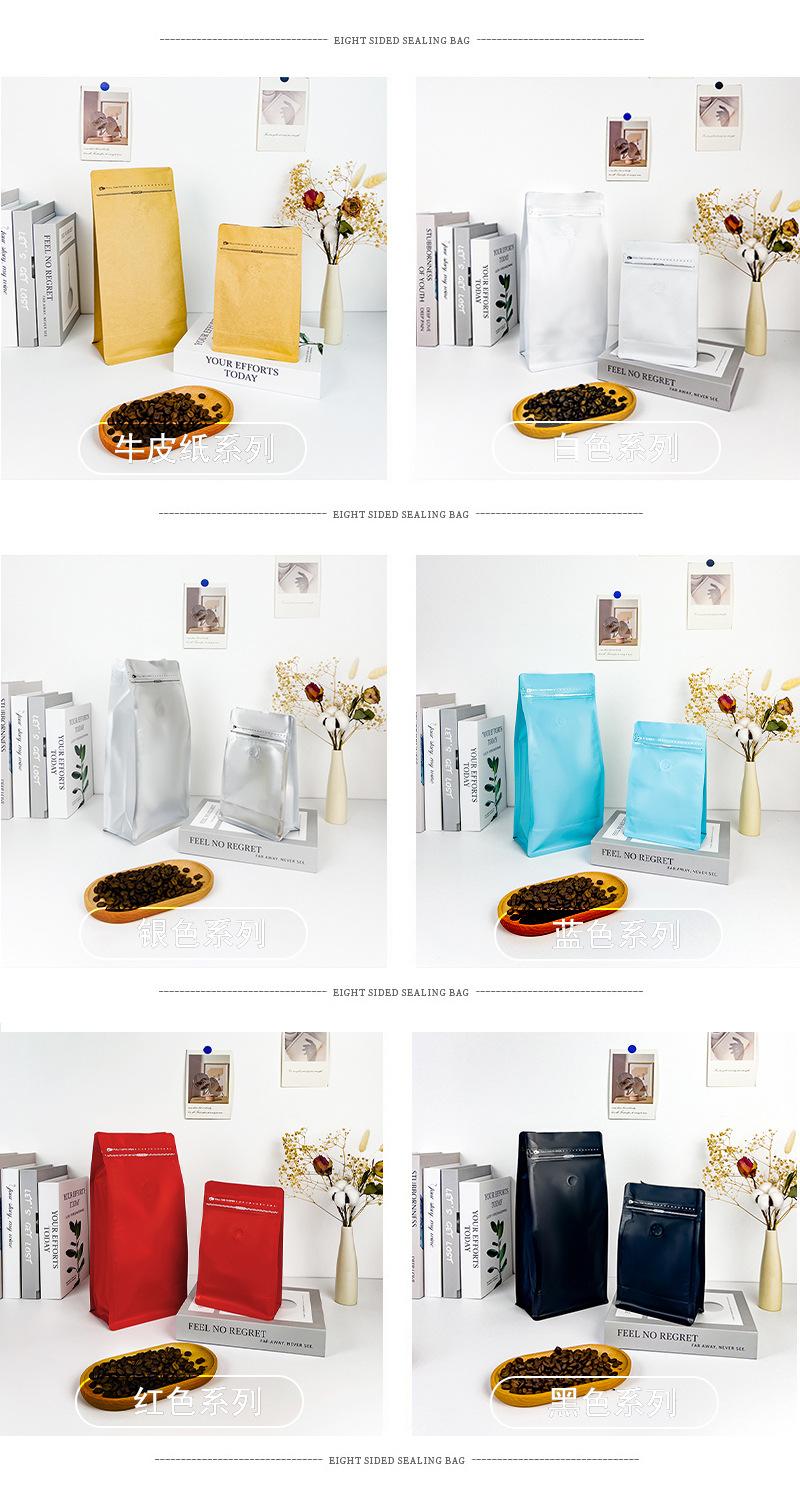 Bolsa ziplock para café sellada por ocho lados, bolsa sellada de papel de aluminio, bolsa para comida de gato y perro, bolsa de té con válvula de aire, bolsa de embalaje para granos de café en stock
