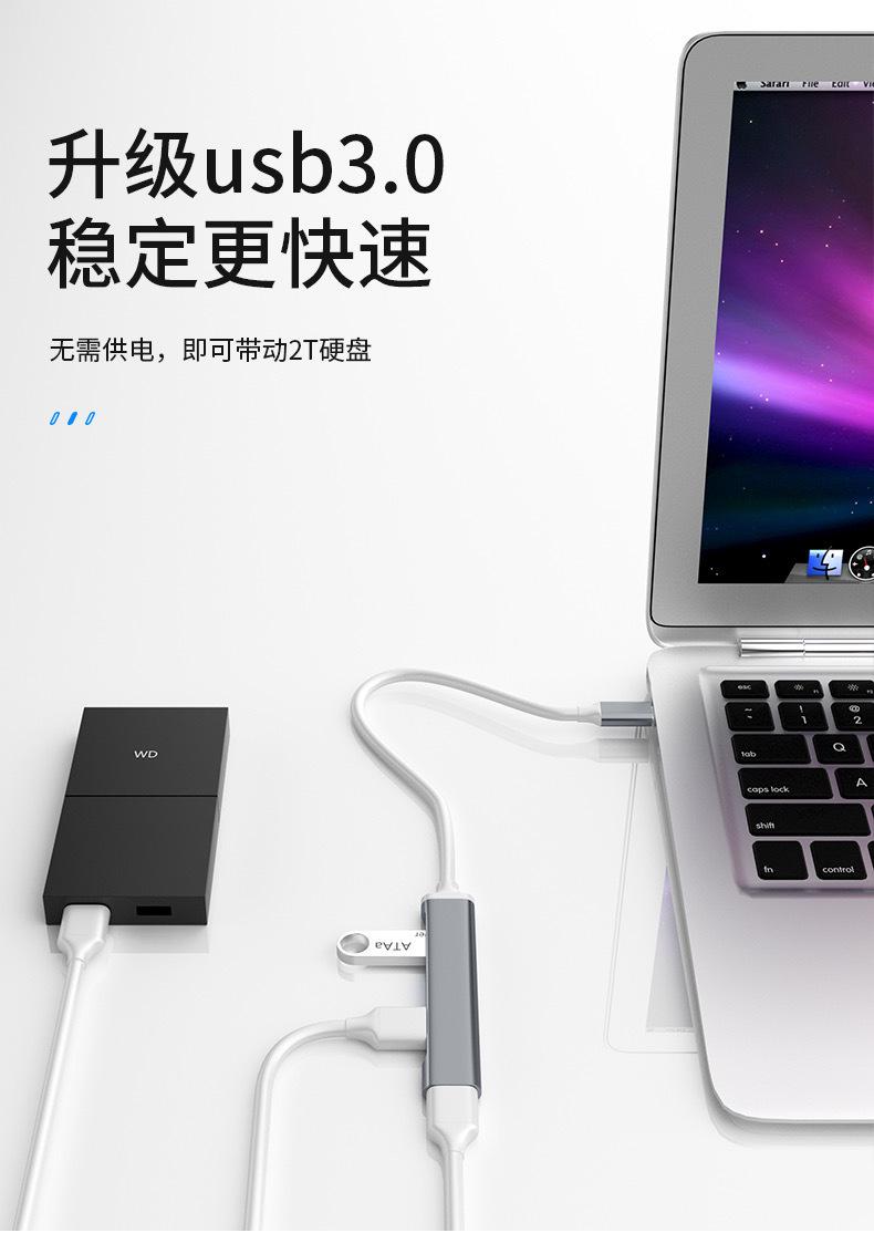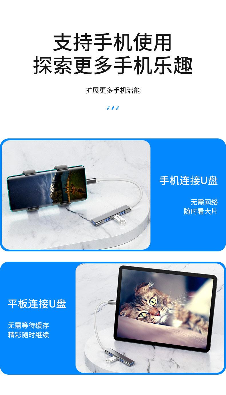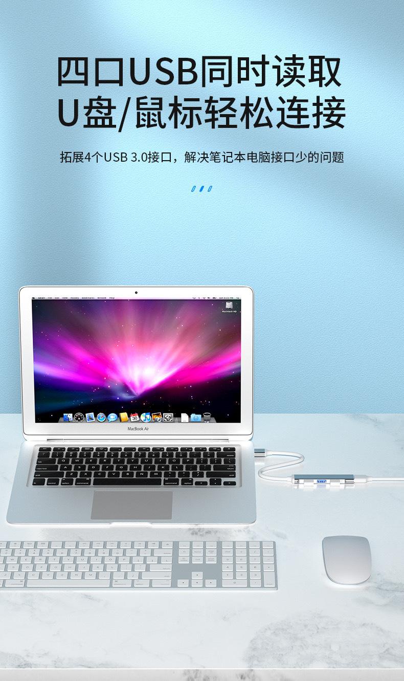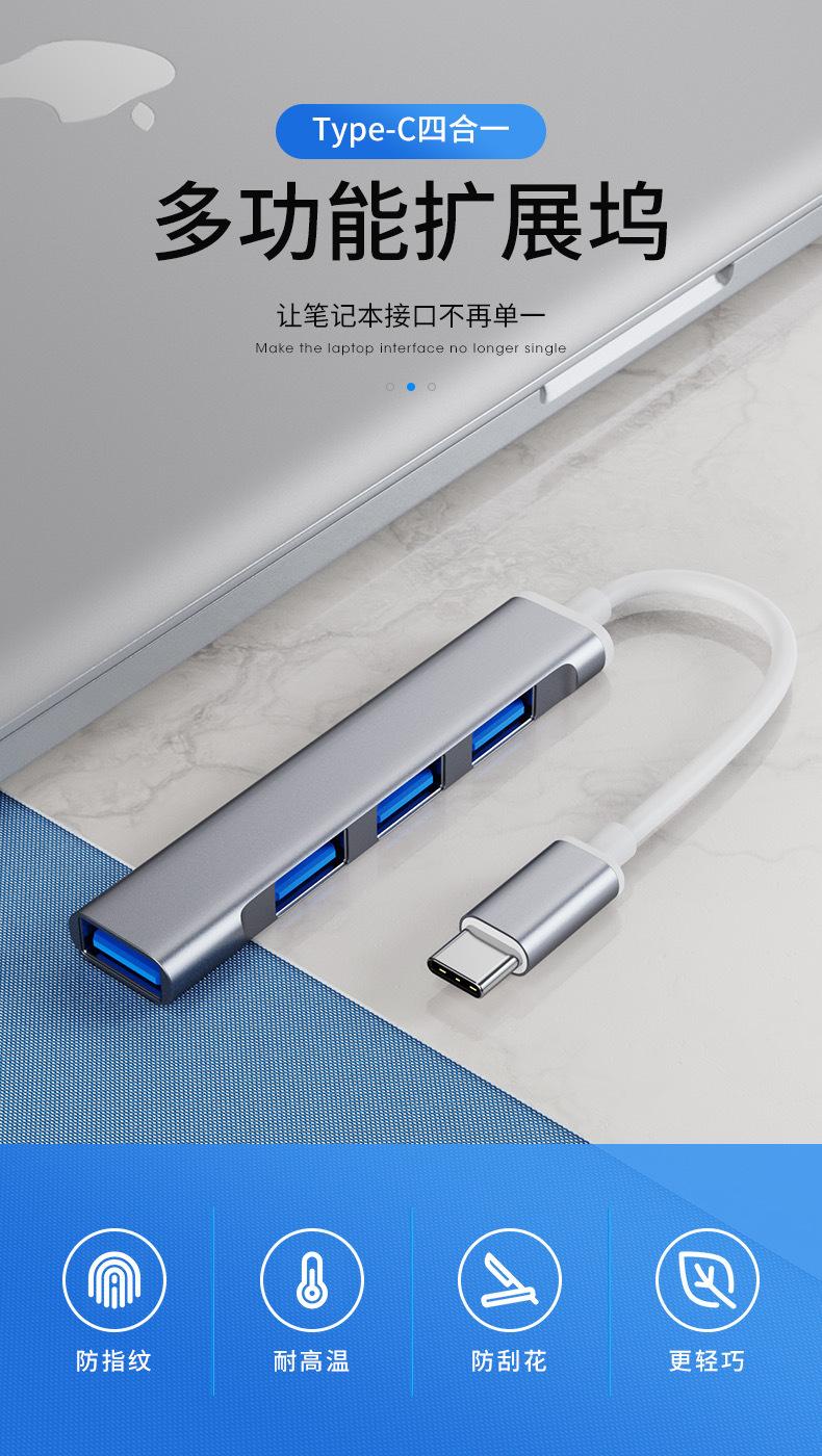 Extensor USB 3.0, divisor tipo C, multipuerto para portátil, transferencia de uno a cuatro puertos USB, concentrador de expansión