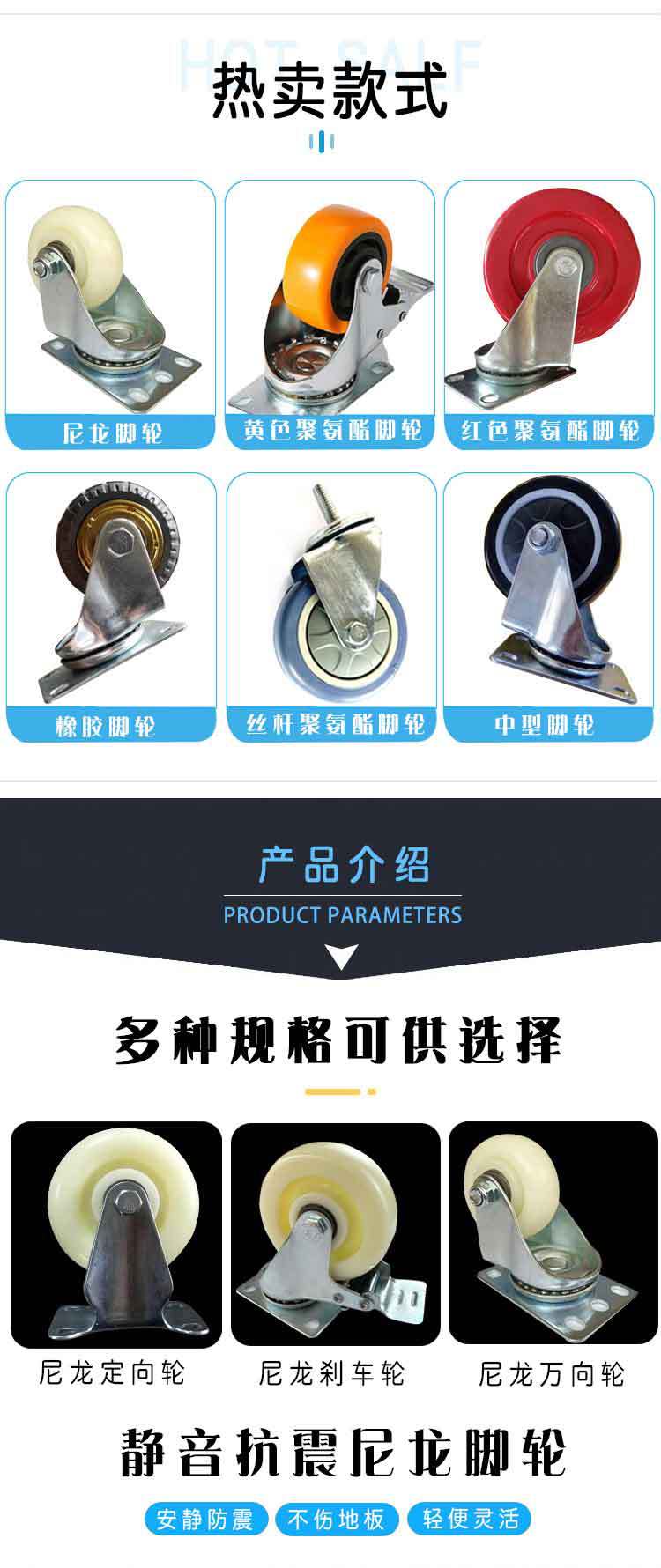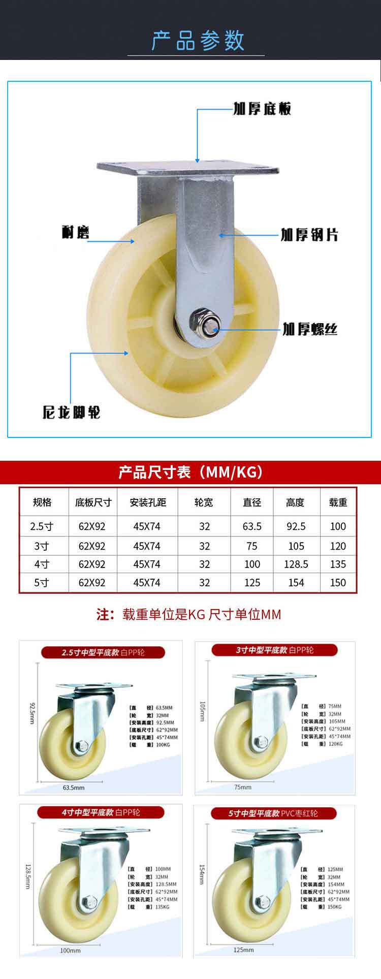 Ruedas giratorias direccionales industriales pesadas de nailon blanco de 4 pulgadas, ruedas de poliuretano de varios tamaños.