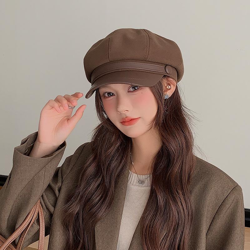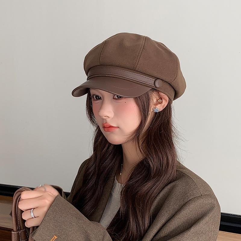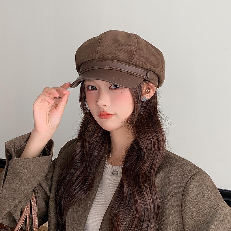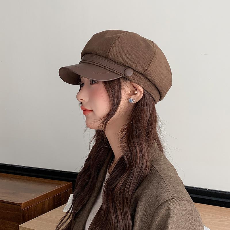 Boina Japonesa Versátil para Mujer Otoño e Invierno Lana Lengua de Pato Gorra Octogonal Rostro Pequeño Artística Calle Casual Sombrero de Pintor
