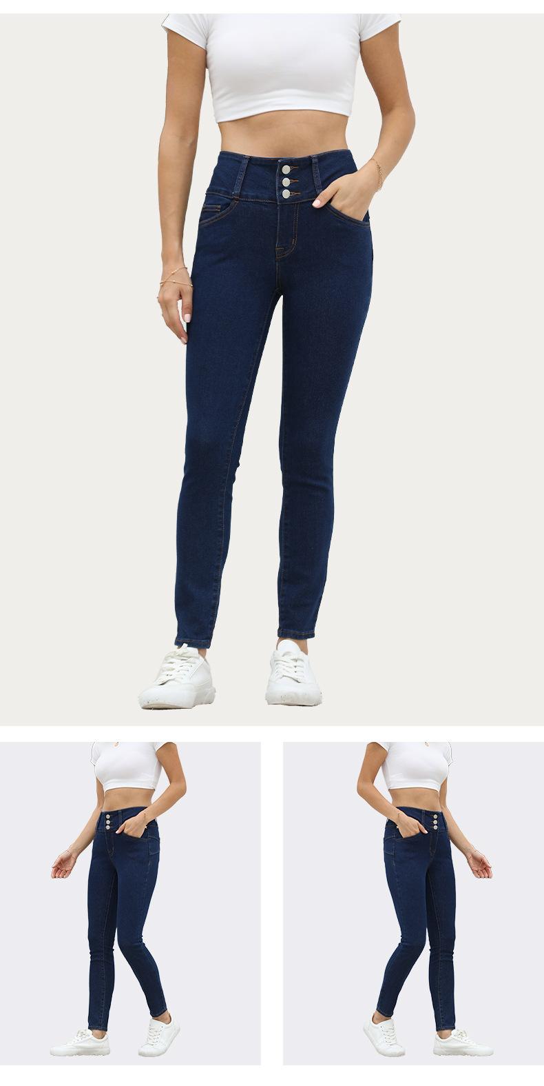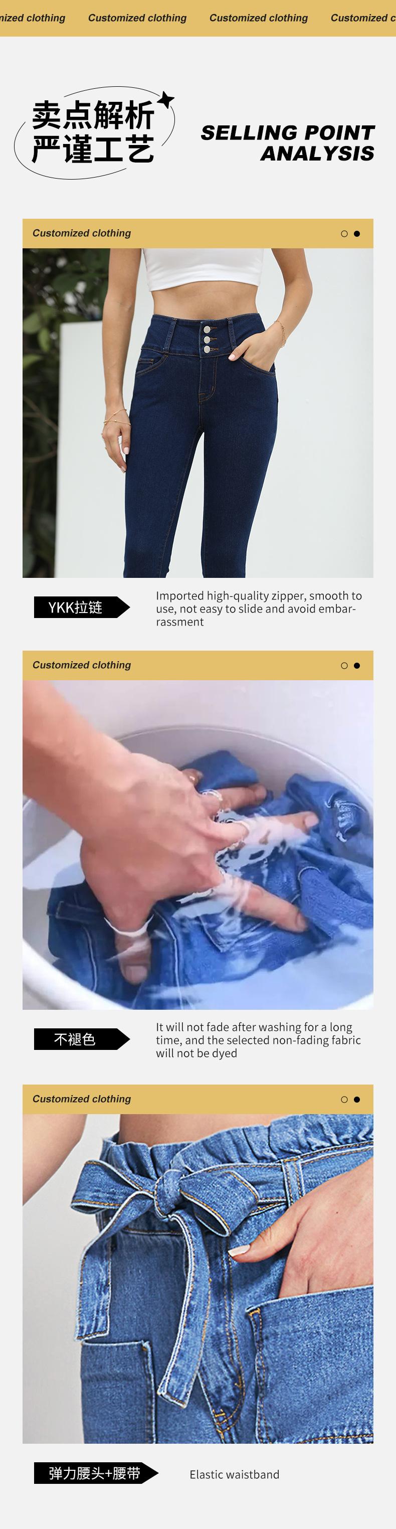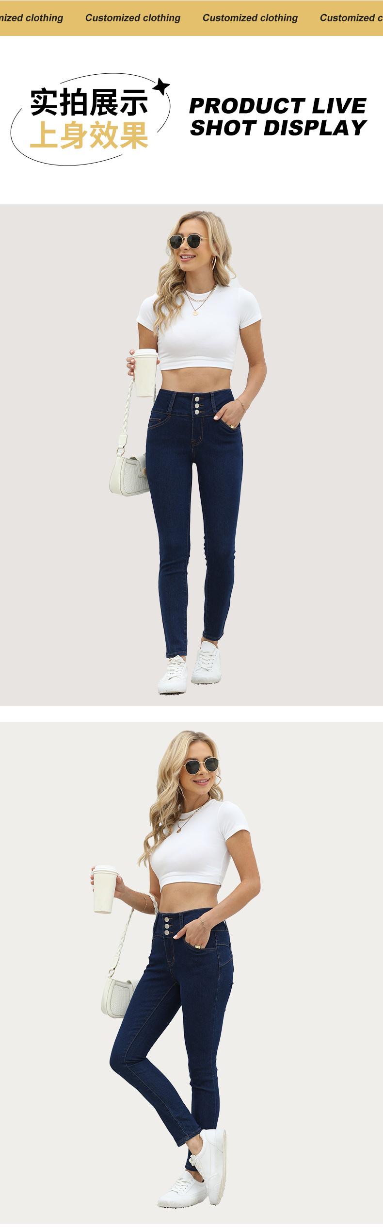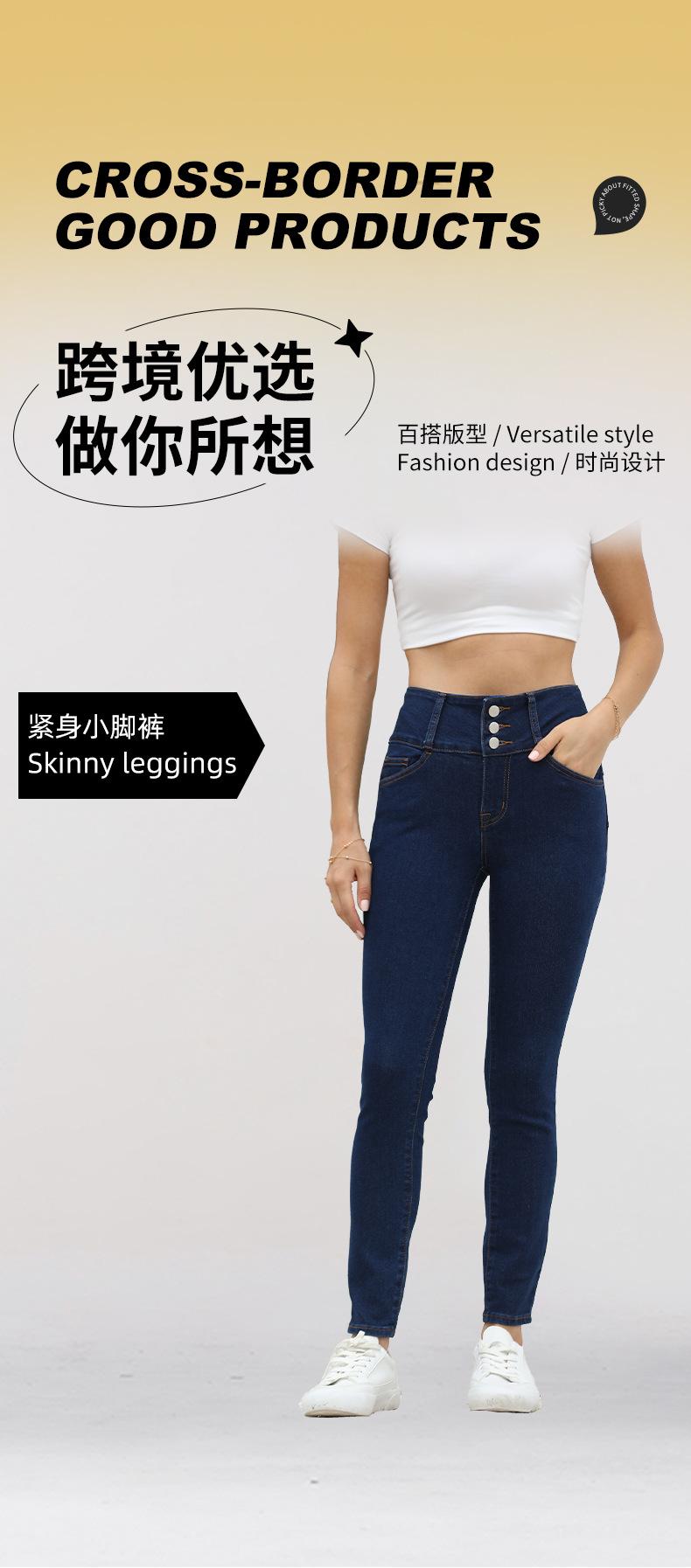 Vaqueros ajustados de cintura media para mujer, personalizados y transfronterizos, para el trabajo y la oficina, elegantes y versátiles.