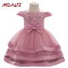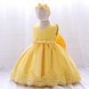 Vestido nuevo para bebé transfronterizo, lazo grande, encaje, boda, vestido de princesa, bebé de un año, vestido para lavar, banda para el cabello