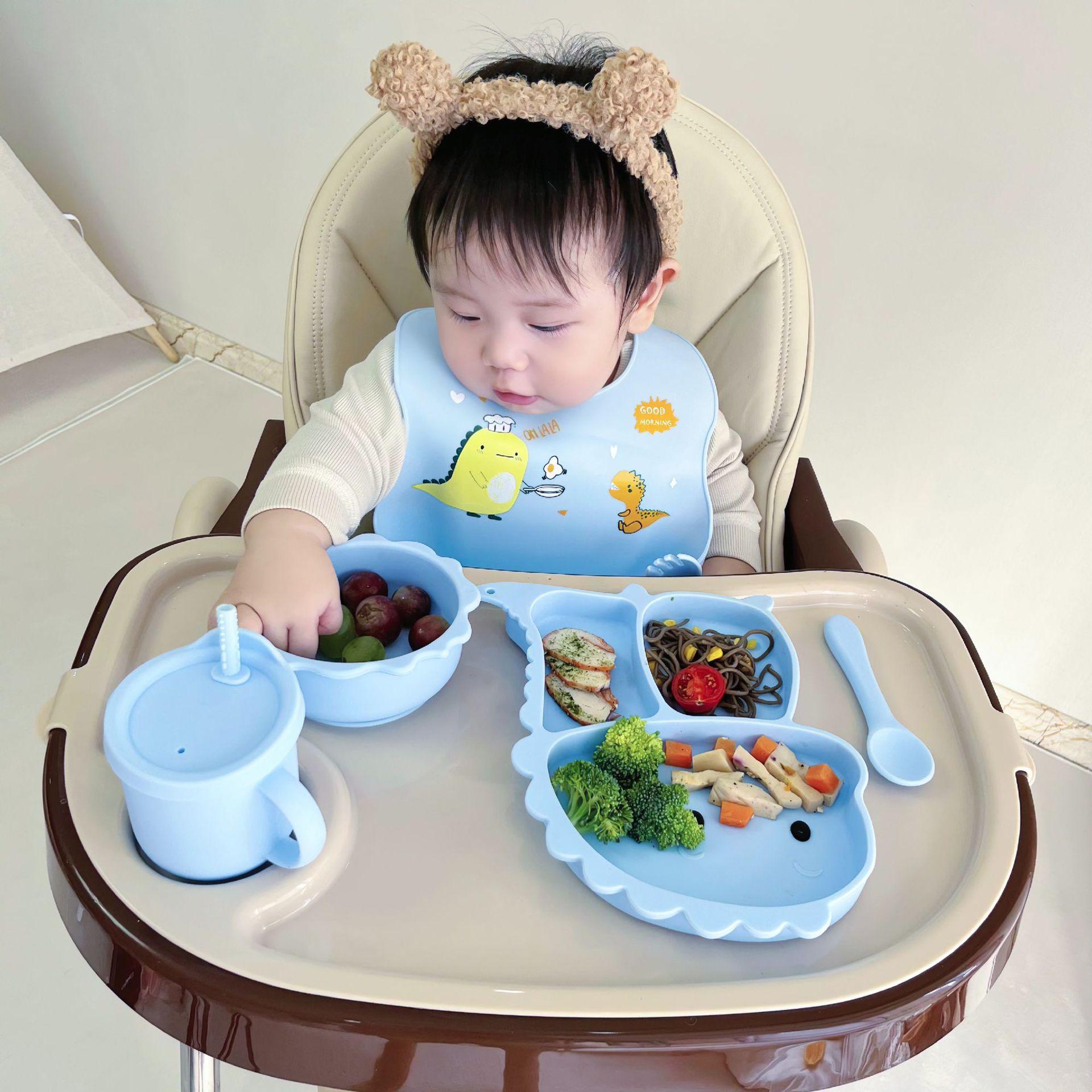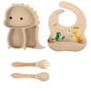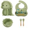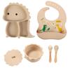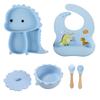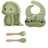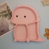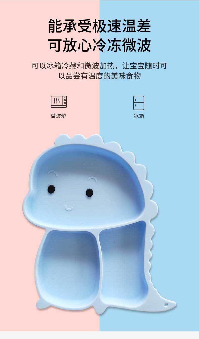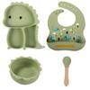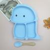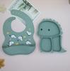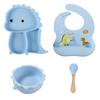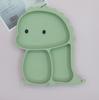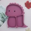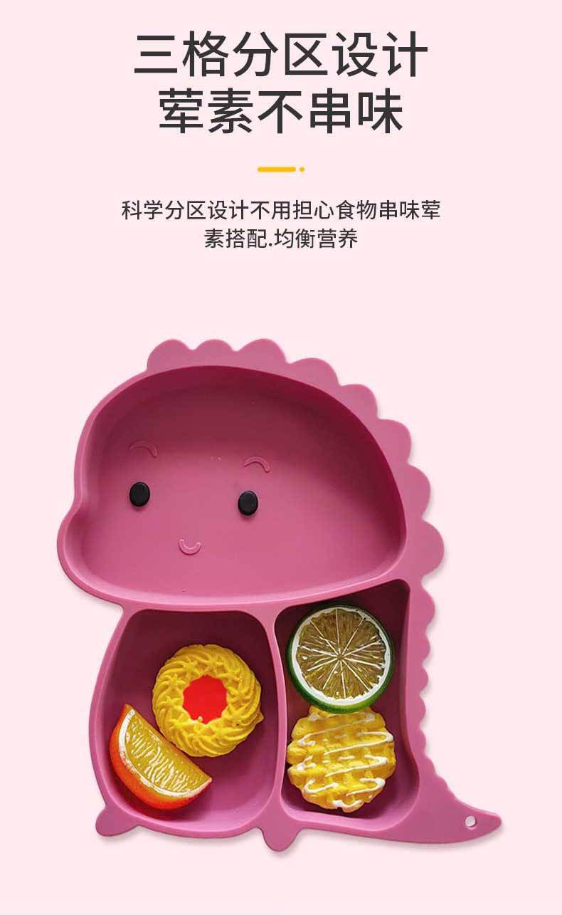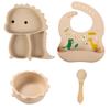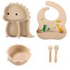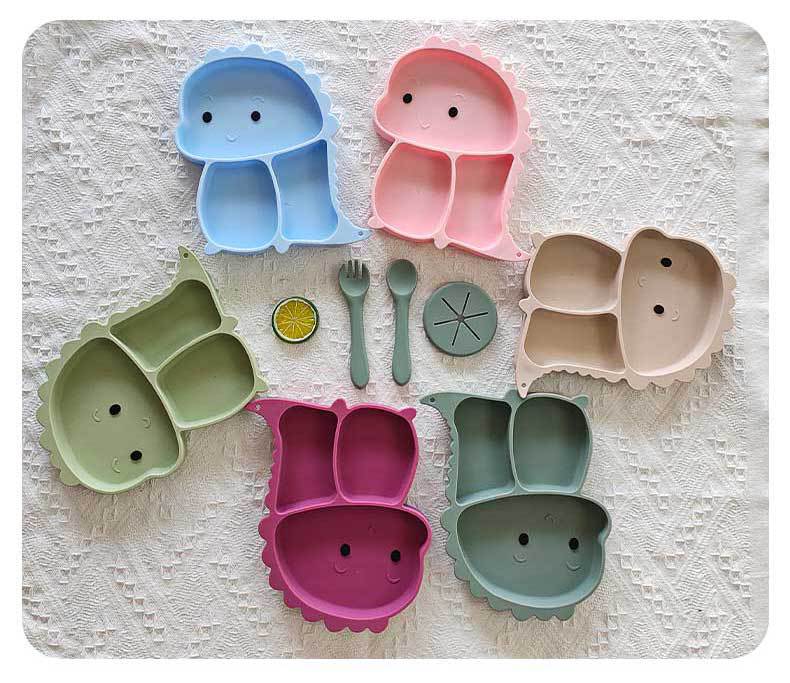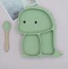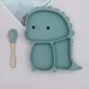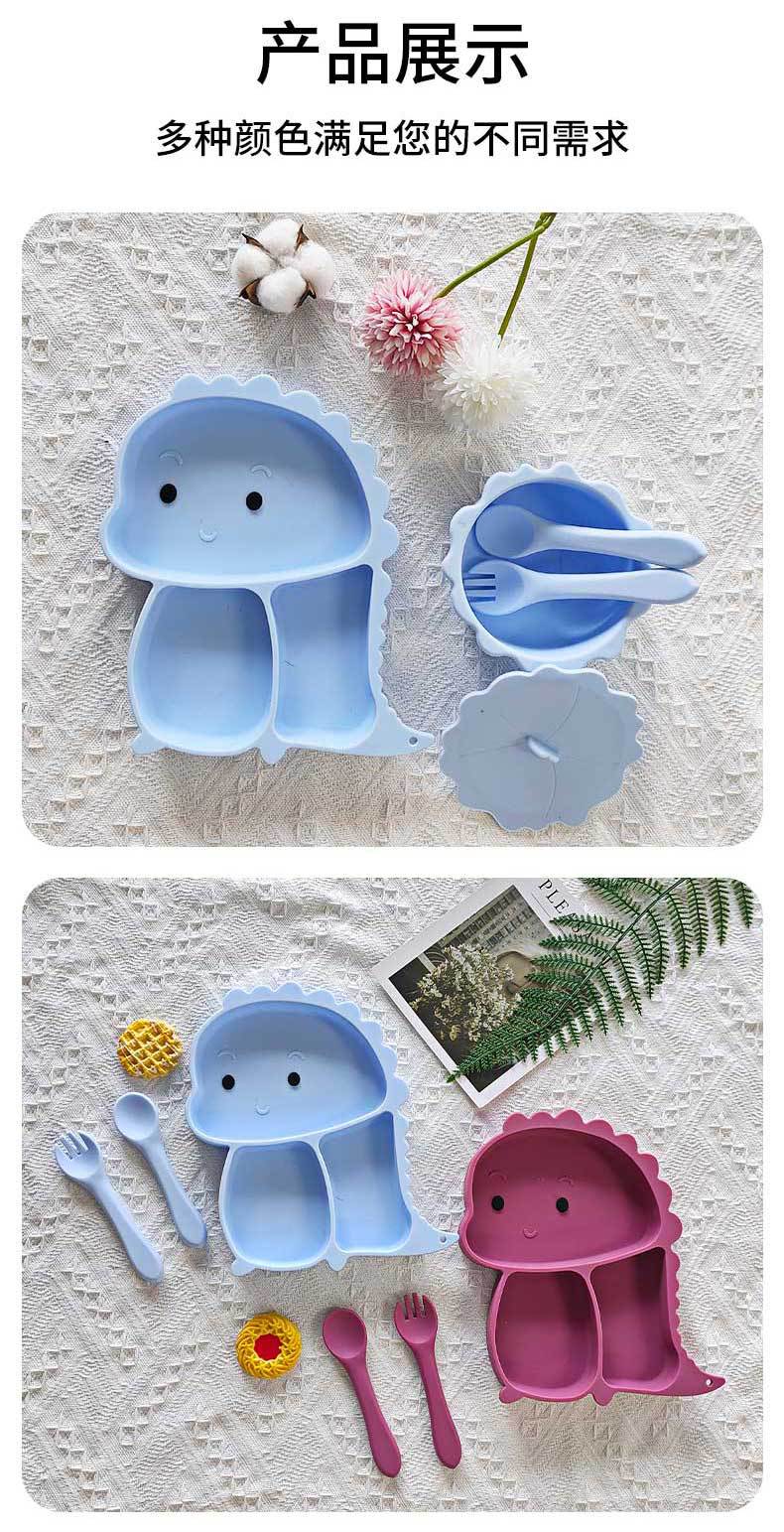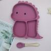 Plato de silicona con ventosa para niños con diseño de dinosaurio transfronterizo, juego de cuencos integrados, vajilla de silicona para bebés, plato con compartimentos de dibujos animados
