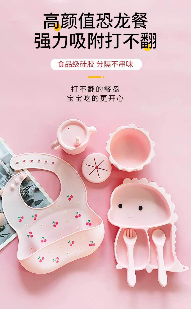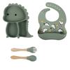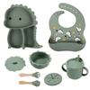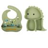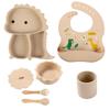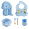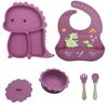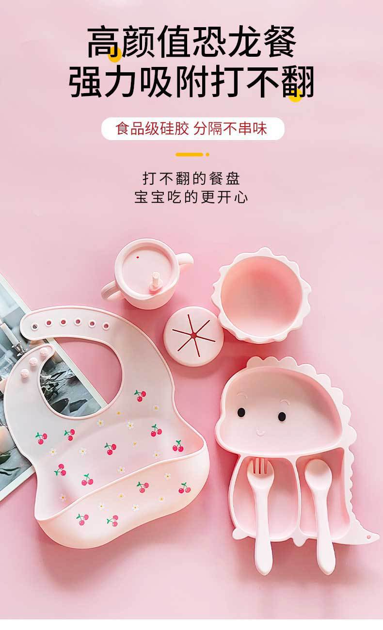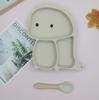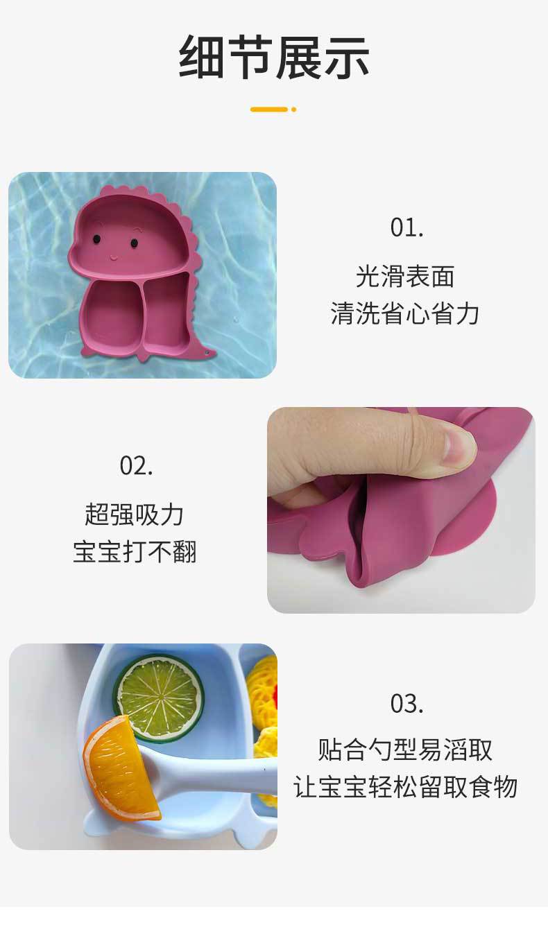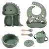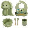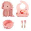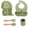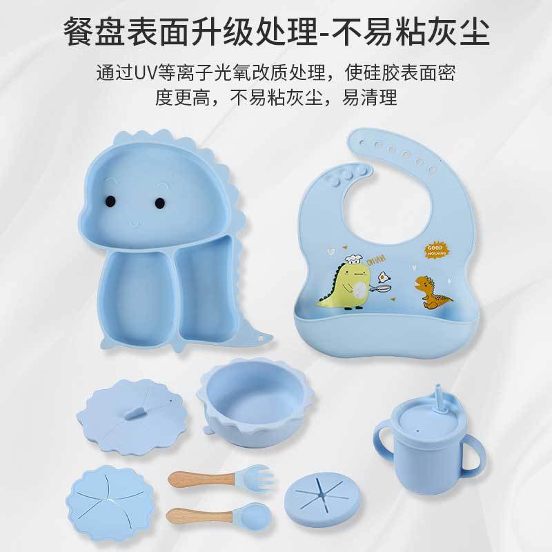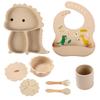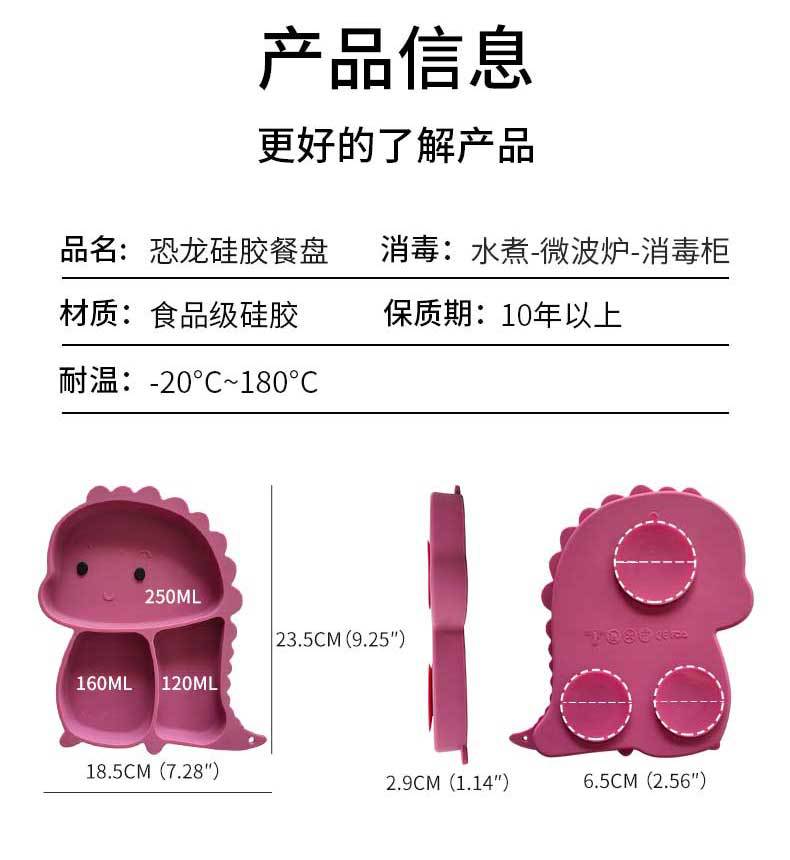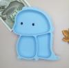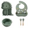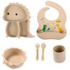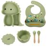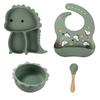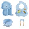 Plato de silicona con ventosa para niños con diseño de dinosaurio transfronterizo, juego de cuencos integrados, vajilla de silicona para bebés, plato con compartimentos de dibujos animados