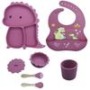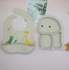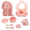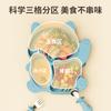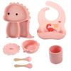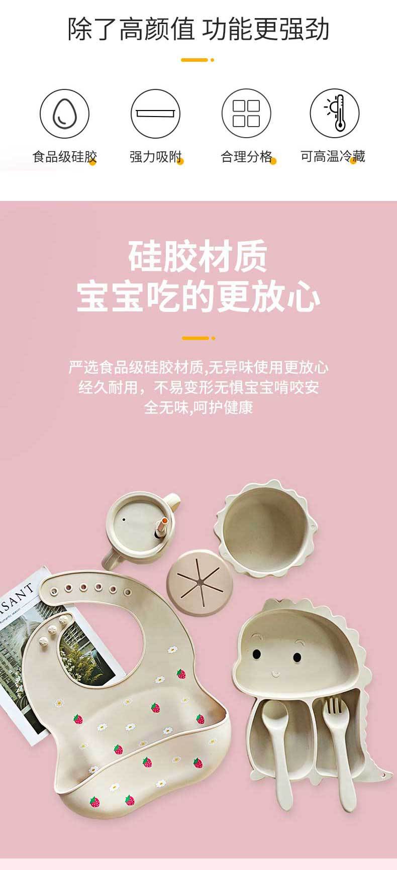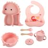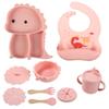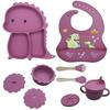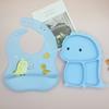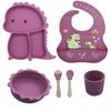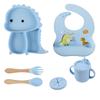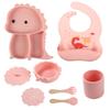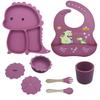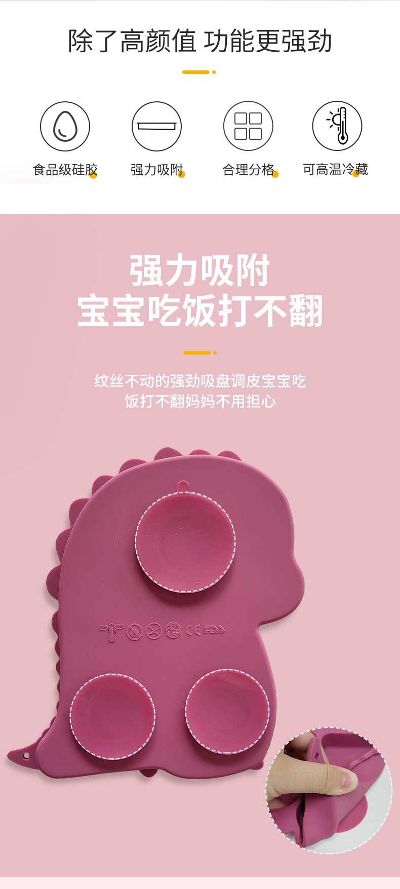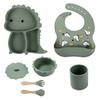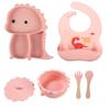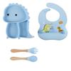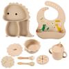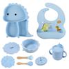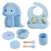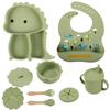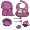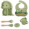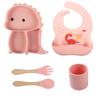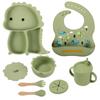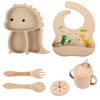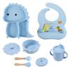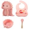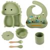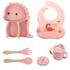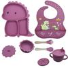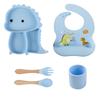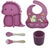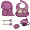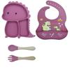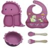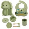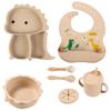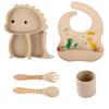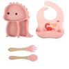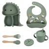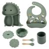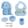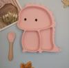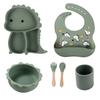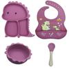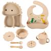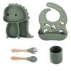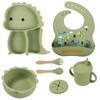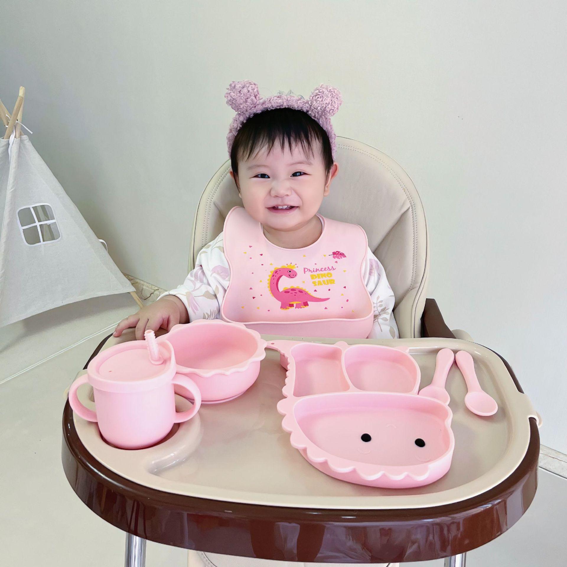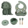 Plato de silicona con ventosa para niños con diseño de dinosaurio transfronterizo, juego de cuencos integrados, vajilla de silicona para bebés, plato con compartimentos de dibujos animados