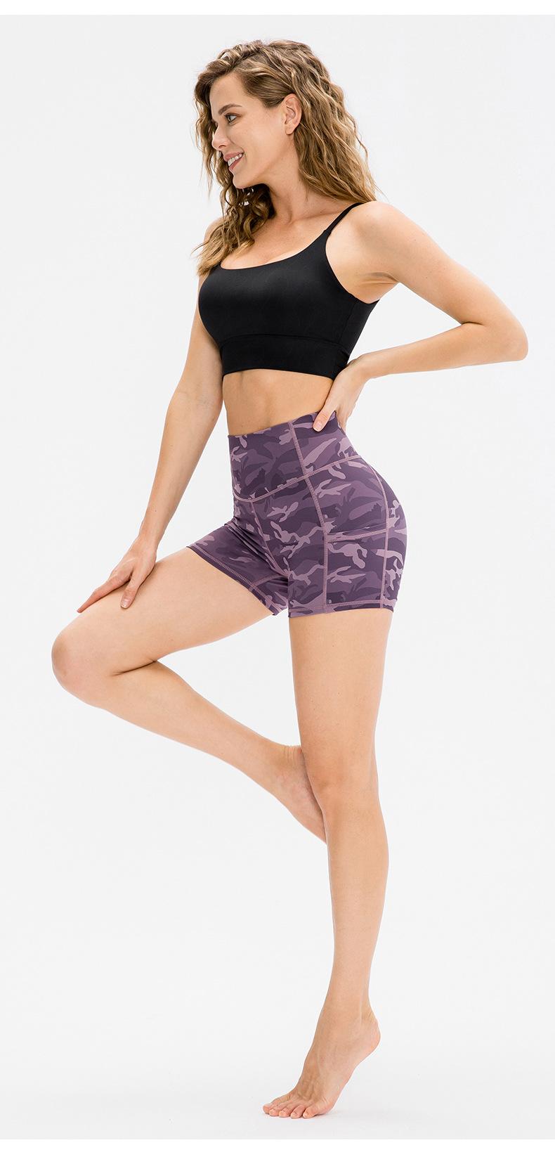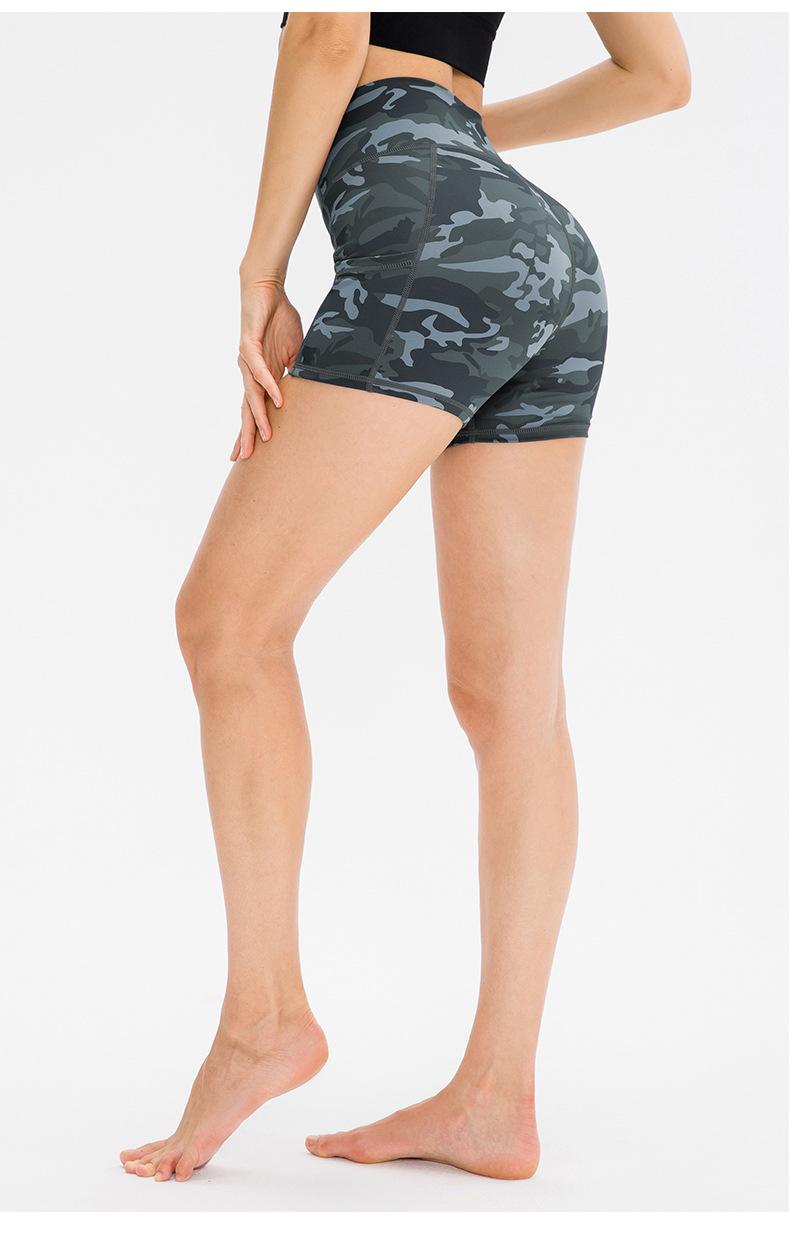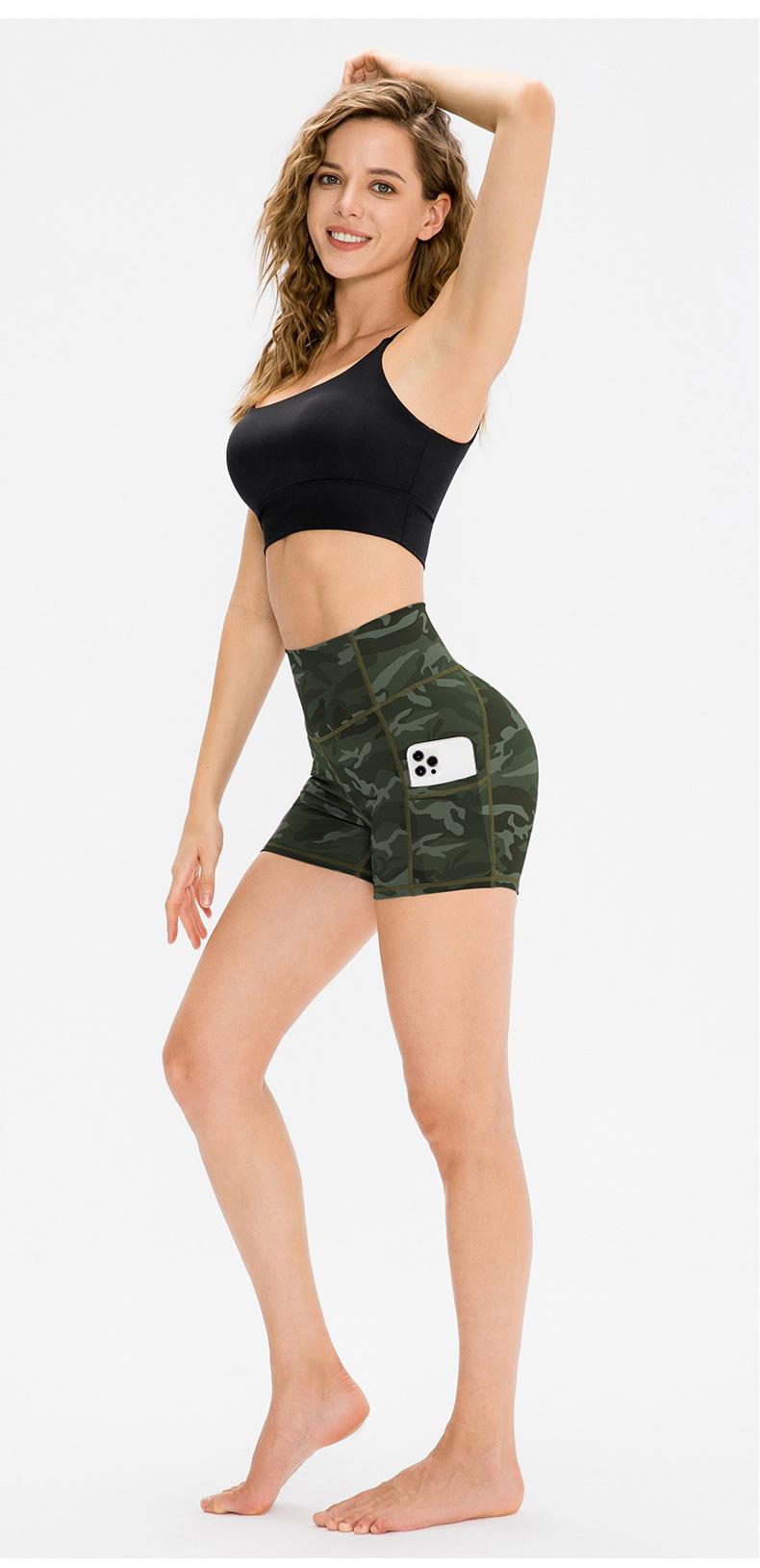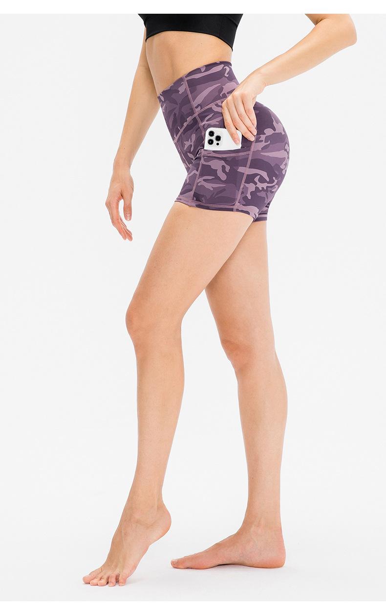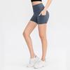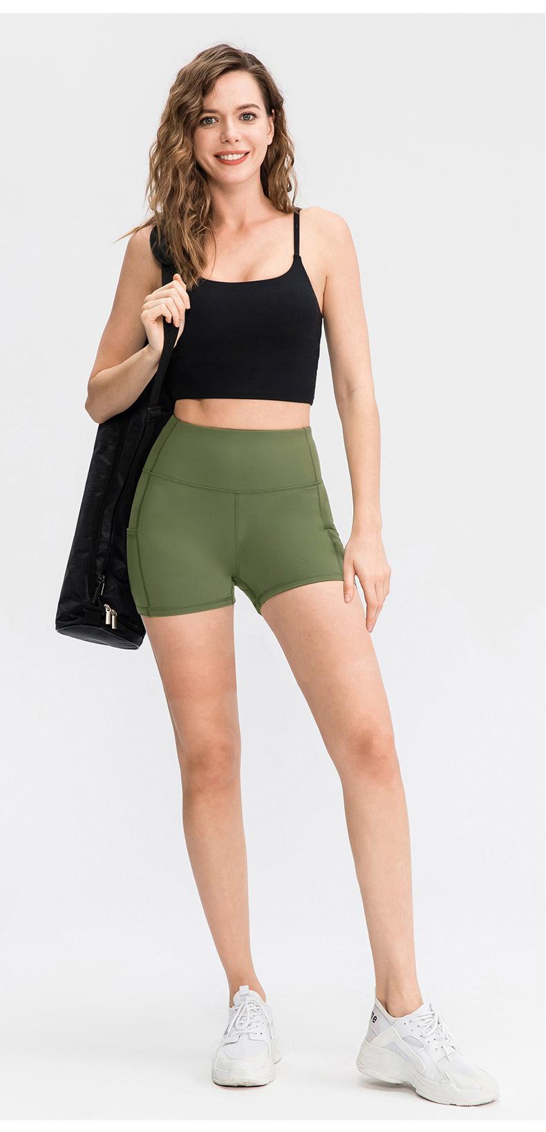 Shorts de Yoga Ajustados para Mujer Doble Cara Nude Pantalones de Fitness para Correr Bolsillo con Solapa Pantalones de Cintura Alta Levanta Cadera Deportivos Pantalones de Tres Puntos 12427
